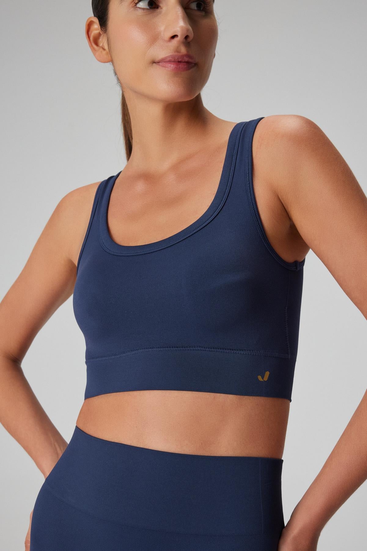 Kalın çift renk biyeli omuz askılı yüksek destekleyici spor sütyenidir. Ekstra koruma için çift katlıdır ve içerisinde kap bulunmaktadır.
