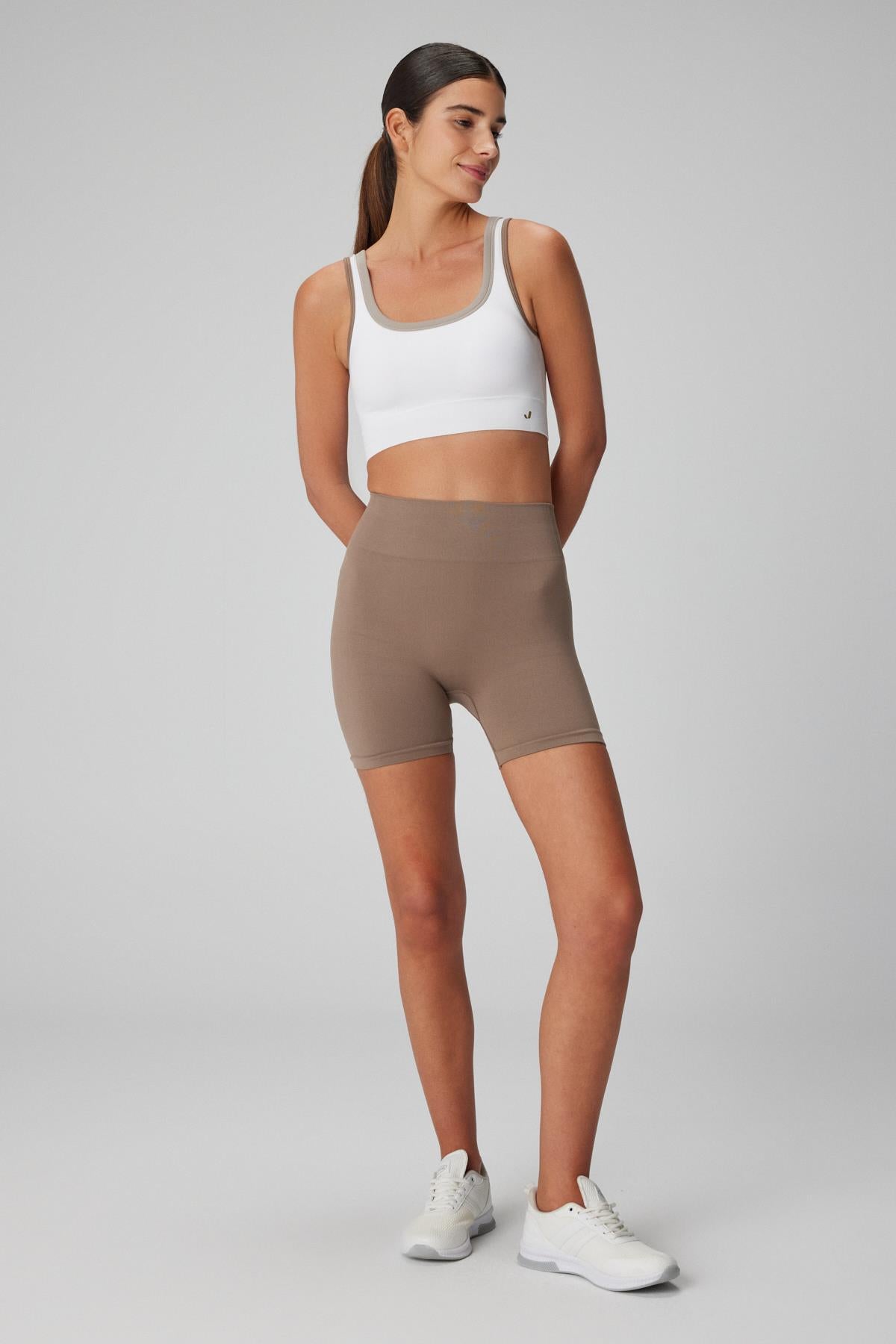 Hareket halindeyken vücutları desteklemek ve şekillendirmek için tasarlanmış üstün dikişsiz biker şort.