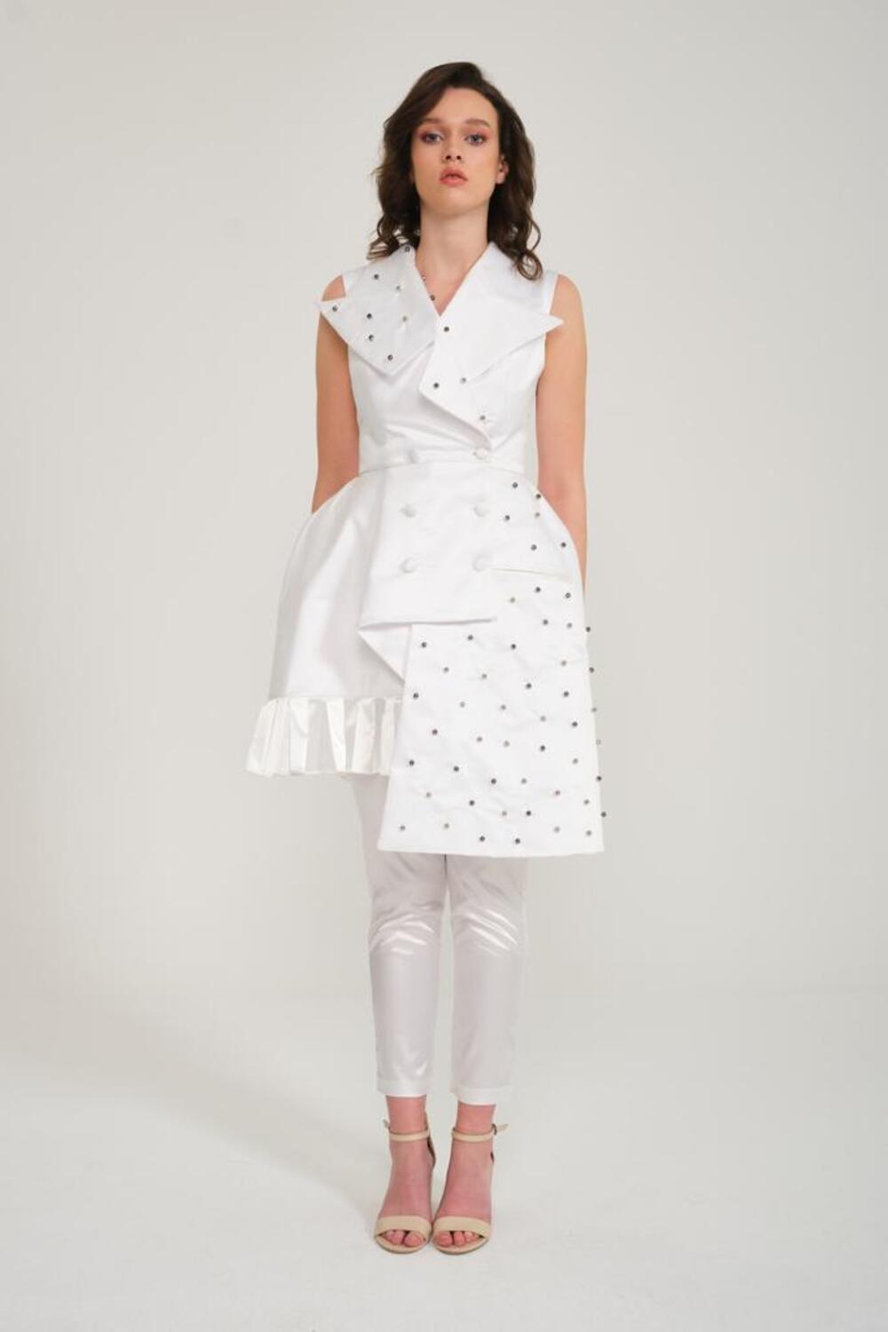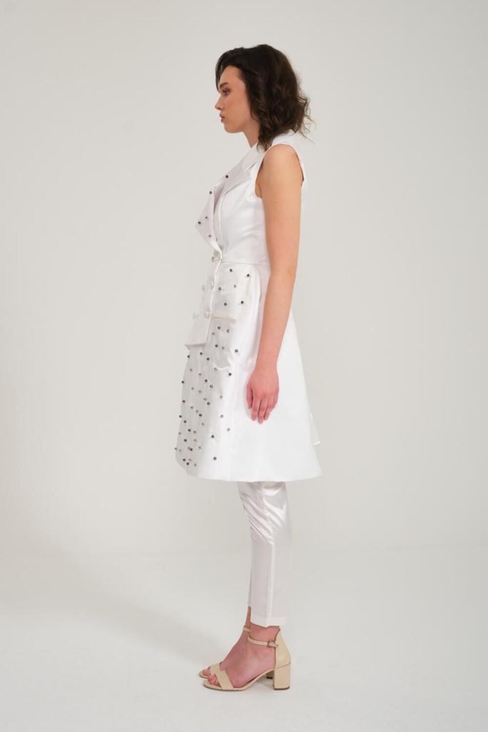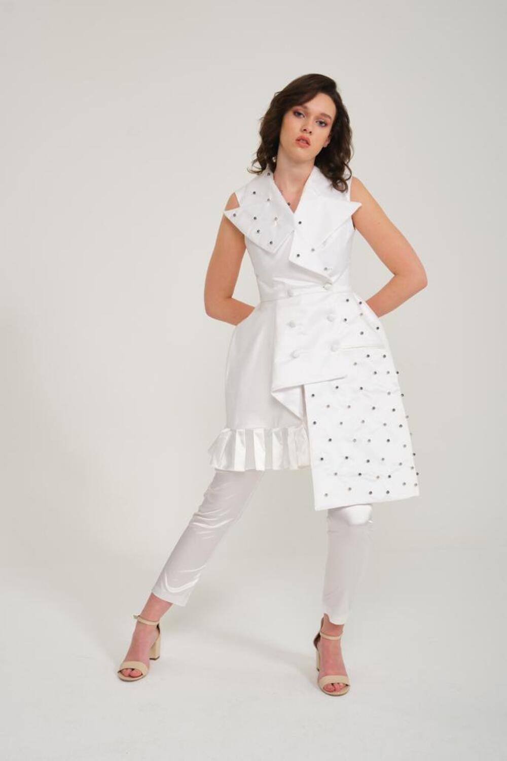 Bronz Taş El İşlemeli Avant-Garde Beyaz Takım Elbise