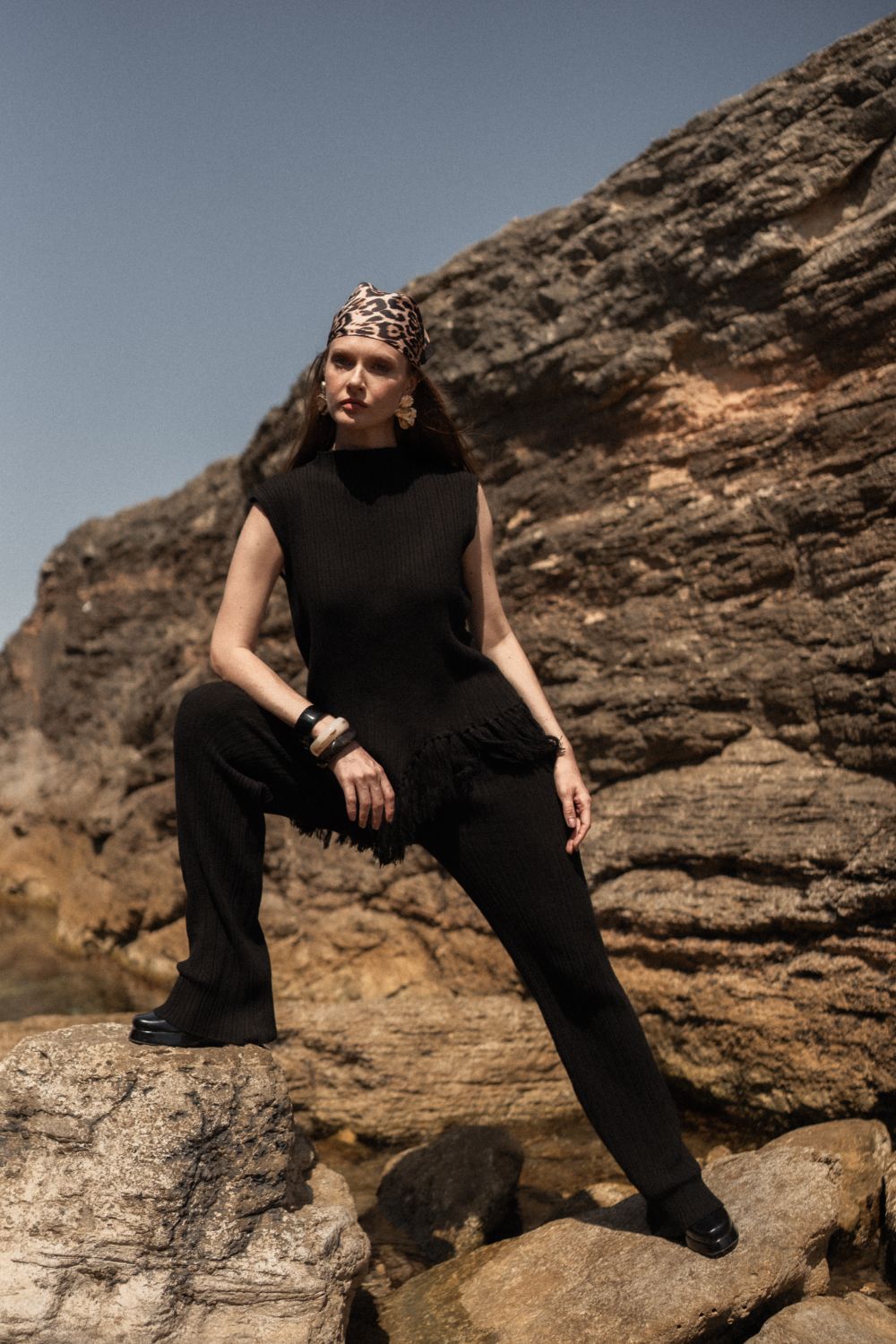 Püskül Detaylı Üst - Pantolon Siyah Triko Set