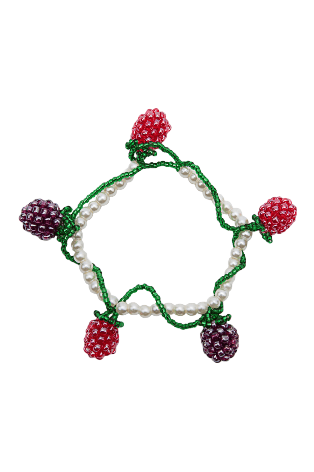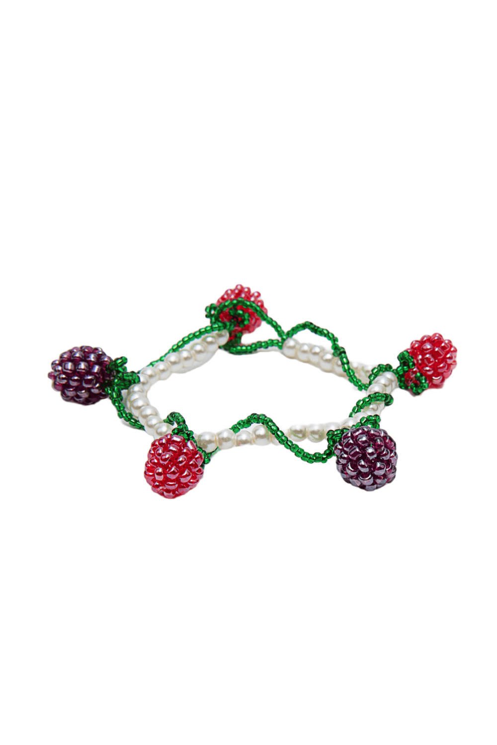 Pulsera de cuentas de cristal de frutas del bosque de frambuesa y mora hecha a mano especialmente diseñada.