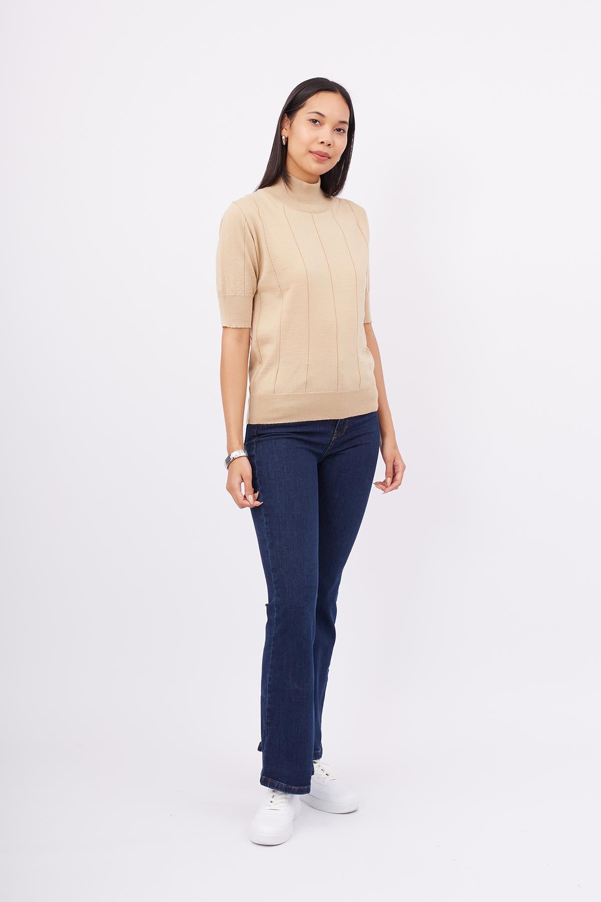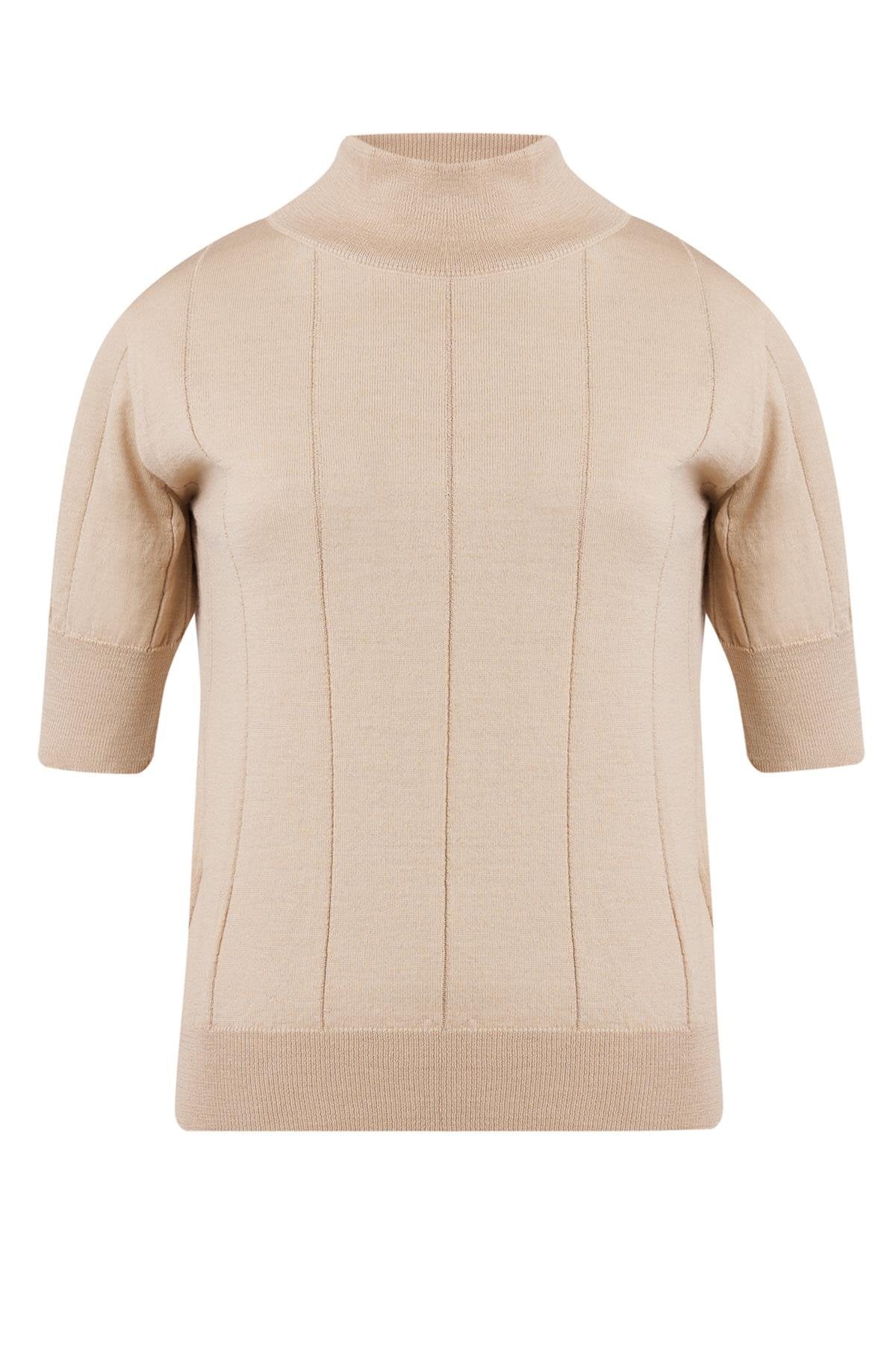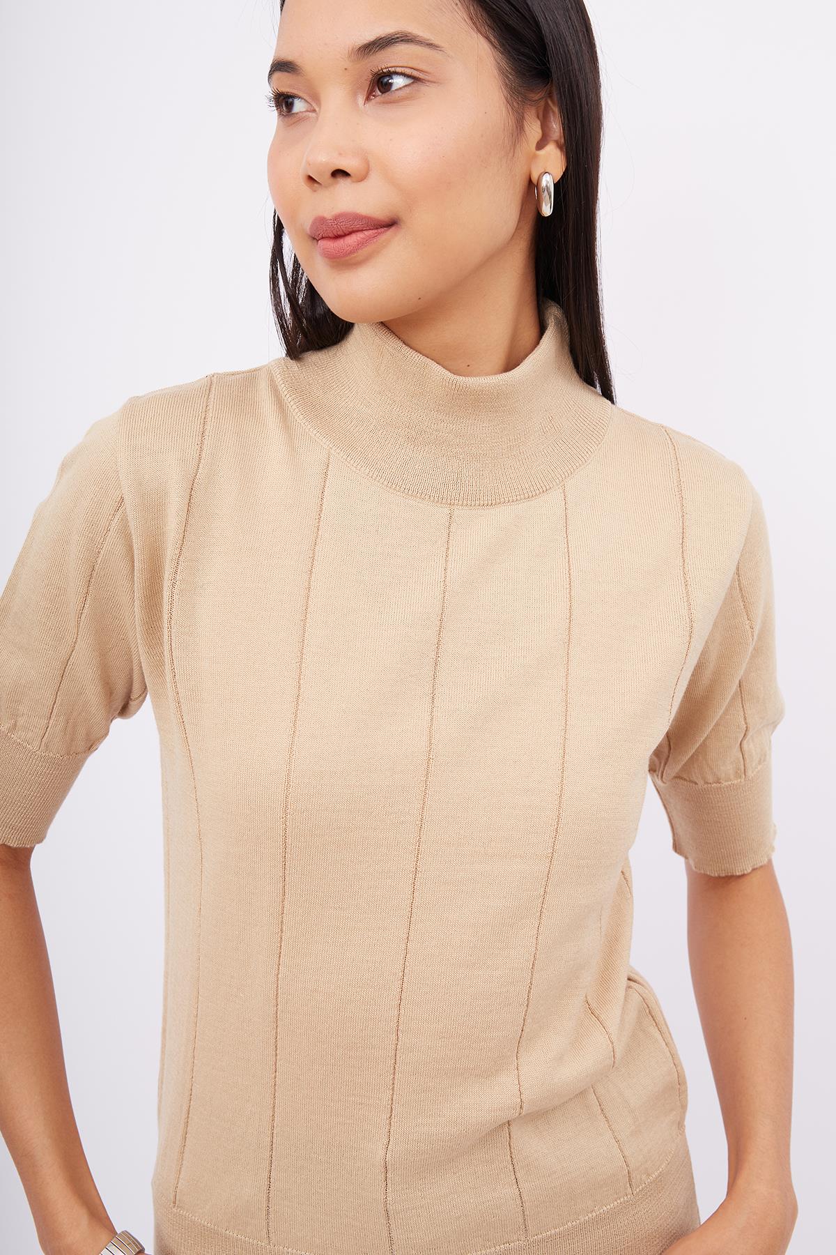 Betty Blouse Balıkçı Yaka Kısa Kollu İNce Basic Kadın Triko Bluz Bej