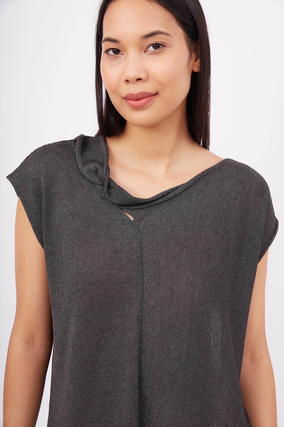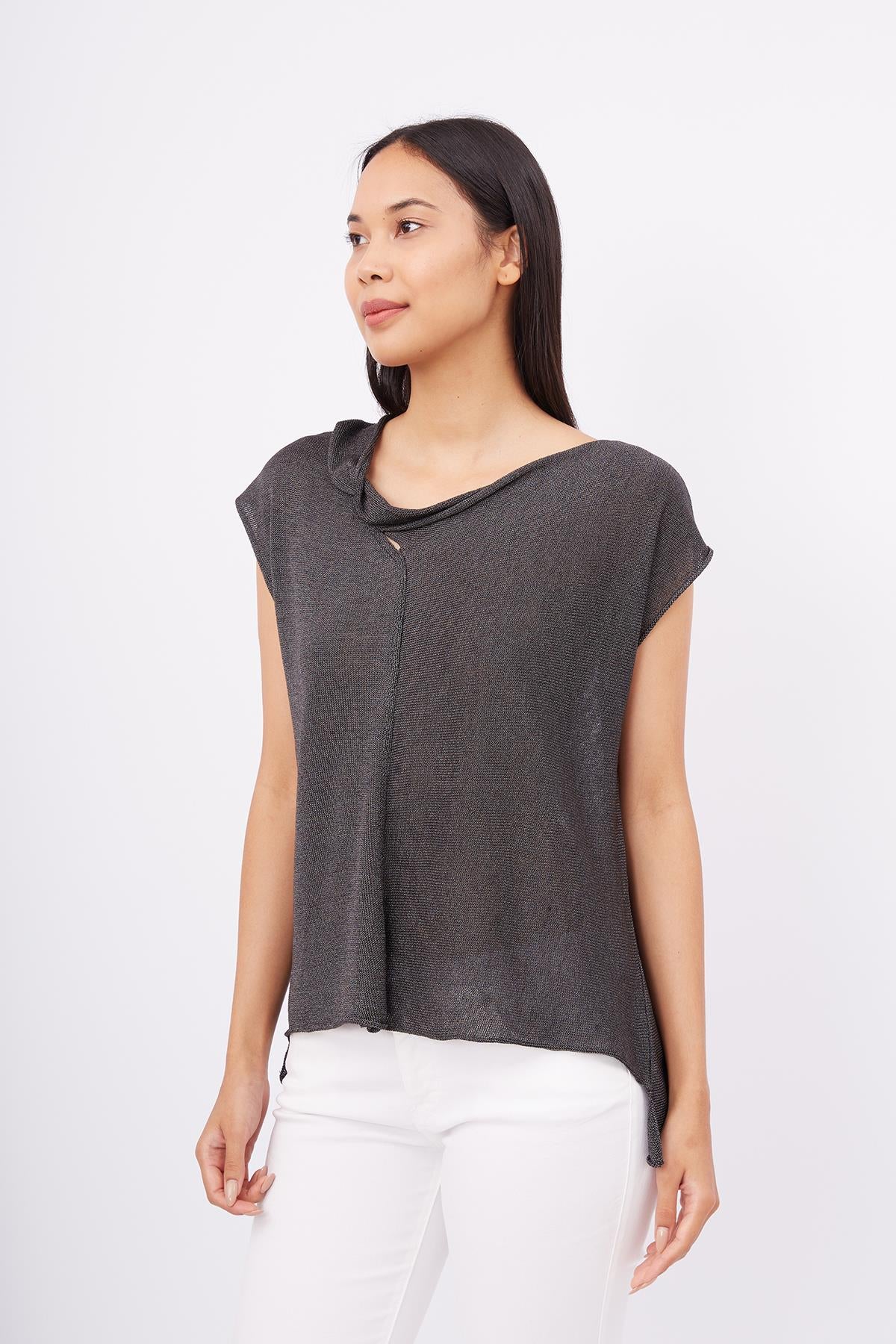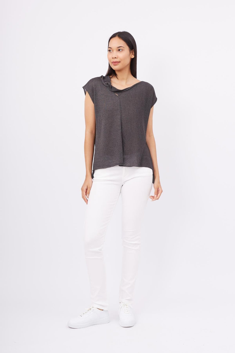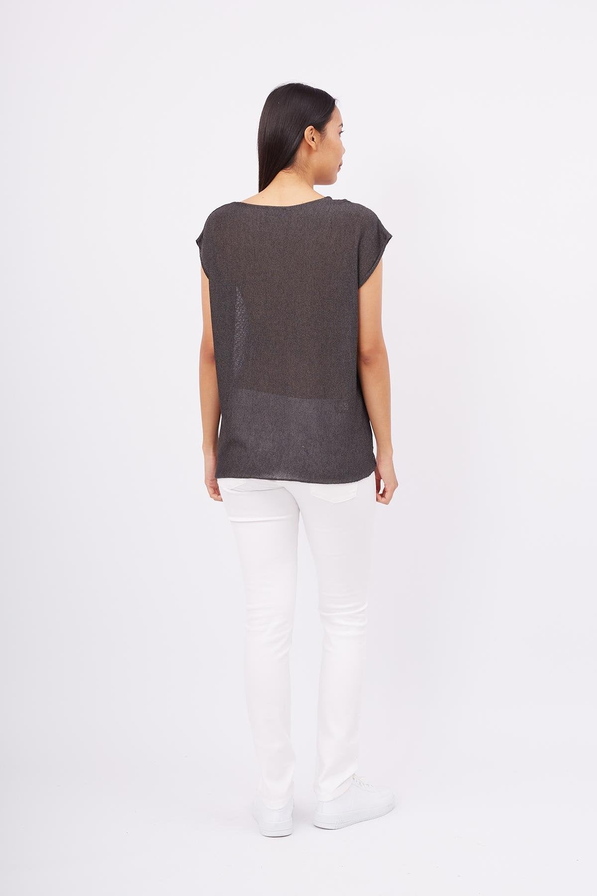 Magenta Blouse Düşük Kol Bluz Antrasit Melanj