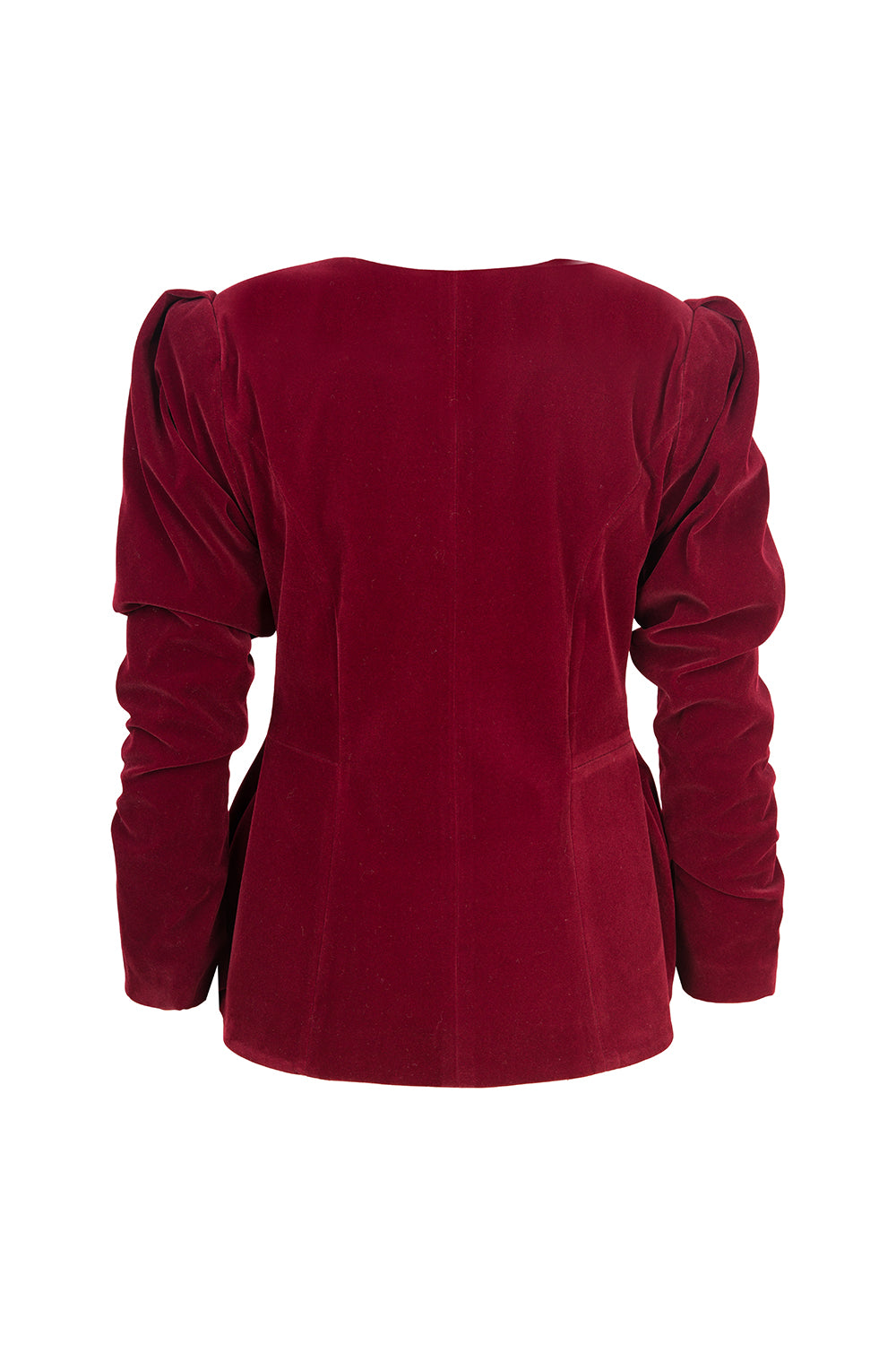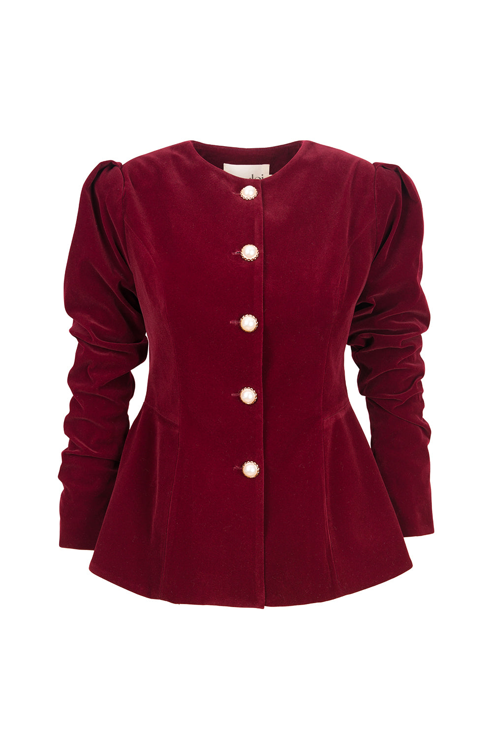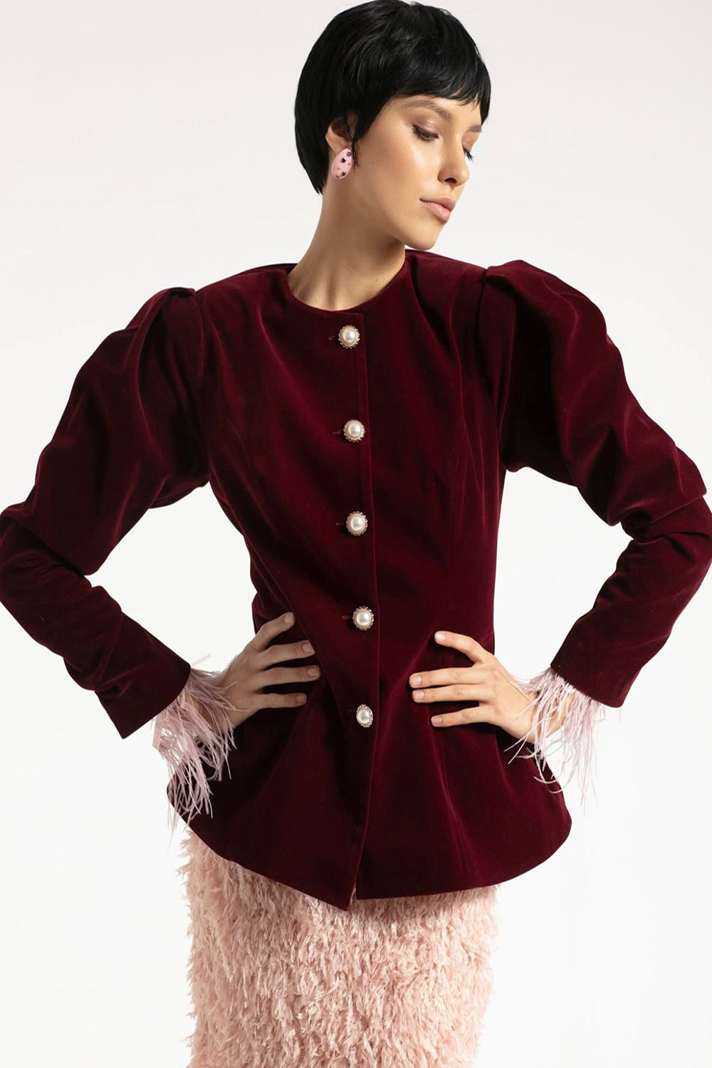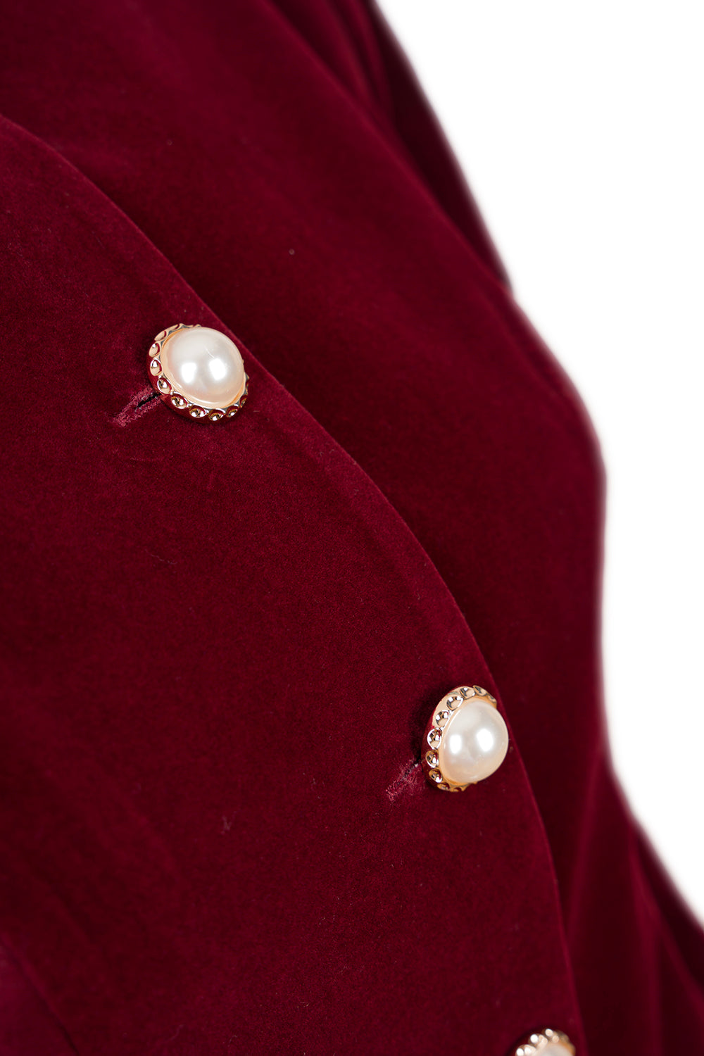 İnci Düğme Detaylı Bordo Kadife Ceket