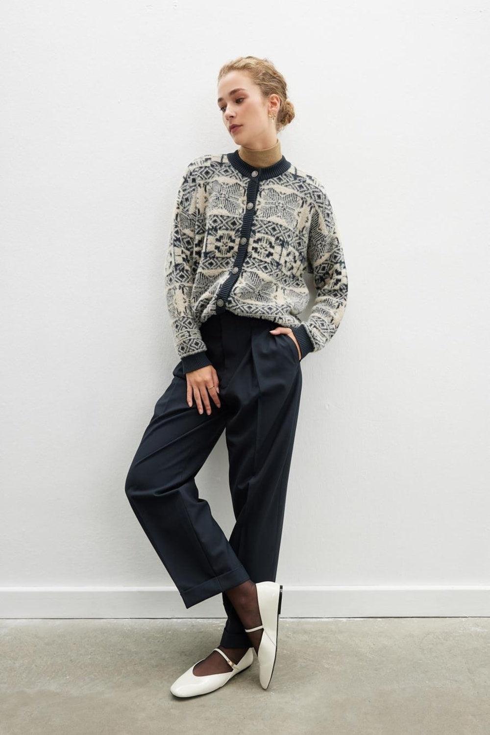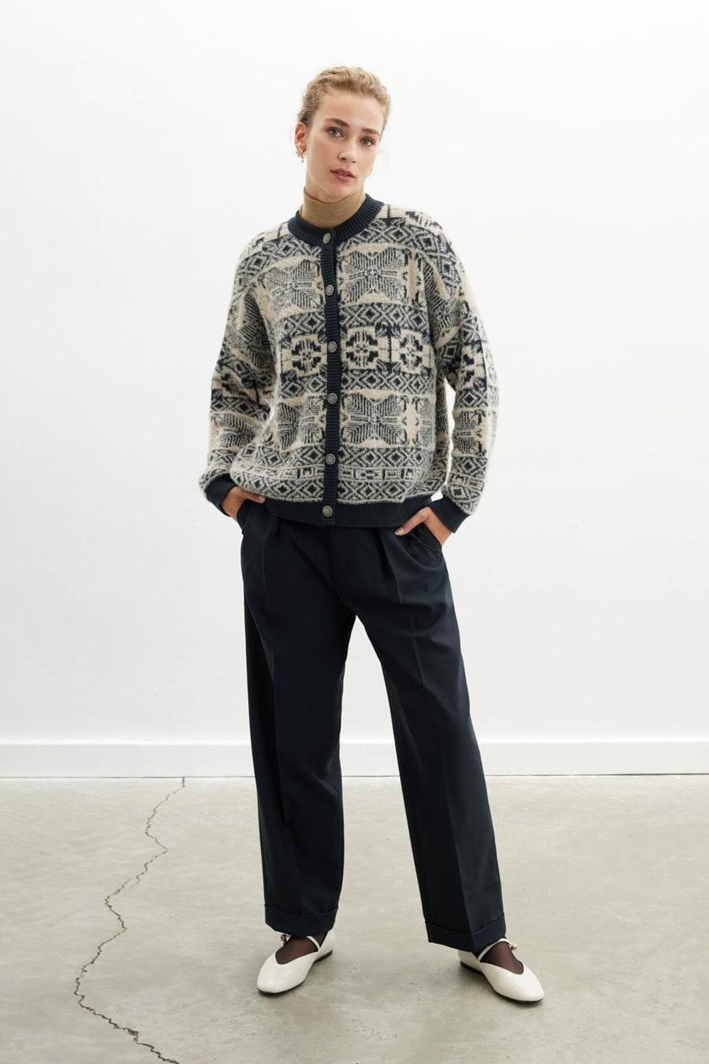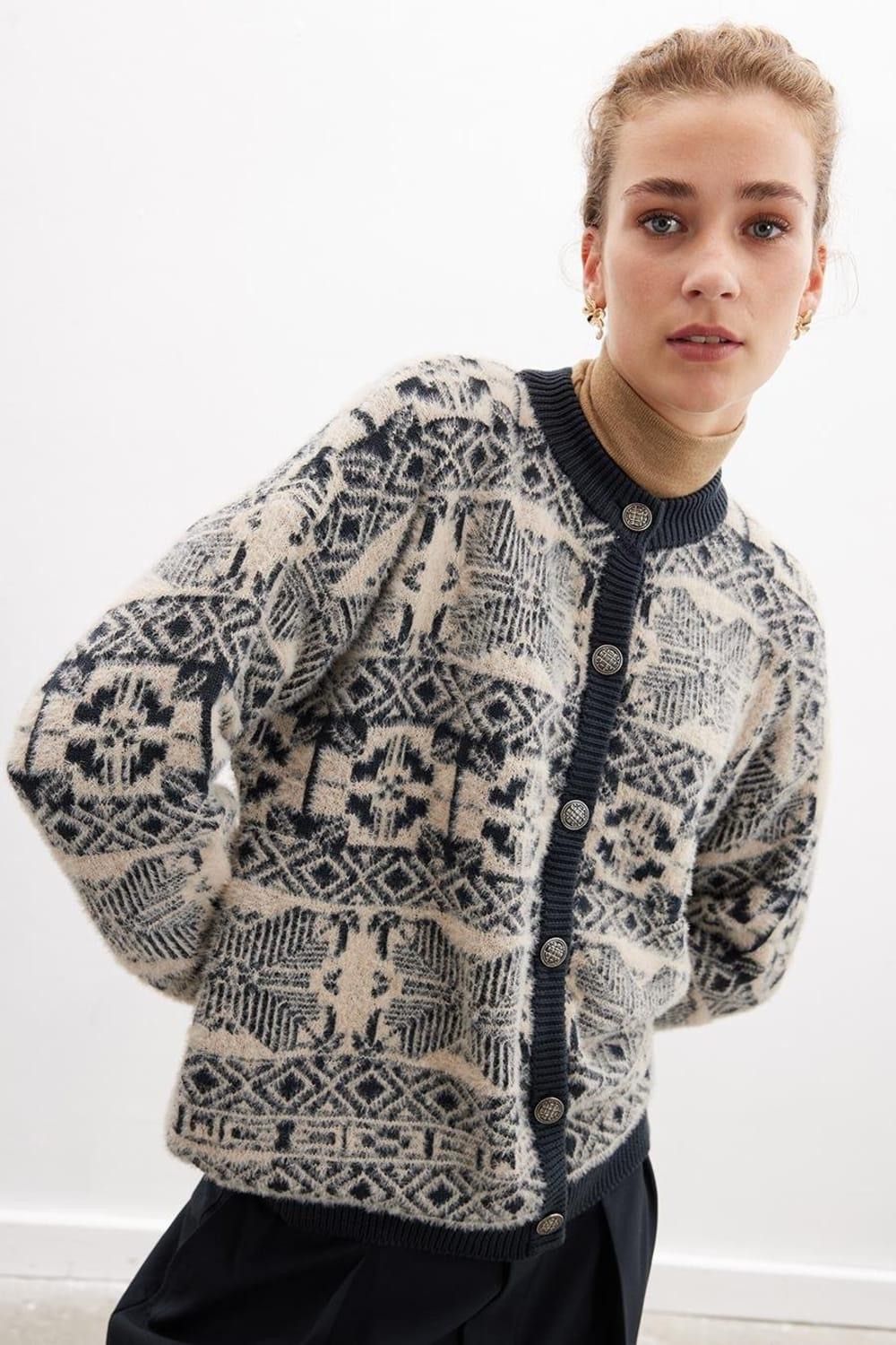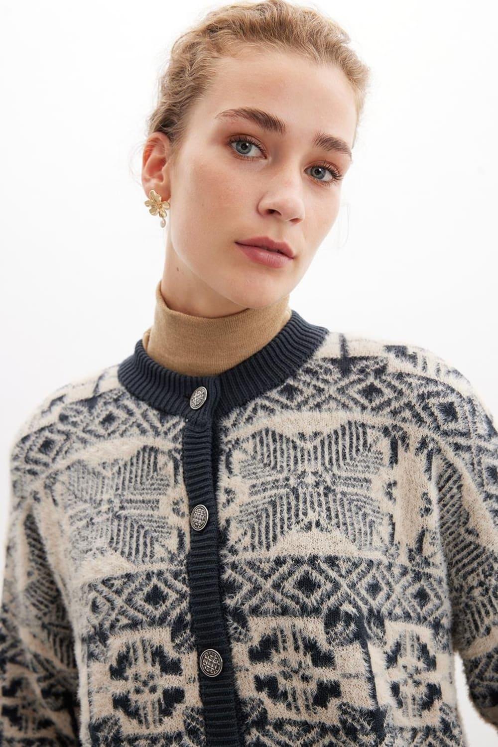 Chaqueta Flora Chaqueta de punto de mujer en mezcla de algodón jacquard con cuello redondo champagne