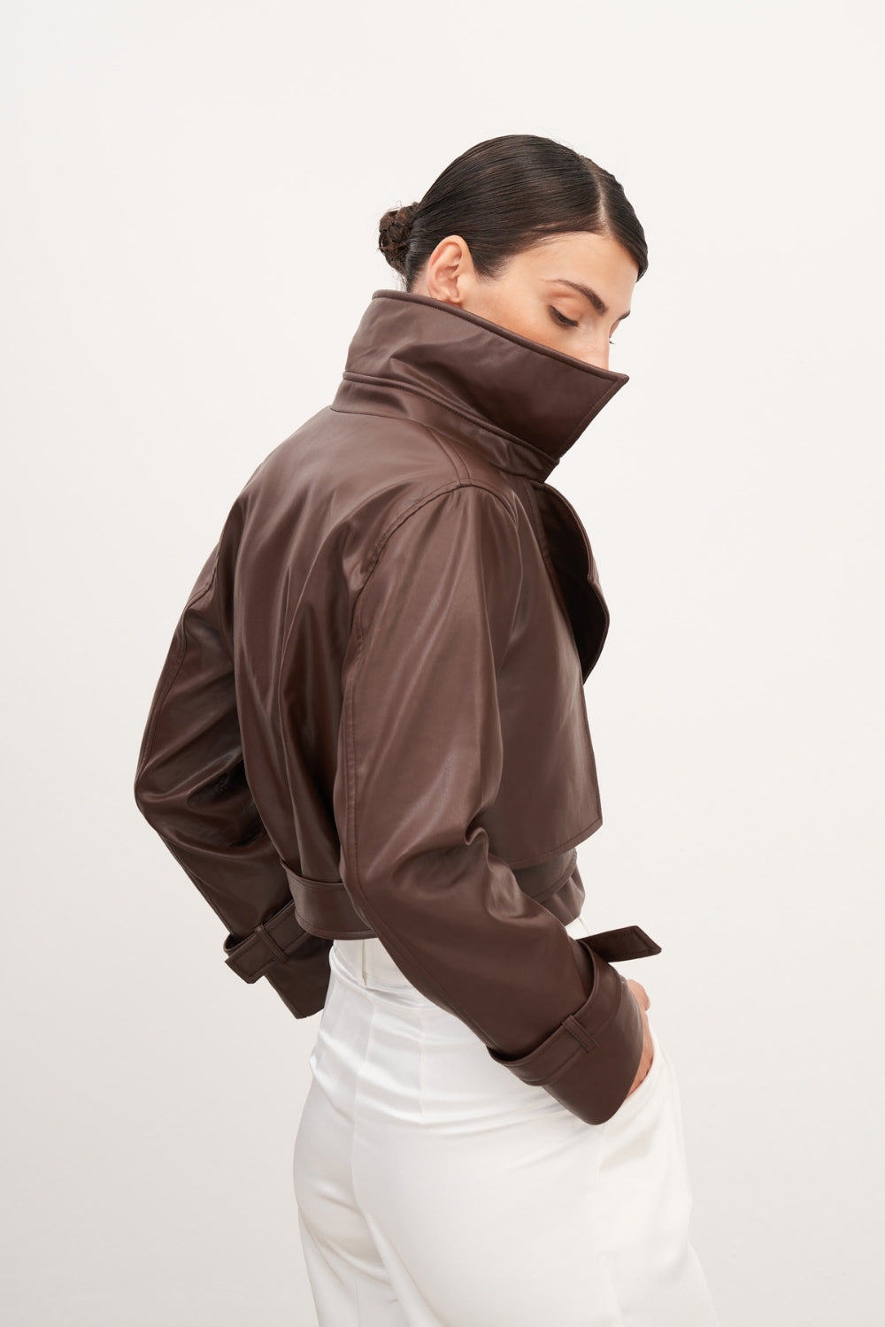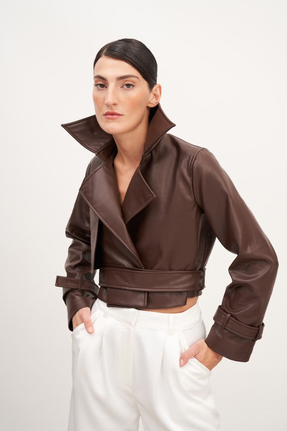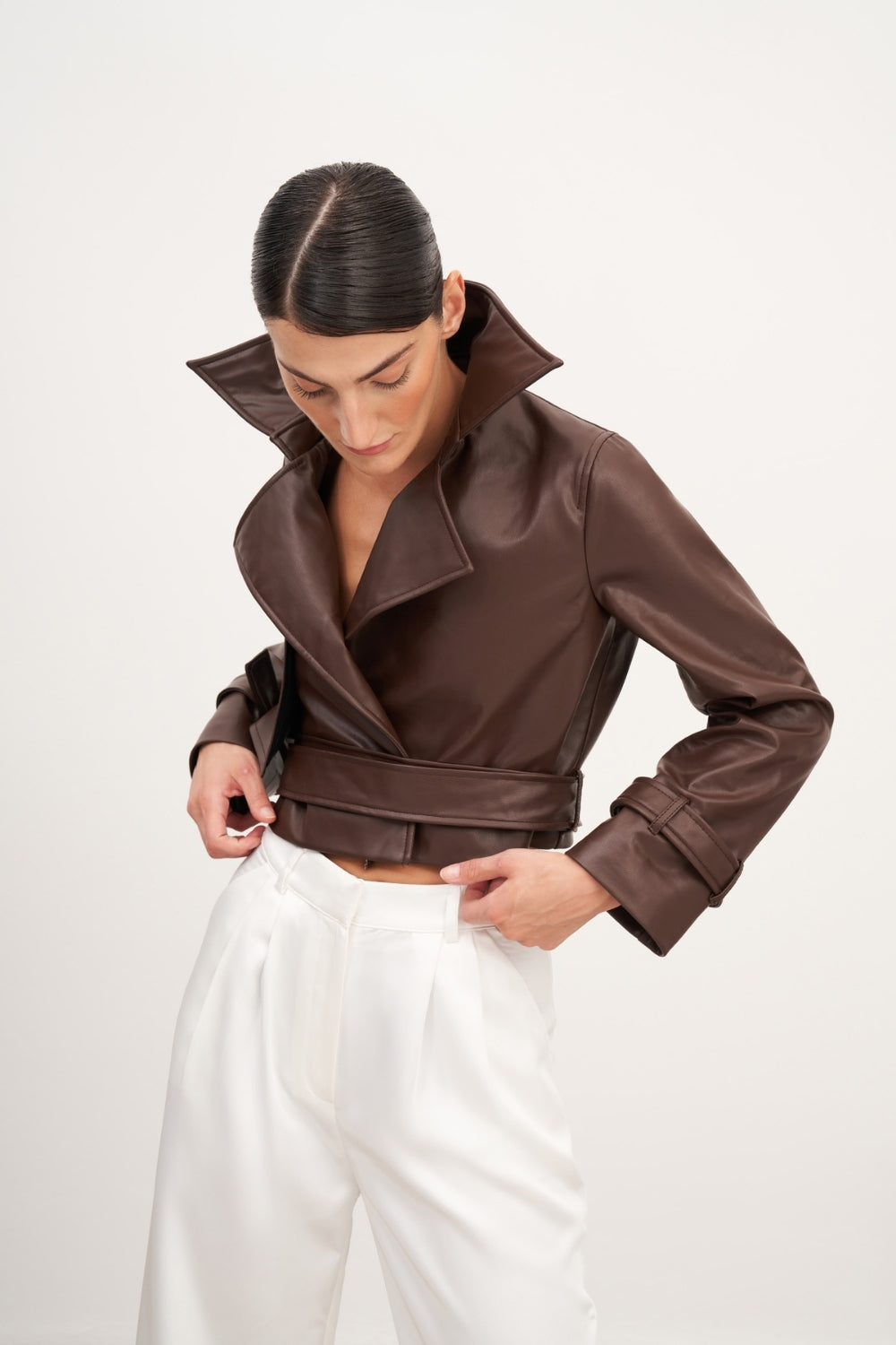 WINGCOTT Acı Kahve Kemerli Deri Ceket