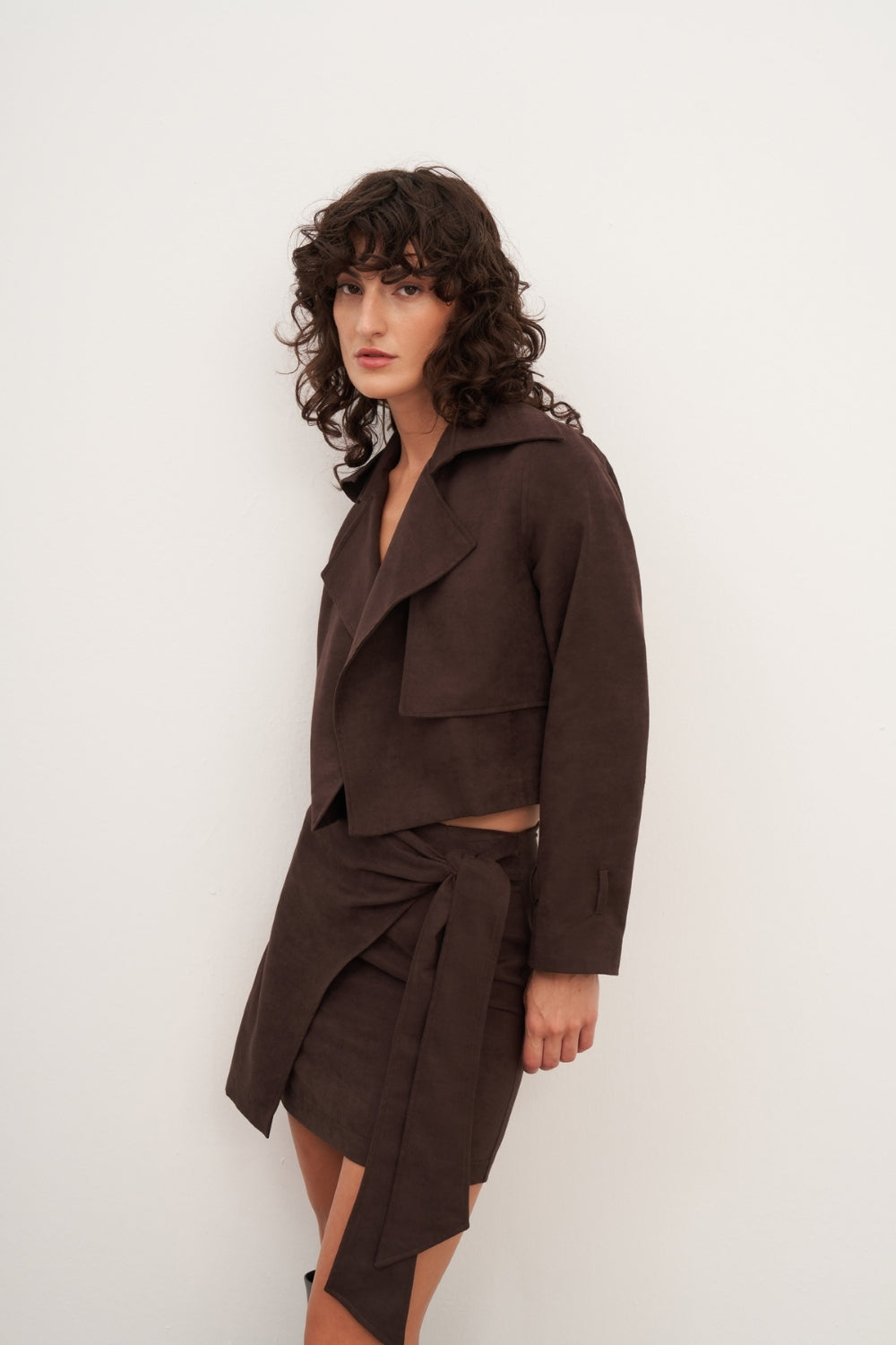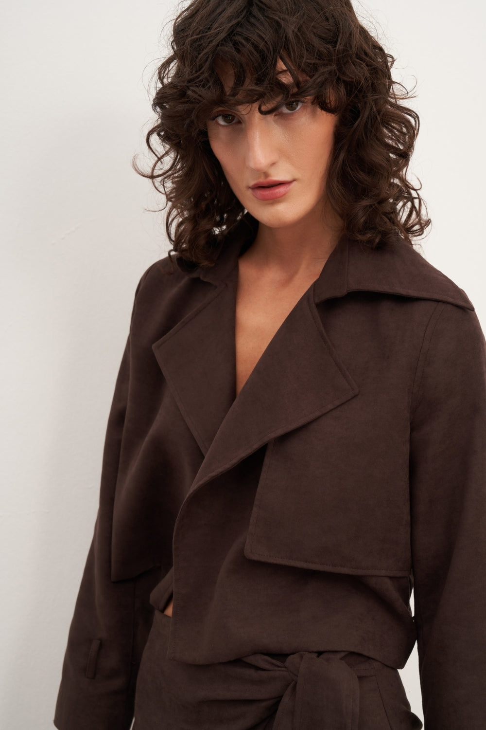 WINGCOTT Acı Kahve Süet Kemerli Kısa Ceket
