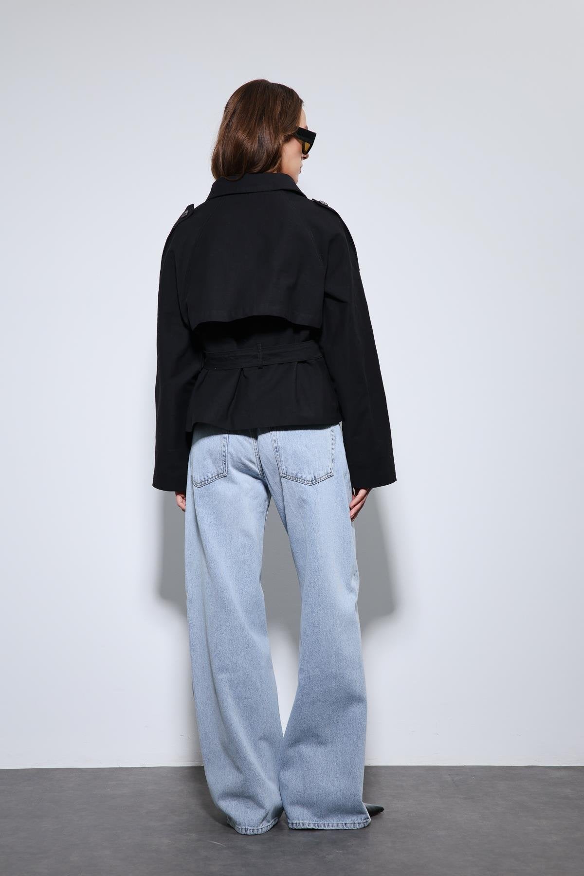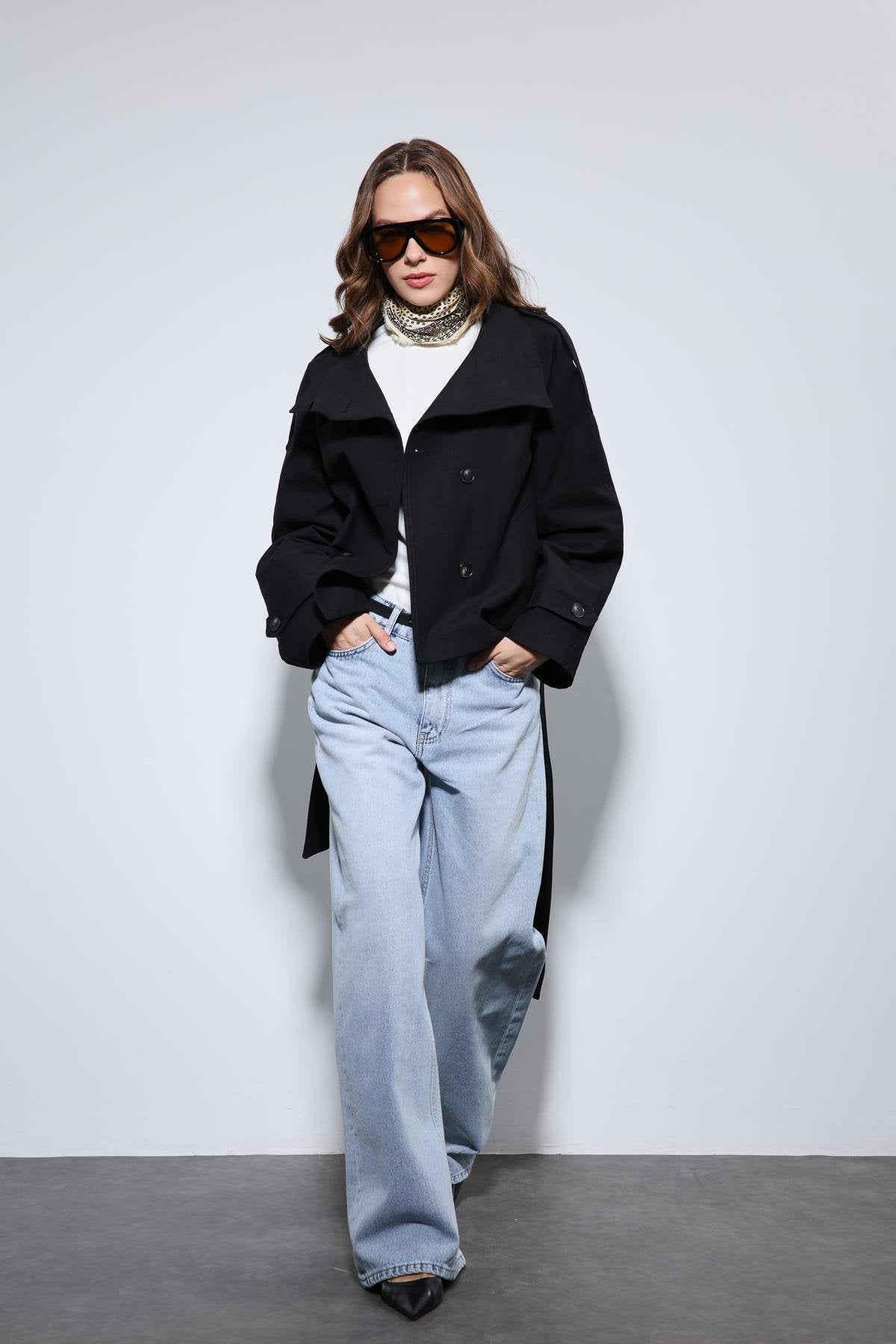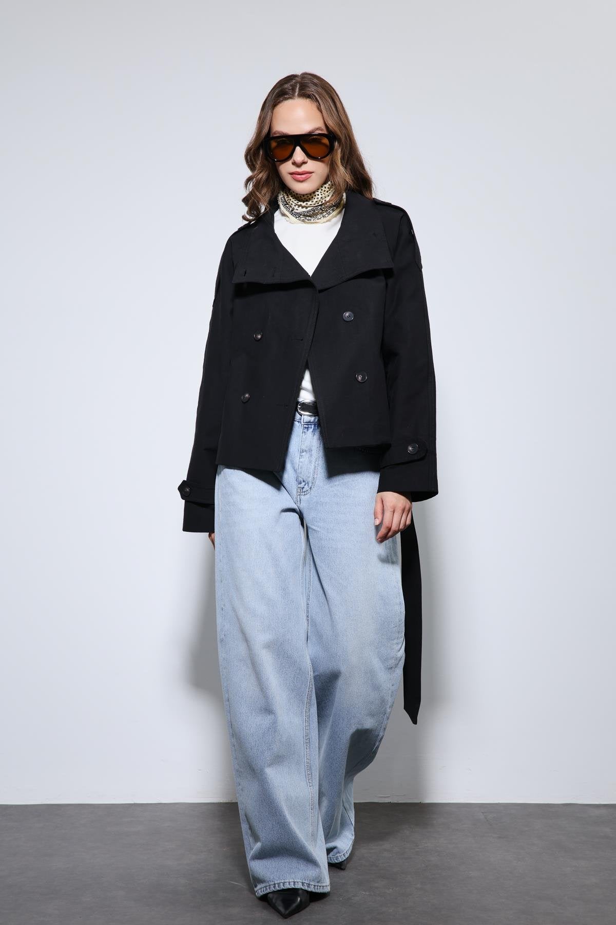 Minimal silueti ve modern kruvaze kapanışıyla şık bir duruş sunan bu trençkot, soğuk havalarda stilinizi zahmetsizce tamamlar. Dik yaka formu rüzgâra karşı koruma sağlarken, kuşak detayı bedeni zarifçe vurgular. Fleto cepleri ile hem konforlu hem de işlevsel bir kullanım sunar. Günlük şehir stilinden akşam görünümlerine kadar her kombine kolaylıkla uyum sağlar.