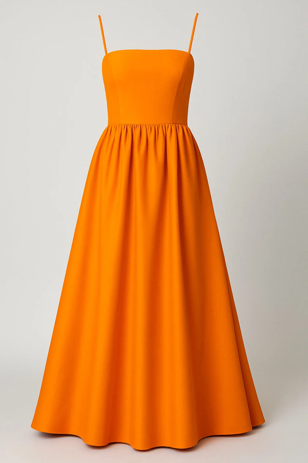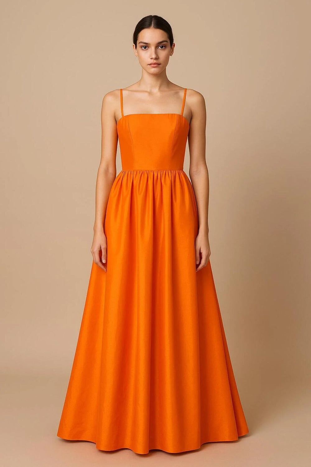 Askılı Turuncu Tafta Straplez Maxi Şık Elbise