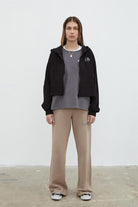 Yüksek belli, geniş paçalı, Fifty Pieces nakışlı, cepli ve kordonlu jogger eşofman altı. İlkbahar/Yaz sezonuna uygun kumaşıyla.