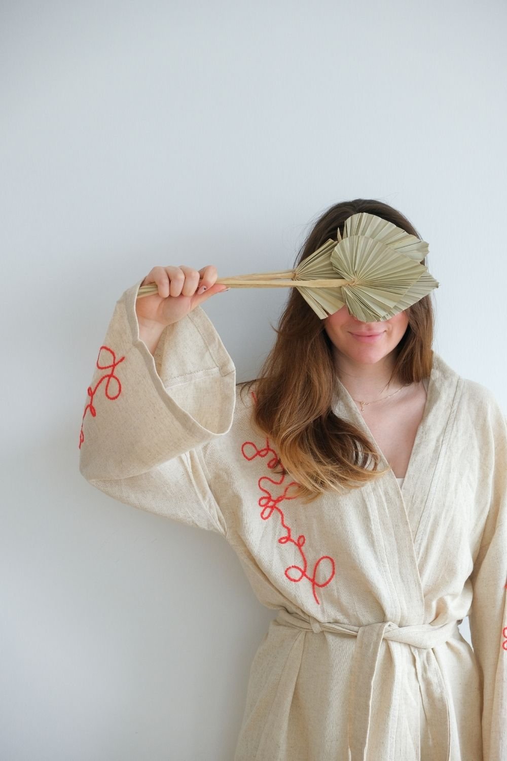 Lofuta kimonoları, kara tezgah dokuması peştamal kumaşından dikilmiş olup, üzerine elle nakış yapılmıştır. Doğal yapısı ve hafifliği sayesinde hem rahatlık hem de şıklık arayanların tercih ettiği geleneksel bir giyim parçasıdır.