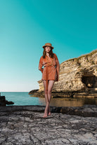 Modelin ölçüleri: Boy 174cm, Göğüs 88cm, Bel 62cm, Kalça 91cm.
