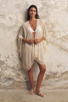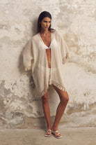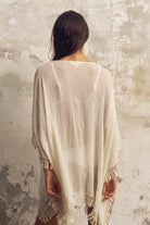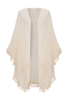 Bu kimono, ince ve hafif dokusu ile zarif bir görünüm sunar ve akışkan siluetiyle rahat bir şıklık yaratır. Açık ön tasarımı ve zarif püskül detayları, her adımda zarif bir hareket sağlar. Kombinleme için mükemmel olan bu parça, güneşli plaj günlerinden serin akşamlarla geçiş yaparken, her tarza ince bir bohem dokunuş katar.