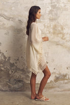 Hafif ve nefes alabilen his için %100 Türk kırışık pamuklu kumaştan üretilmiştirVücutta rahatça akan şeffaf, akışkan silüetKolay kombinleme ve çok yönlü stil için açık ön tasarımEtek kısmında zarif püskül detayları