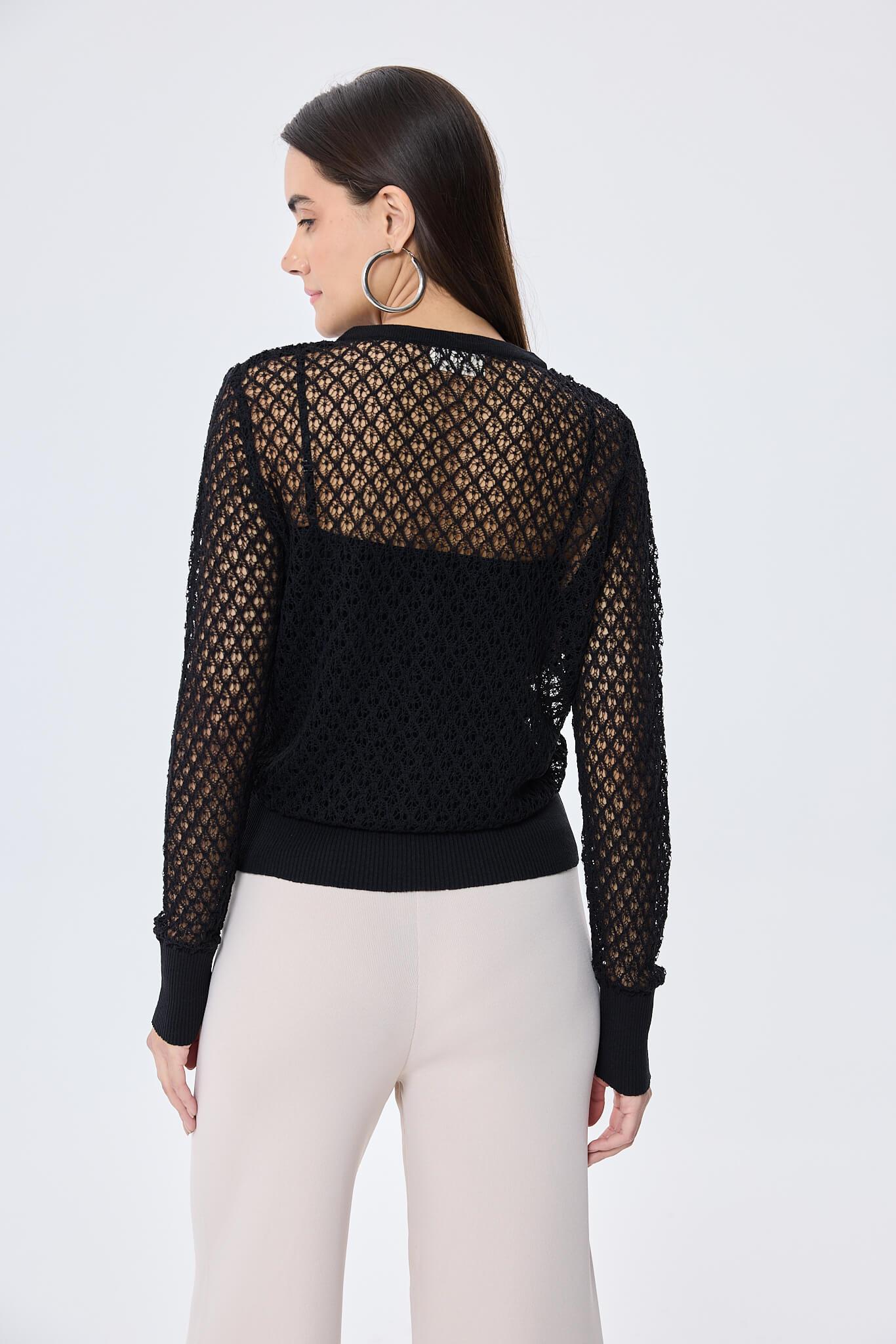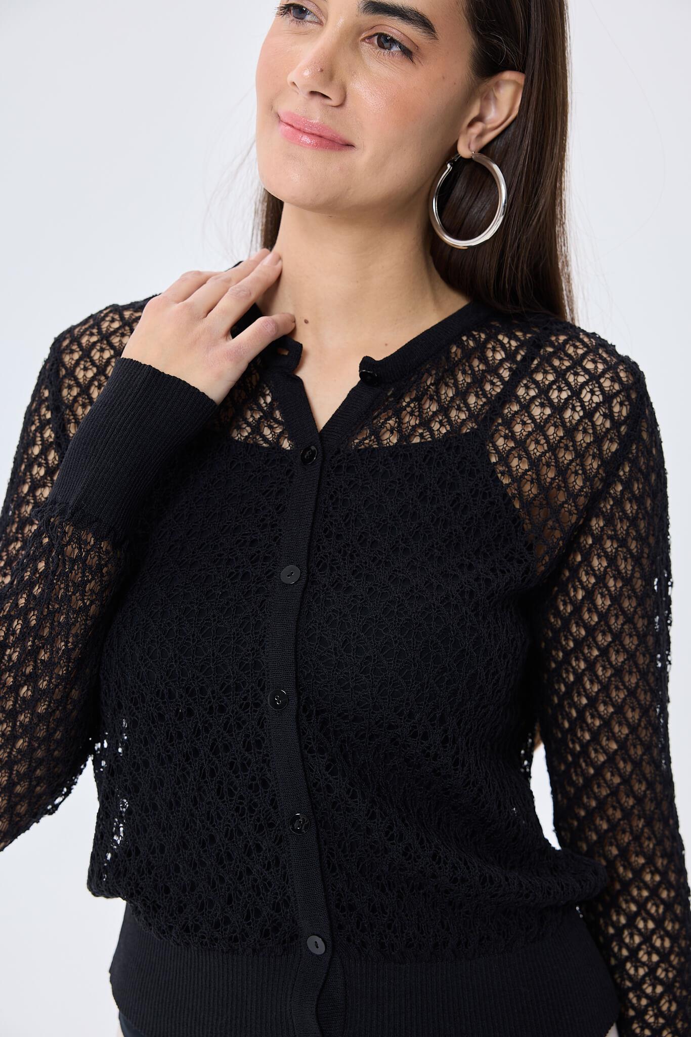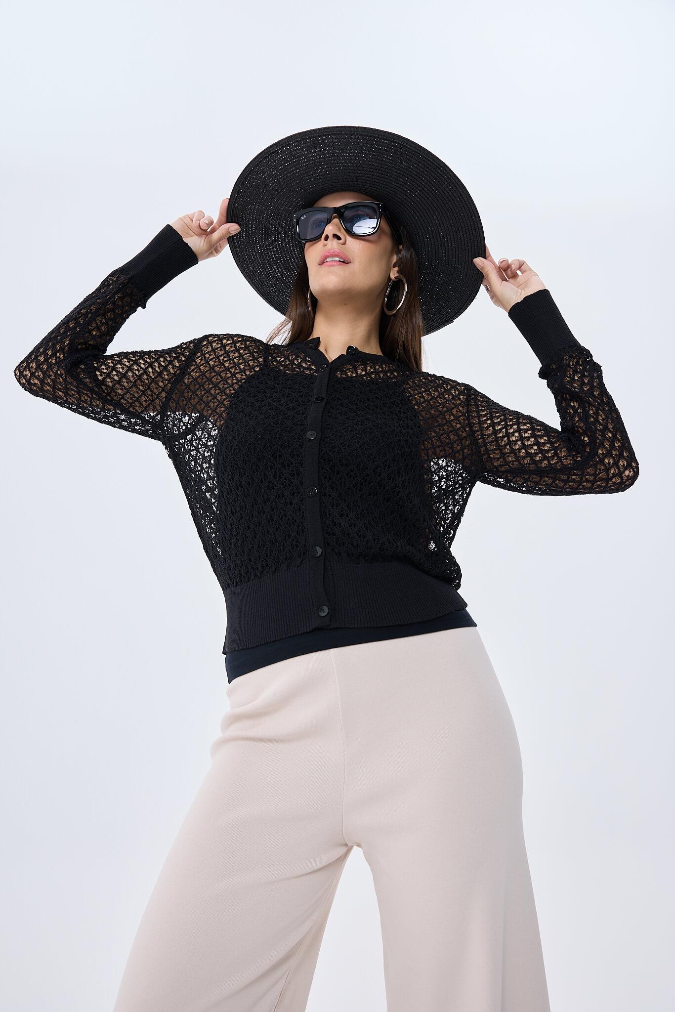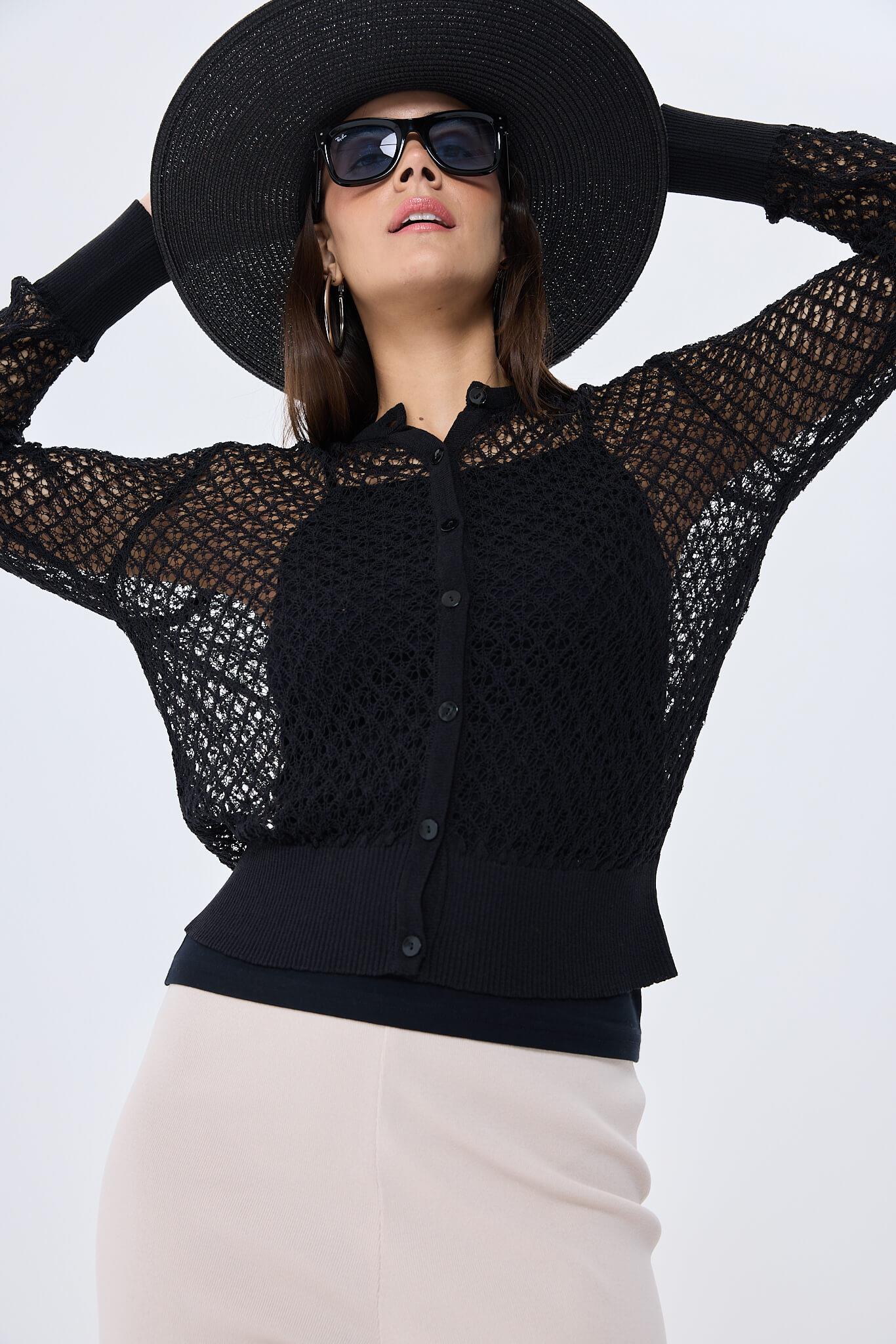 Addison Ajur Örgülü Kadın Triko Hırka Siyah