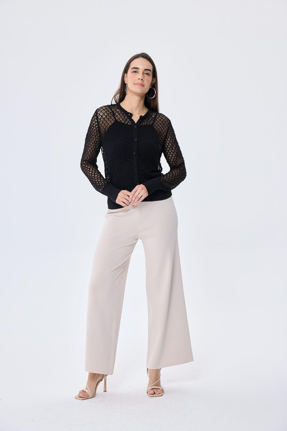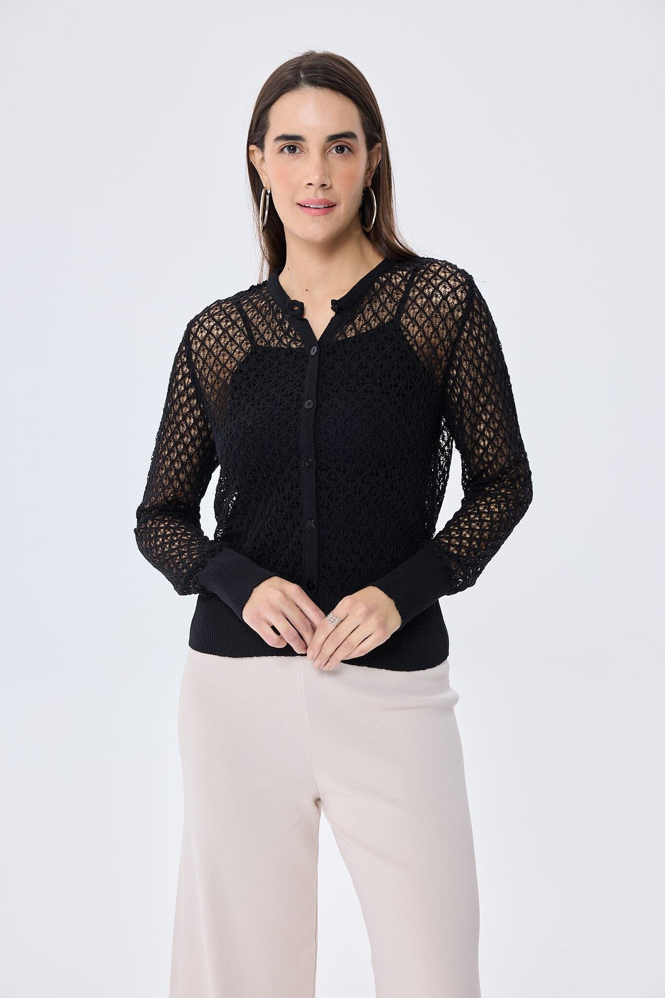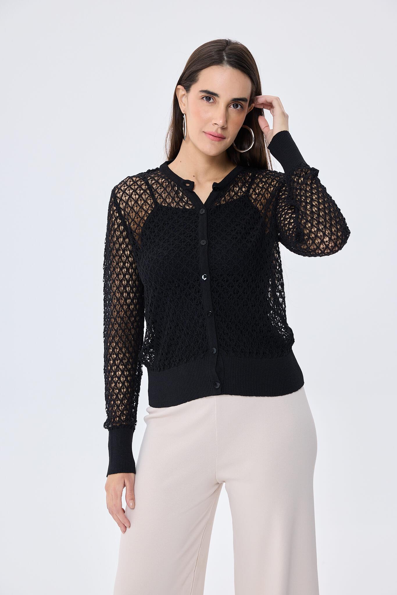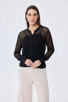 Addison Ajur Örgülü Kadın Triko Hırka Siyah