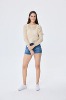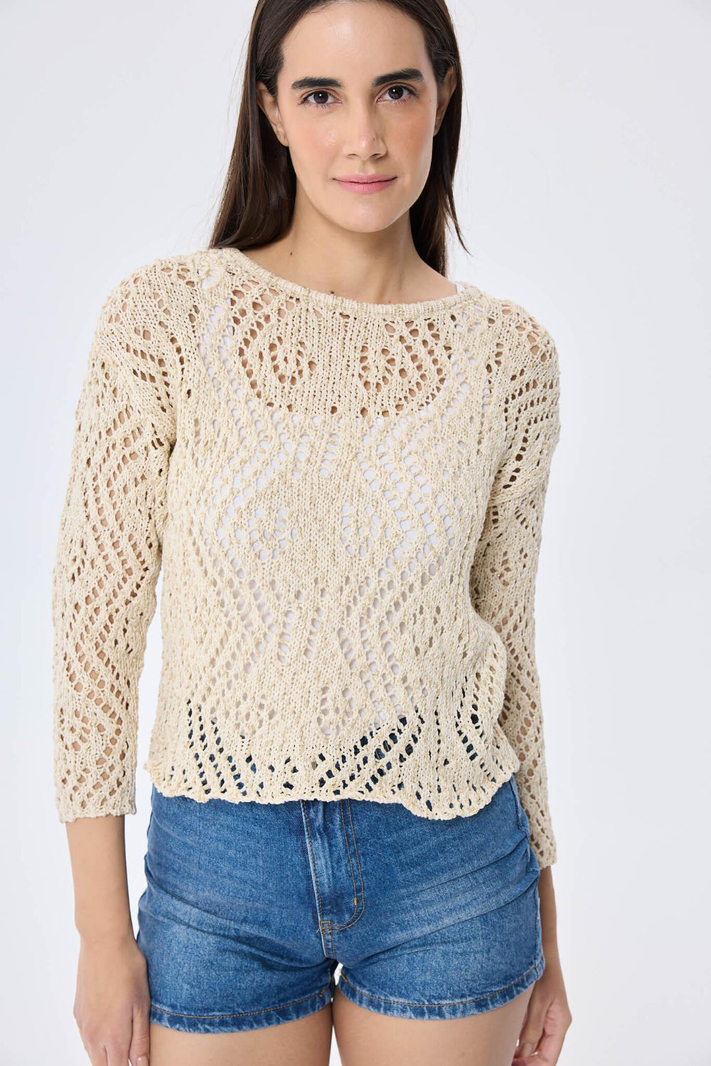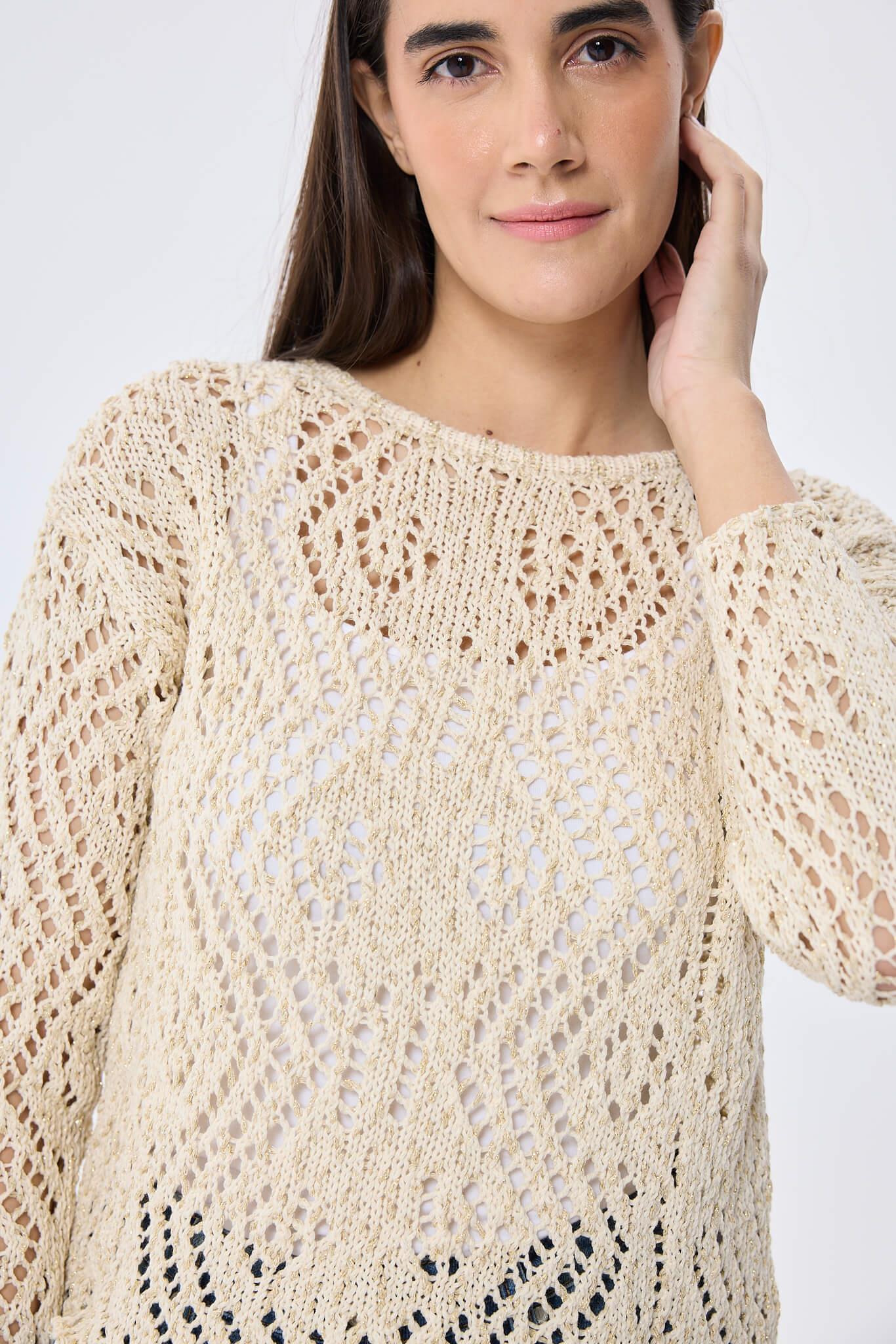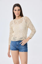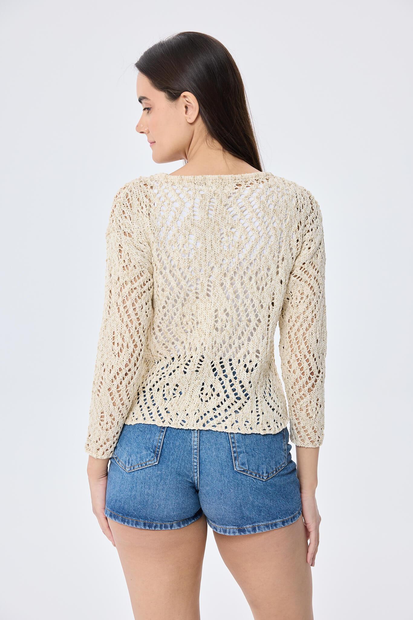Amy Top Ajur Örgü Kadın Simli Bluz Ekru Simli