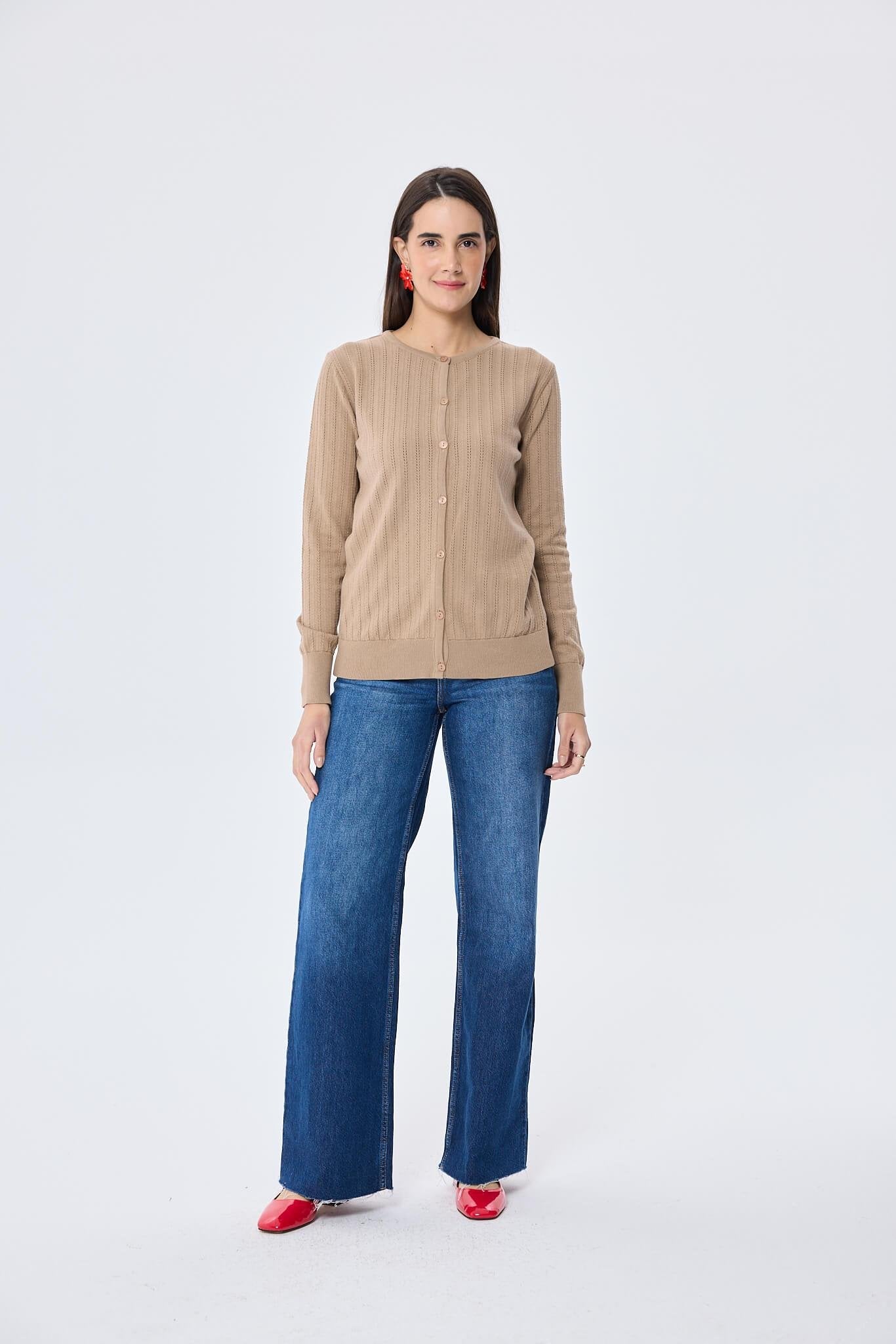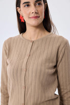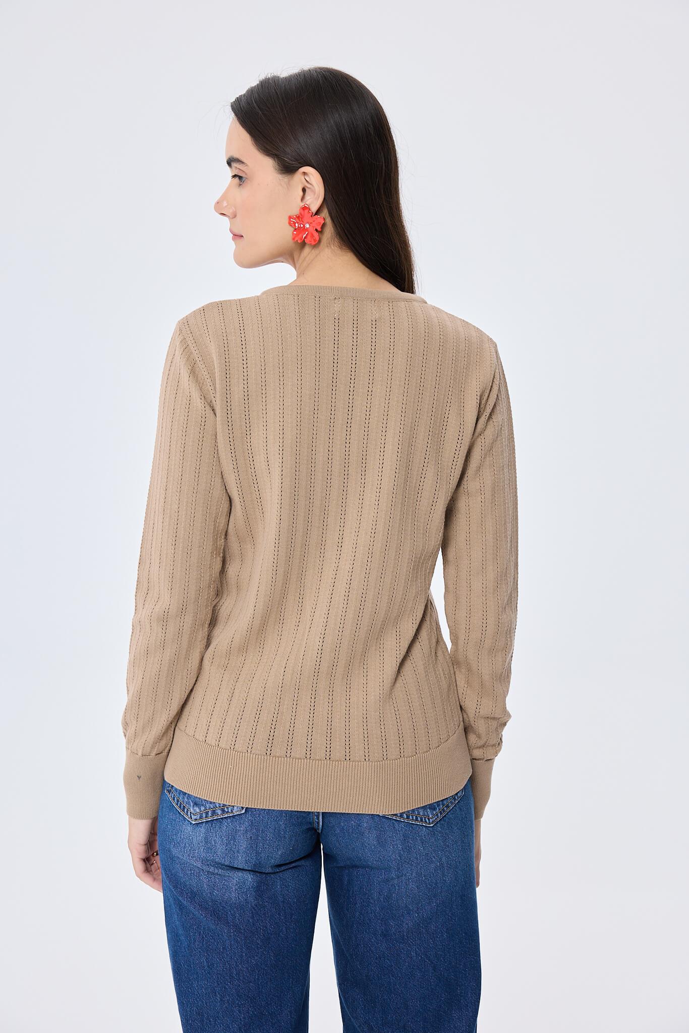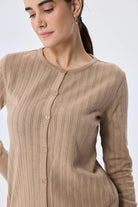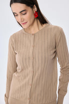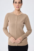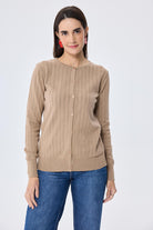 Celine Ajur Örgülü Kadın Triko Hırka Kamel
