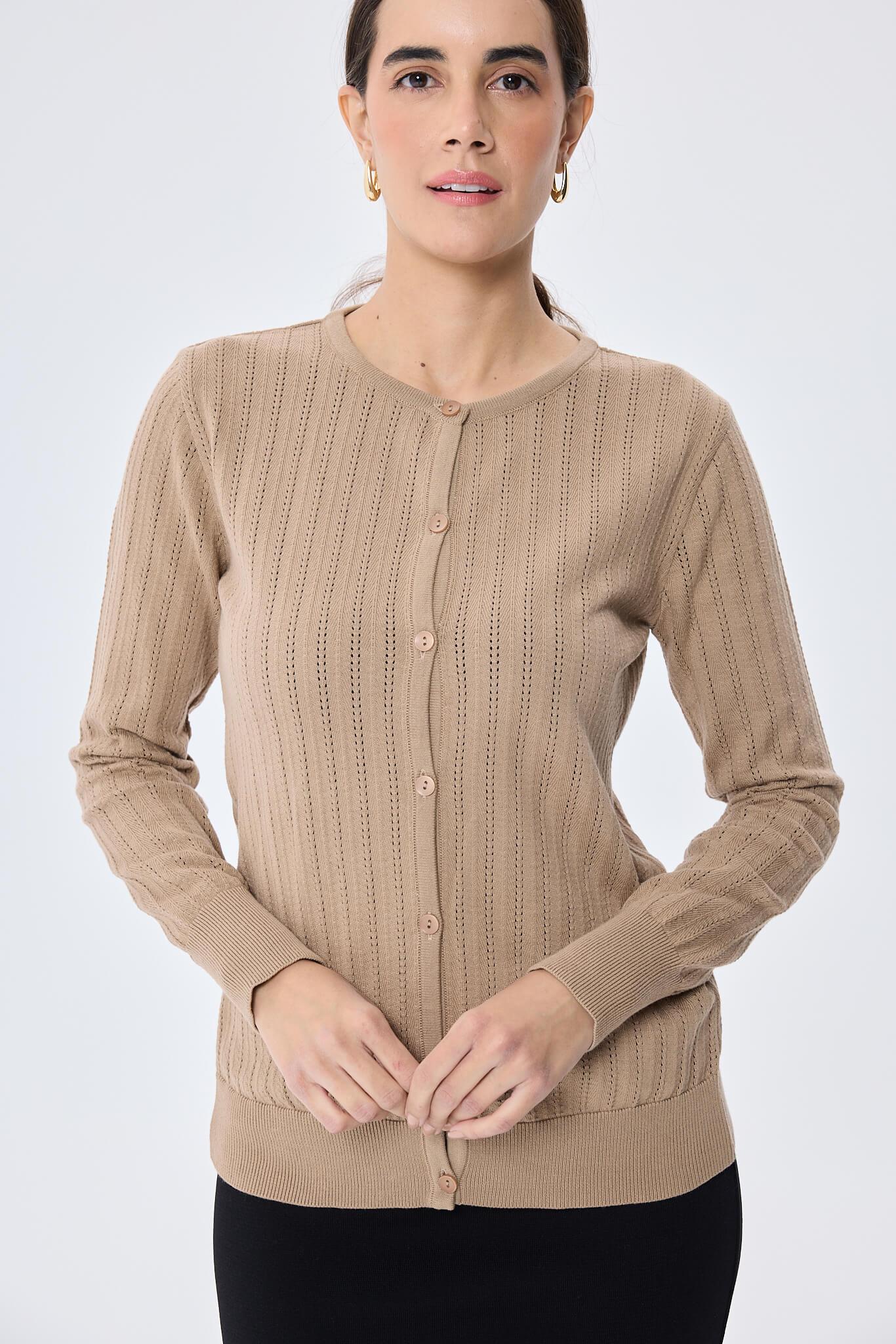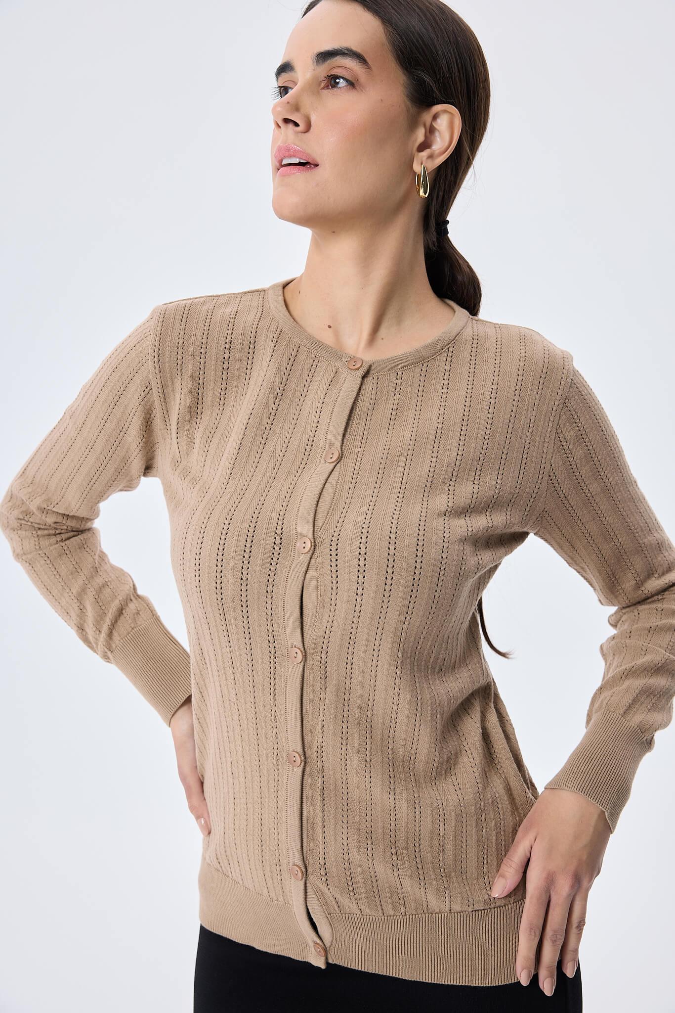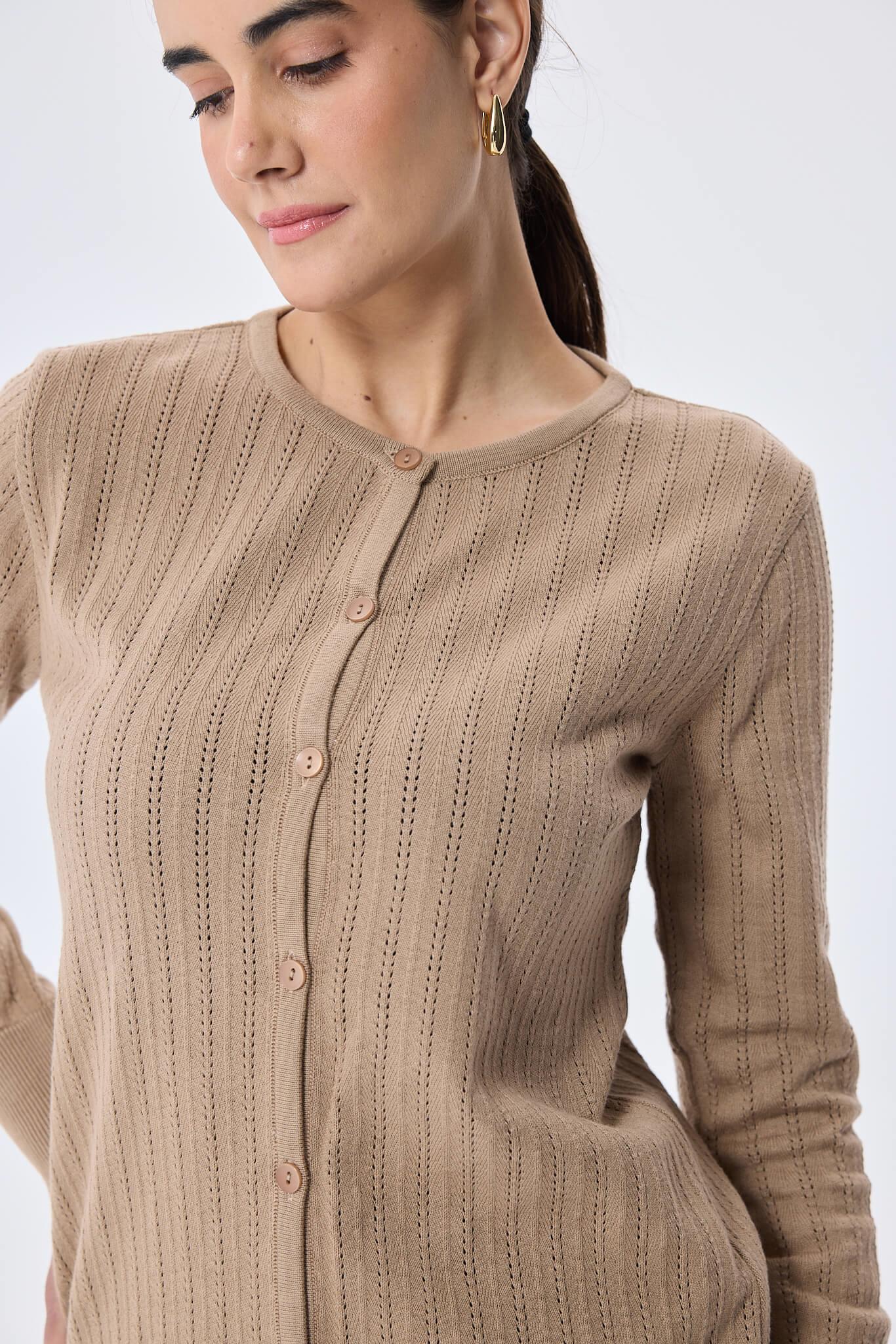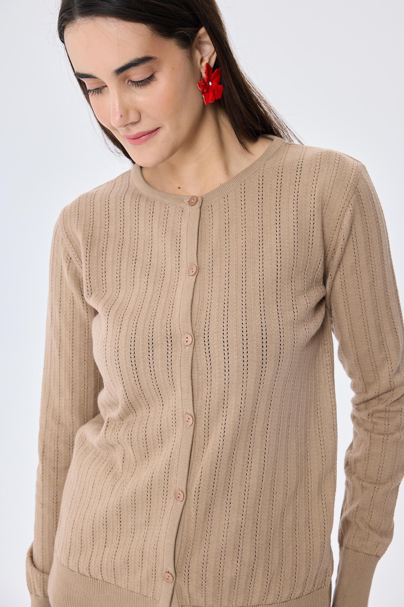 Ajur Örgü, Standart Kesim, O Yaka, Organik Pamuklu, Kadın Yazlık Triko Hırka