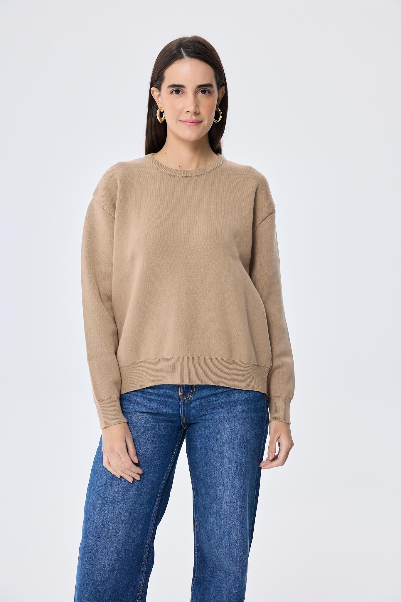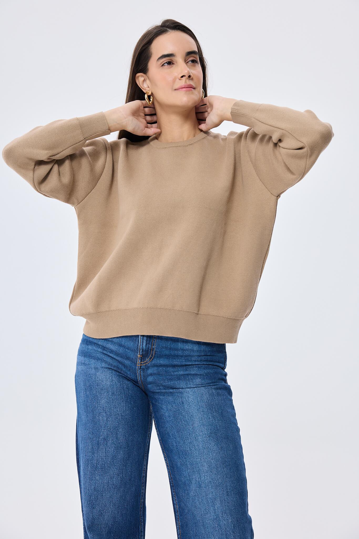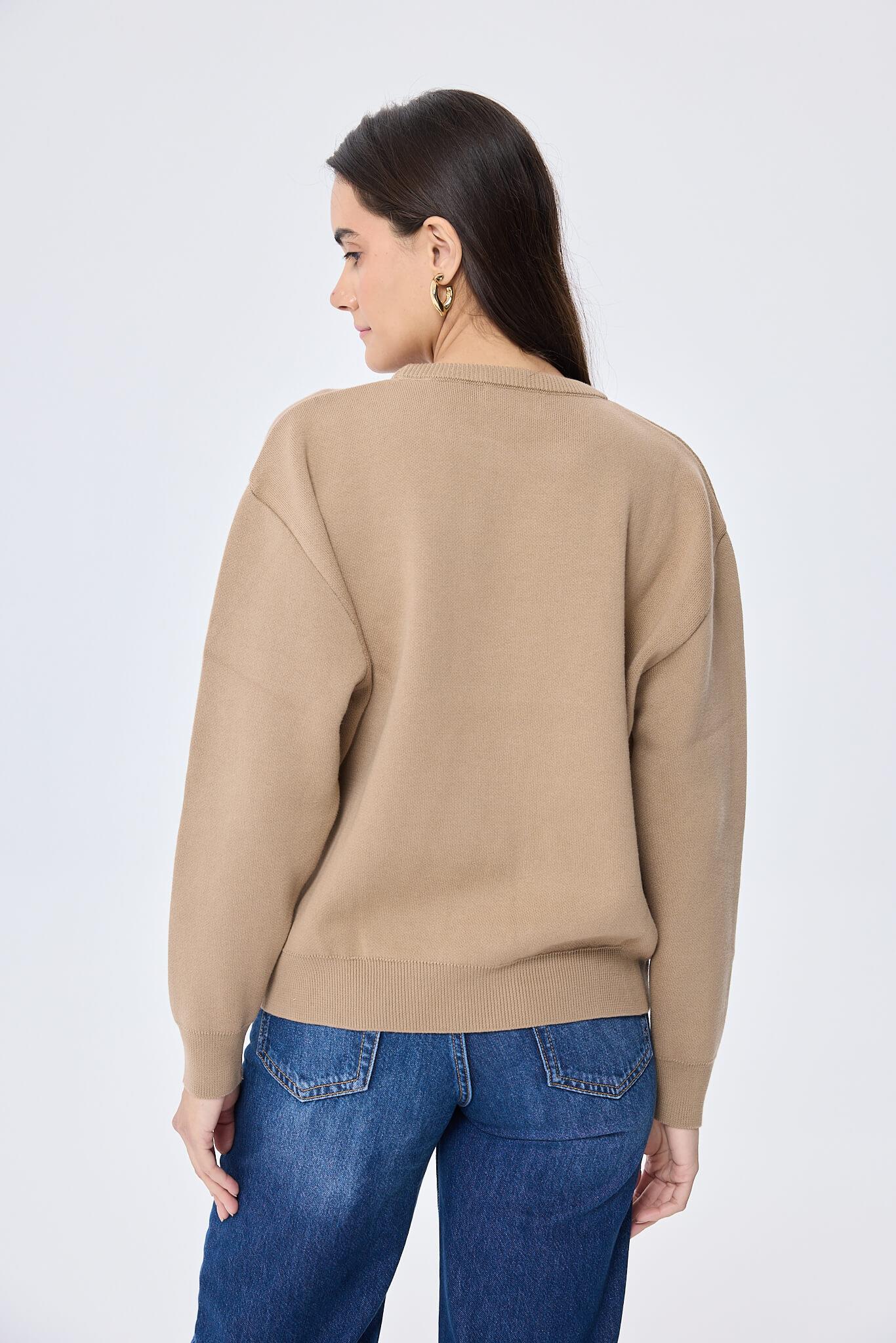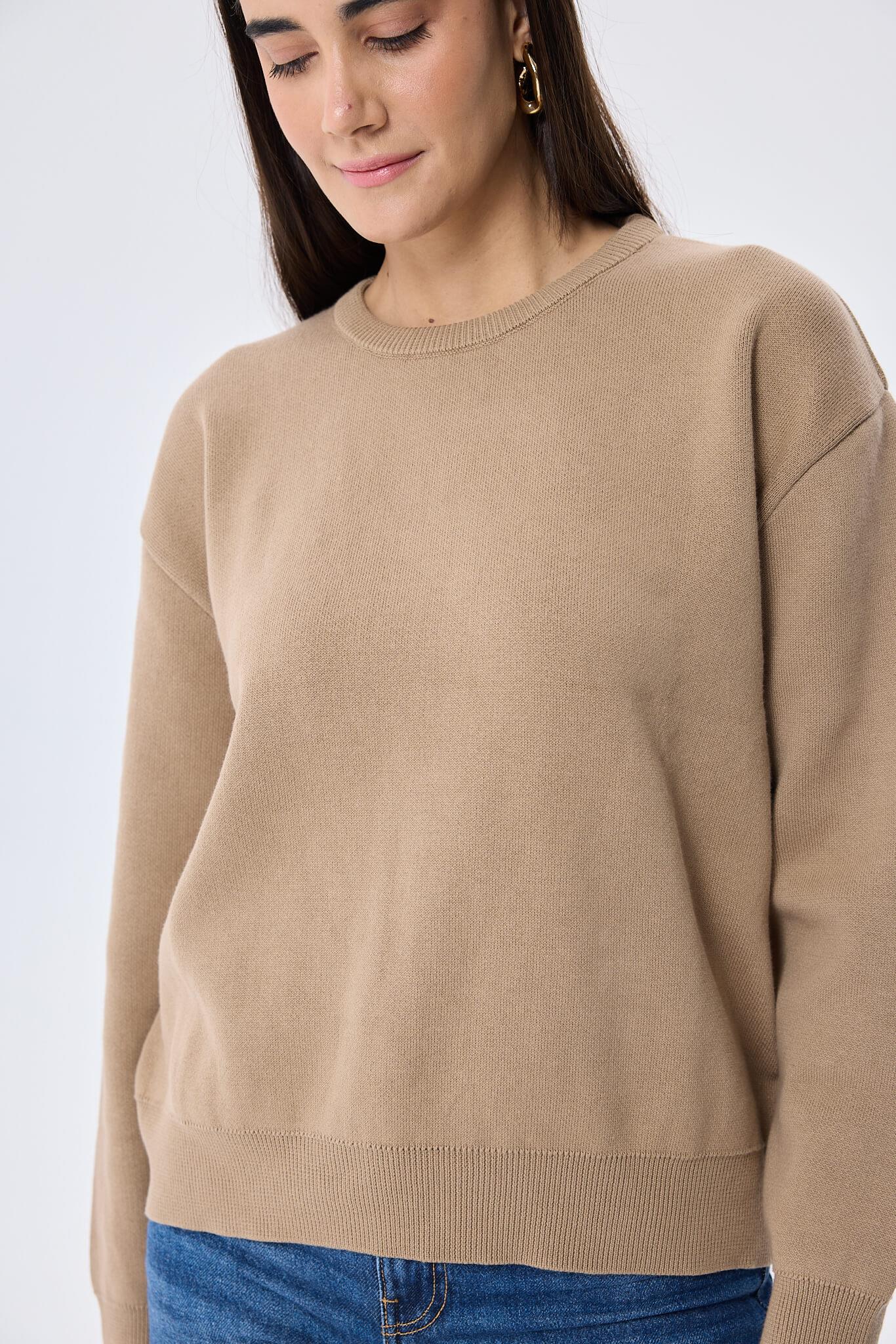 Cleo Düz Örgü Kadın Mevsimlik Triko Kazak Kamel