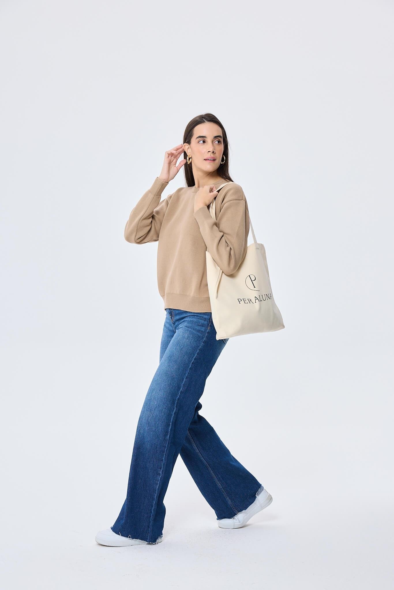 Düz Örgü, Rahat Kesim, O Yaka, Organik Pamuk, Kadın Mevsimlik Triko Kazak