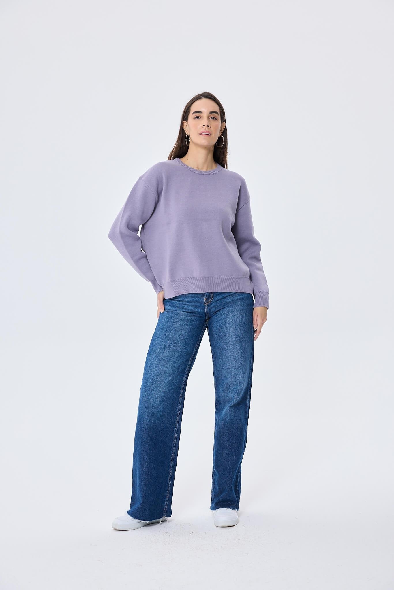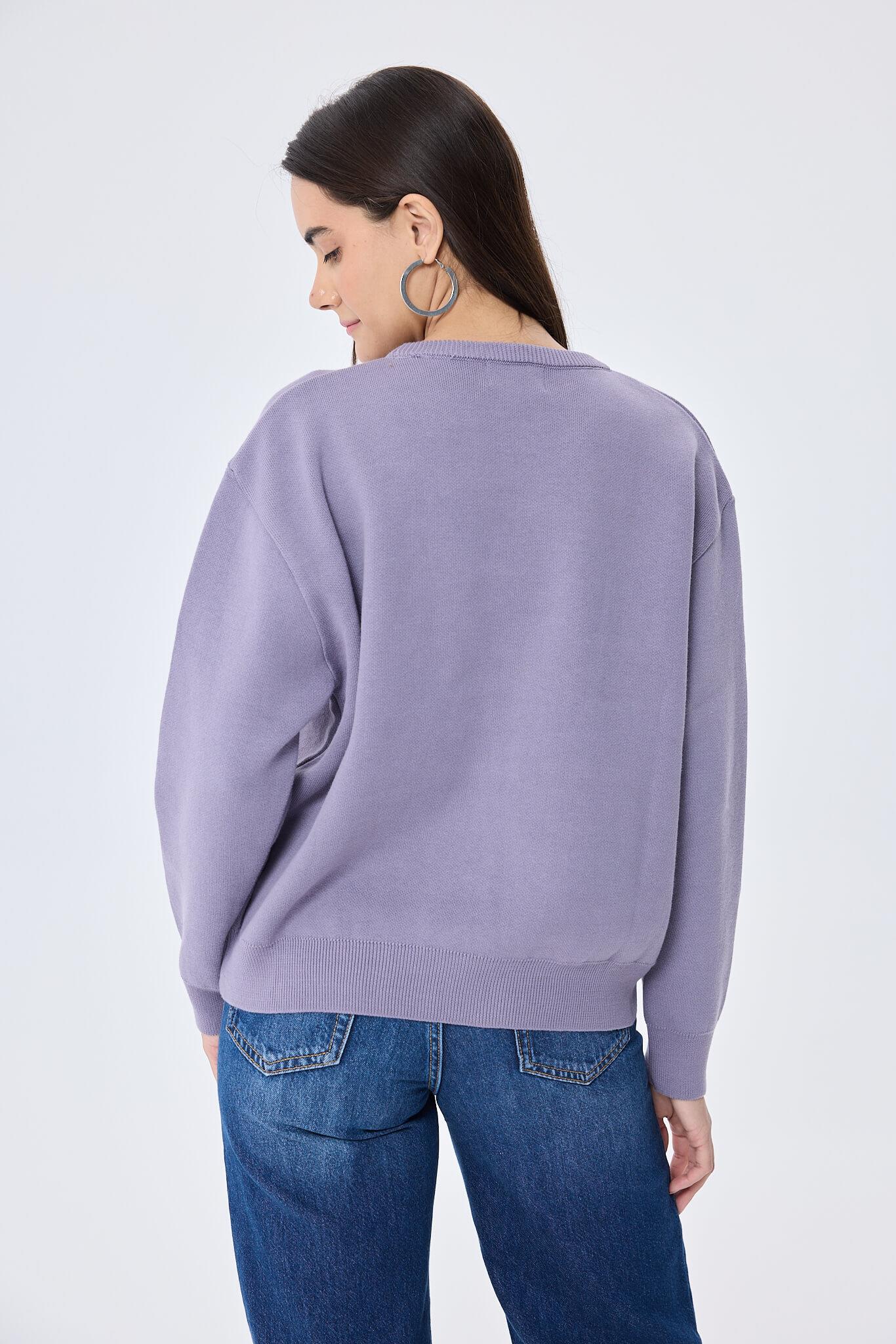 Cleo Düz Örgü Kadın Mevsimlik Triko Kazak Lila