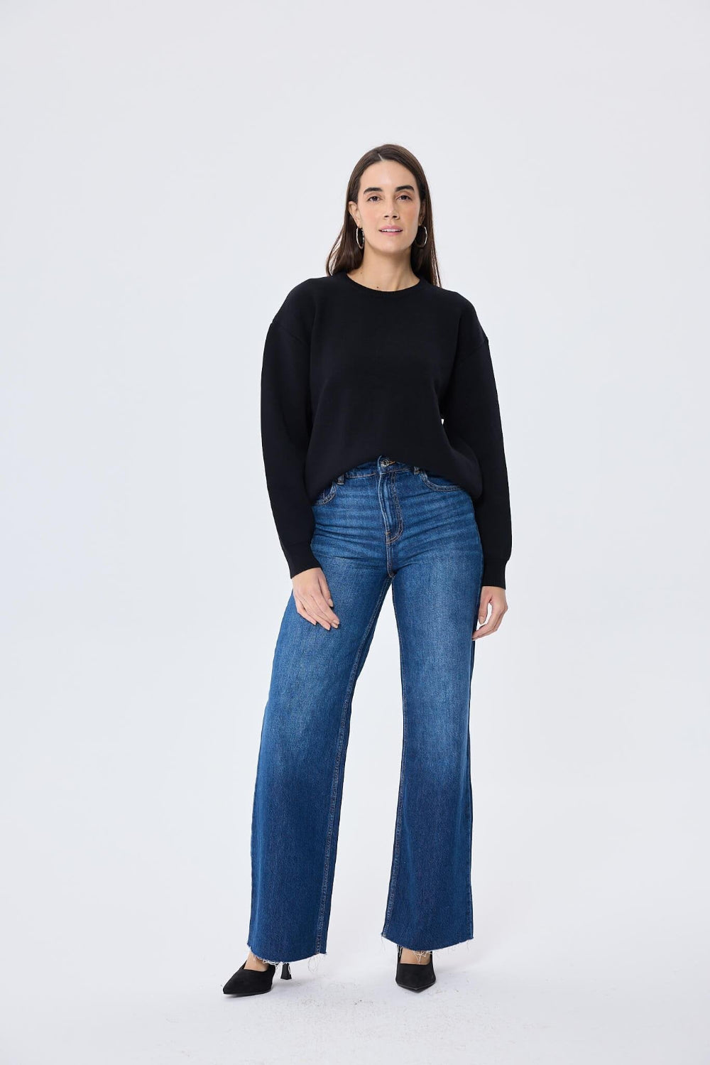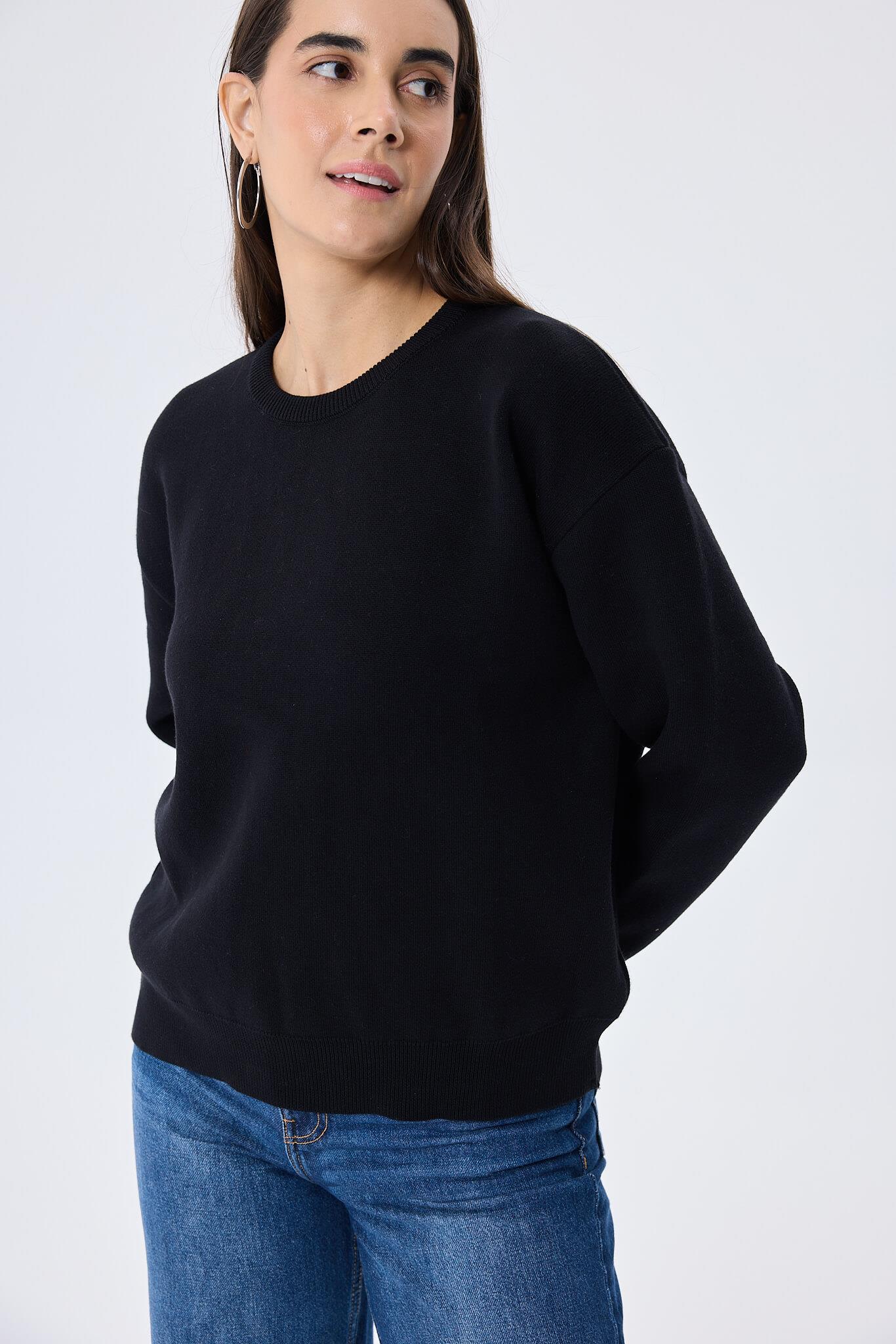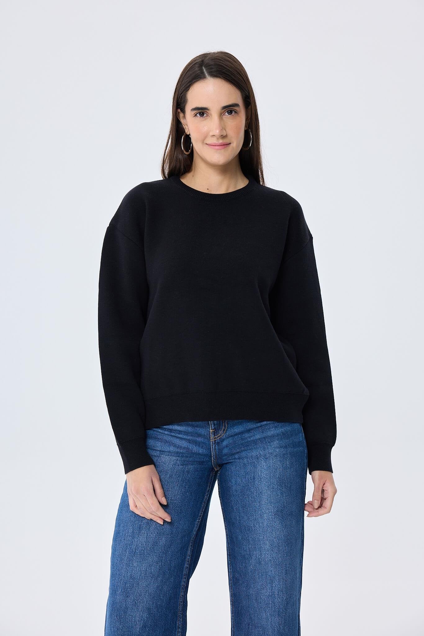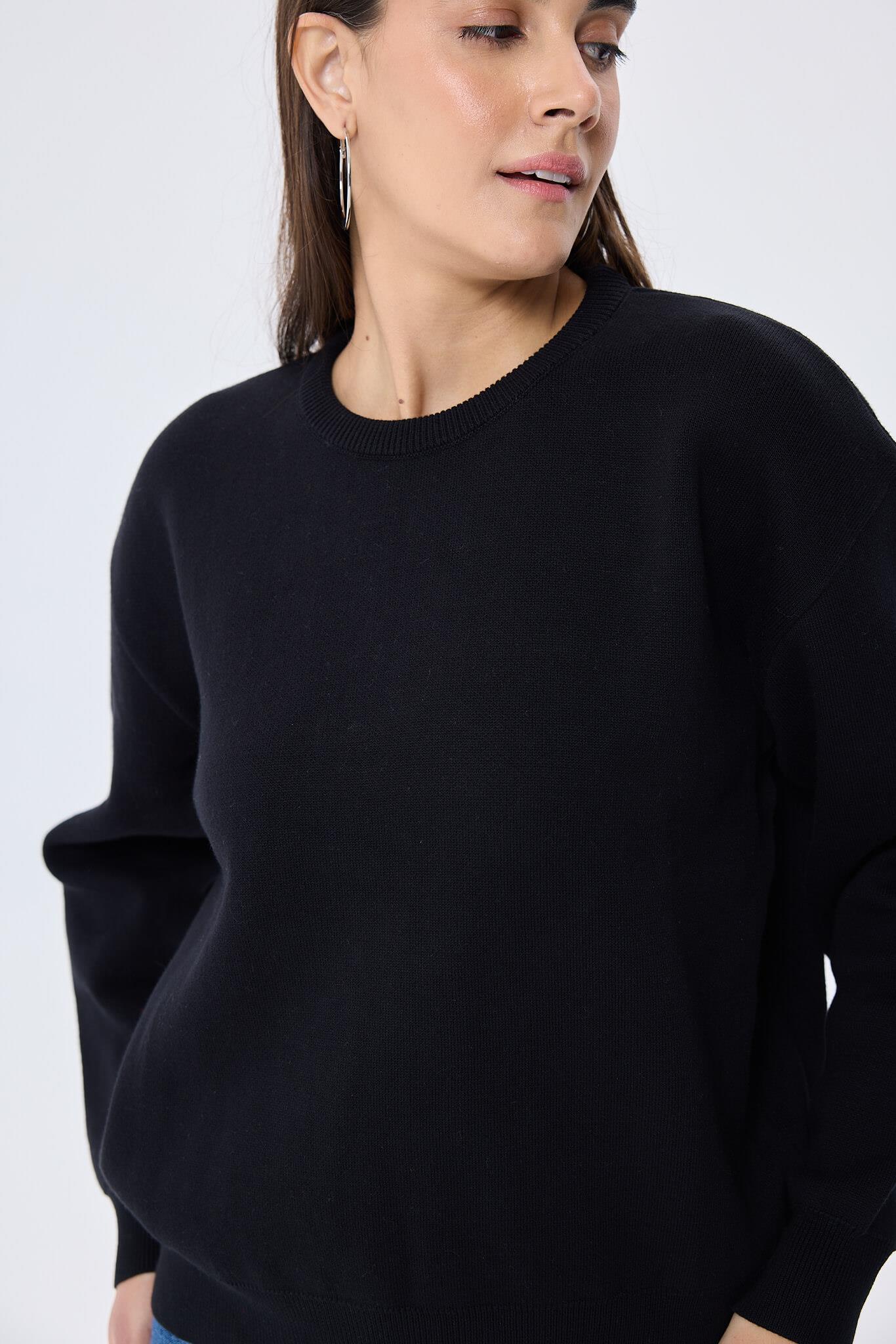 Cleo Düz Örgü Kadın Mevsimlik Triko Kazak Siyah