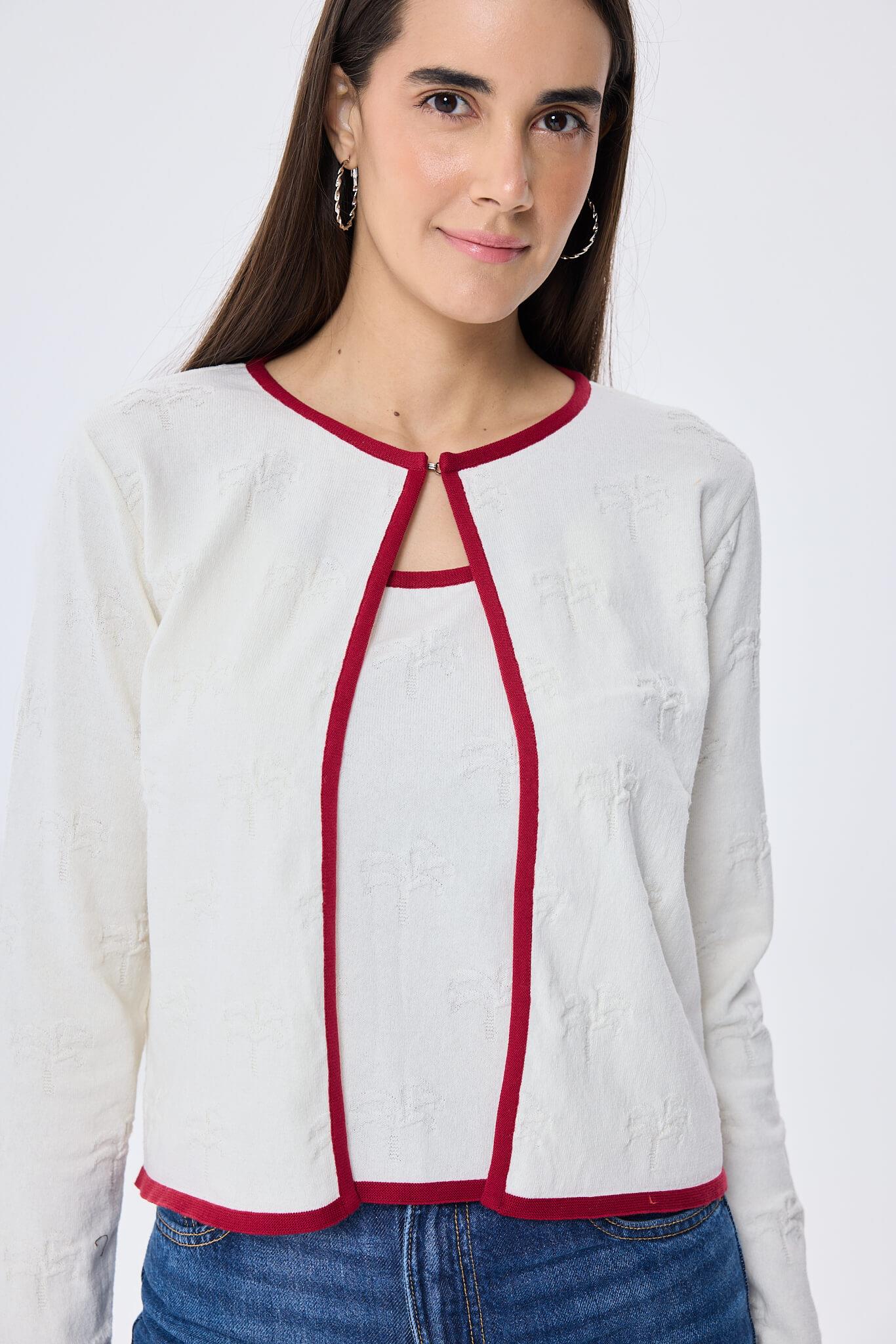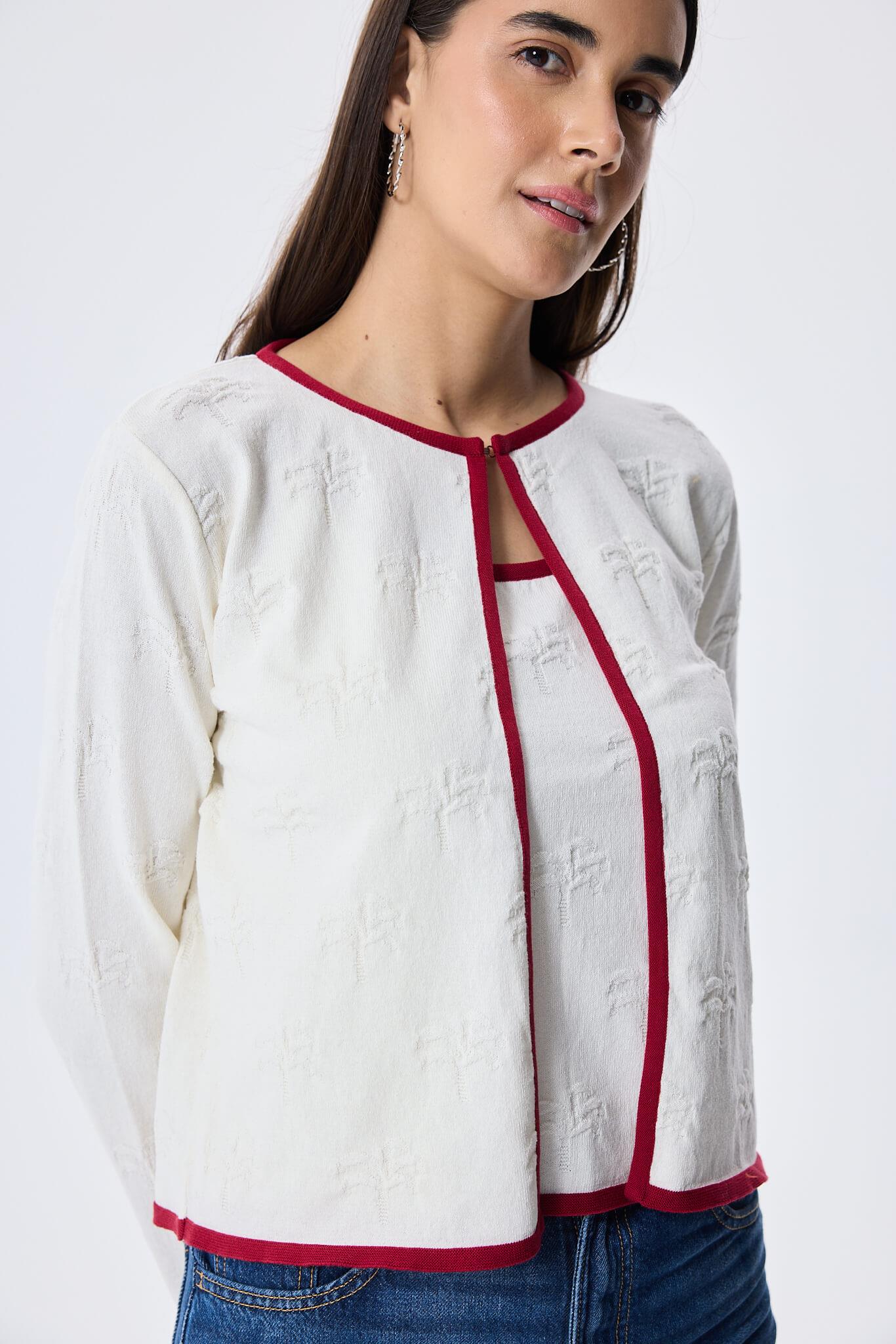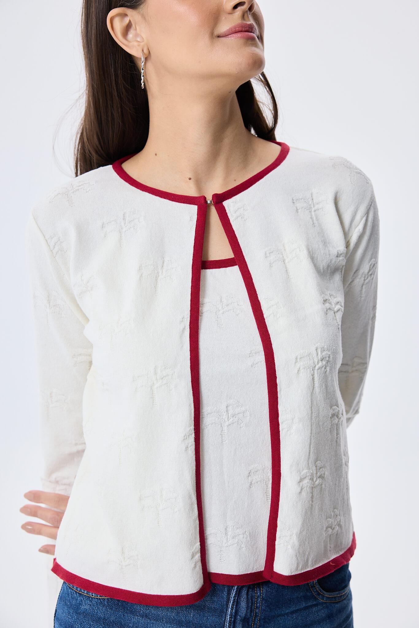 Desert Palm Palmiye Desenli Kadın Yazlık Triko Hırka Ekru