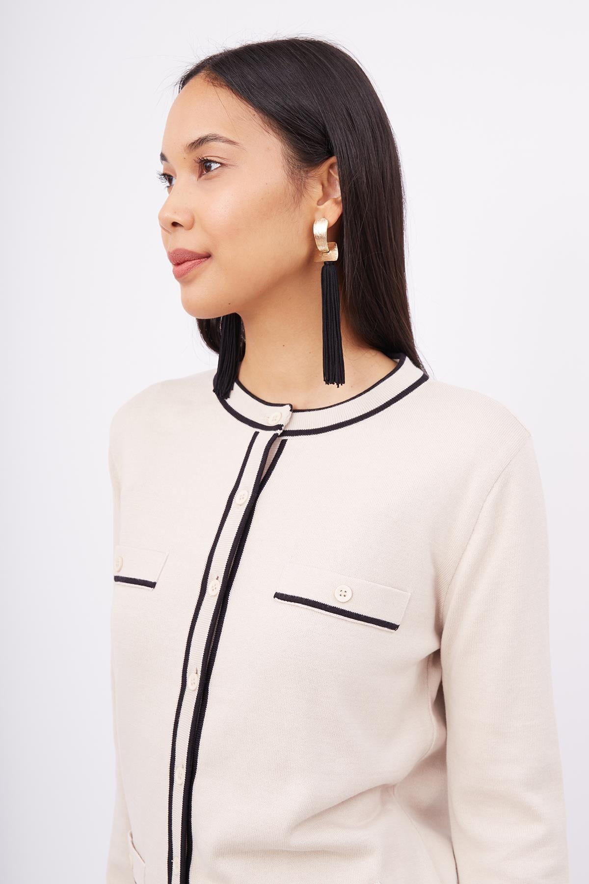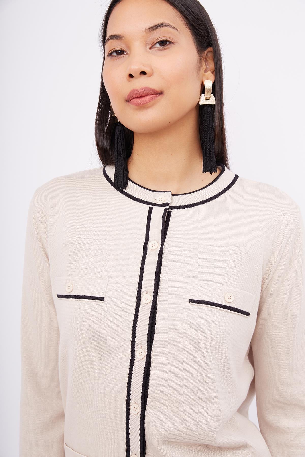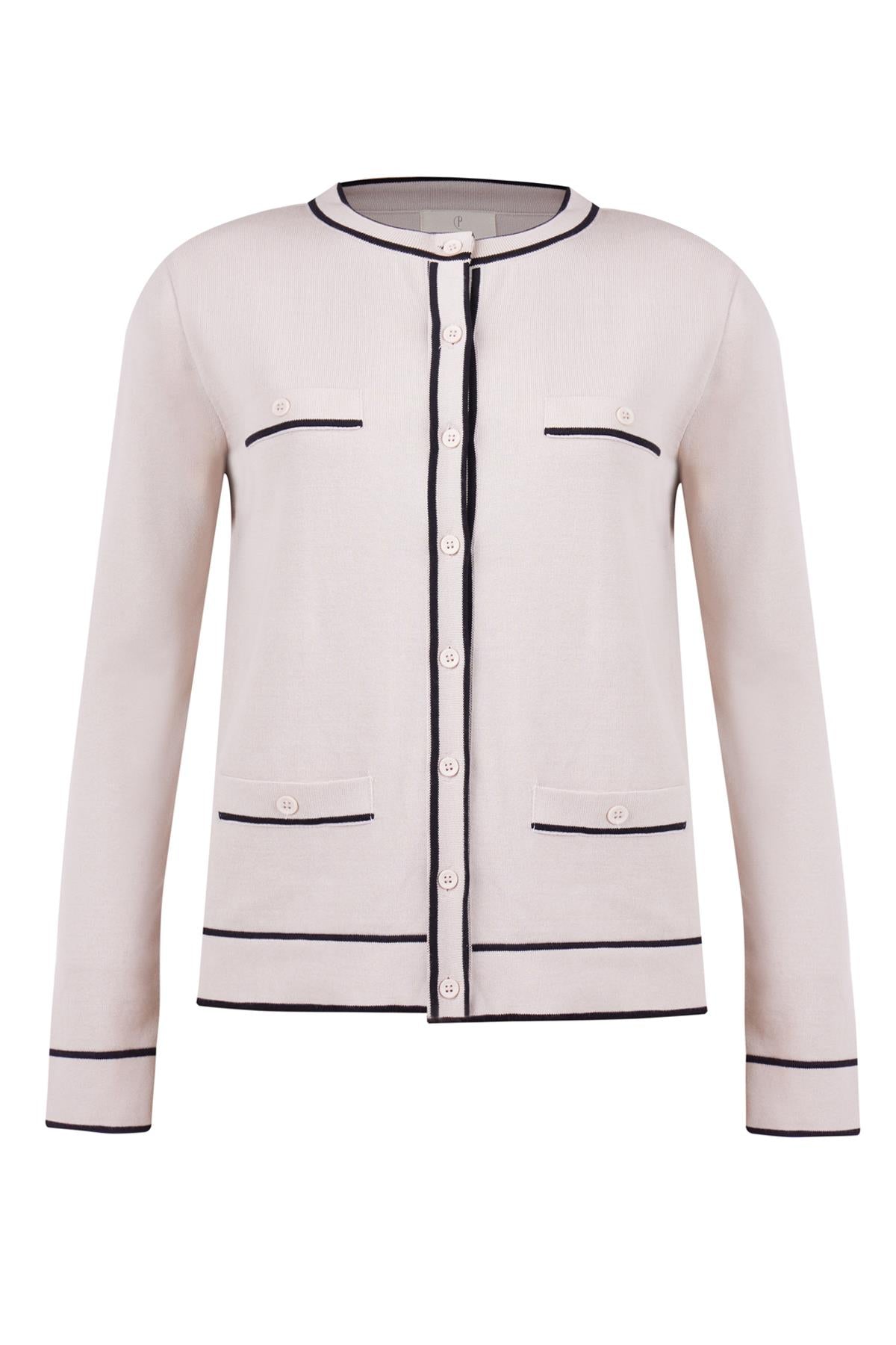 Helen Cardigan Çizgi Detaylı O Yaka Rahat Kesim İNce Kadın Triko Hırka Bej