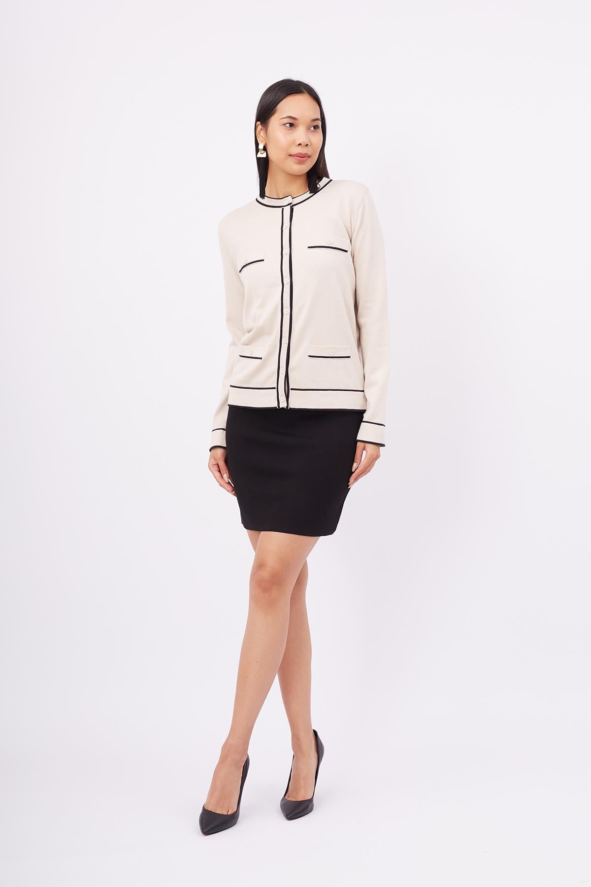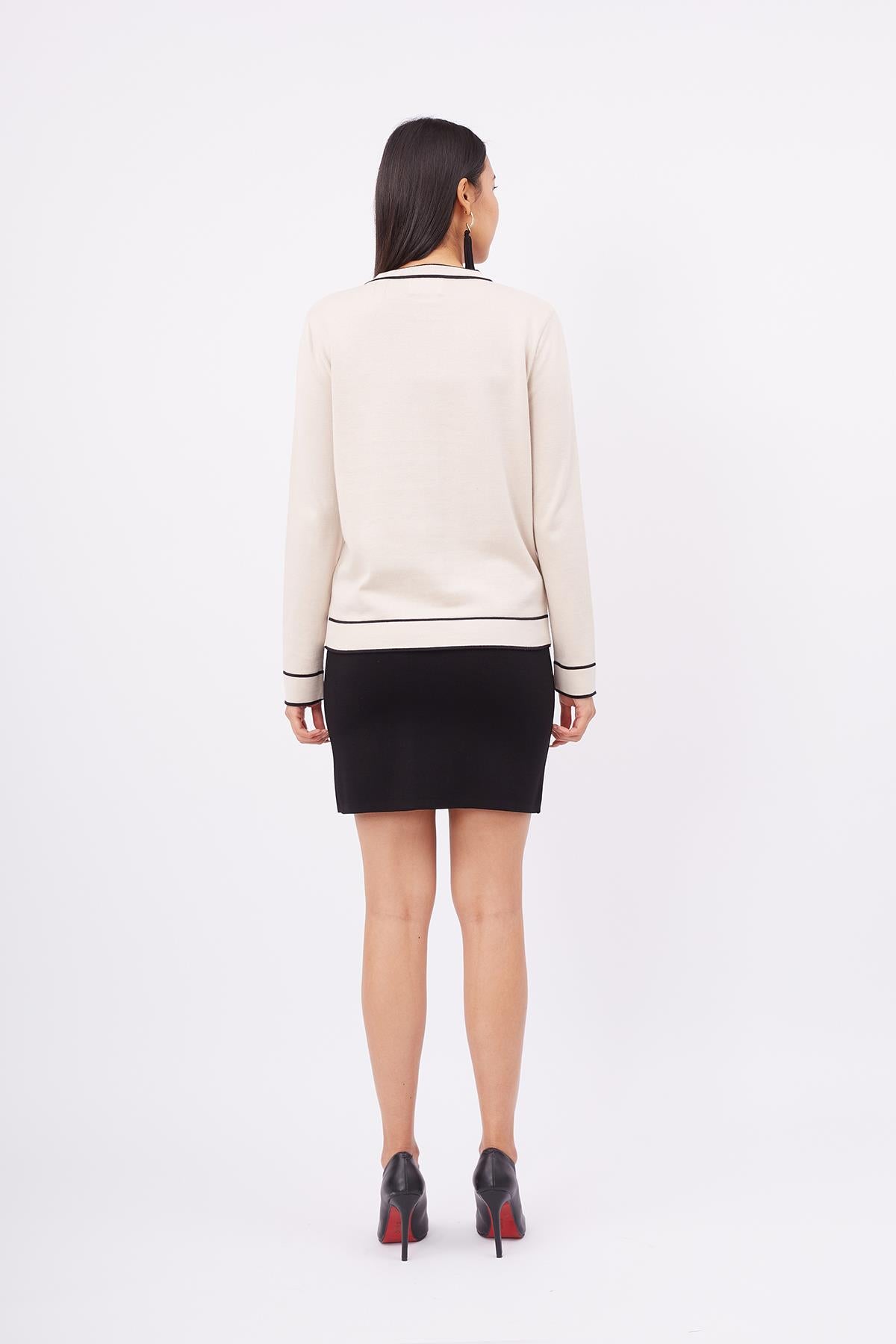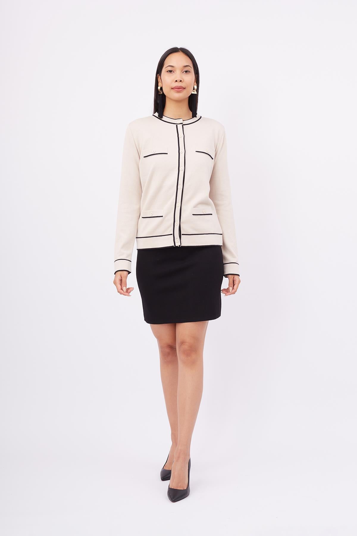 Helen Cardigan Çizgi Detaylı O Yaka Rahat Kesim İNce Kadın Triko Hırka Bej