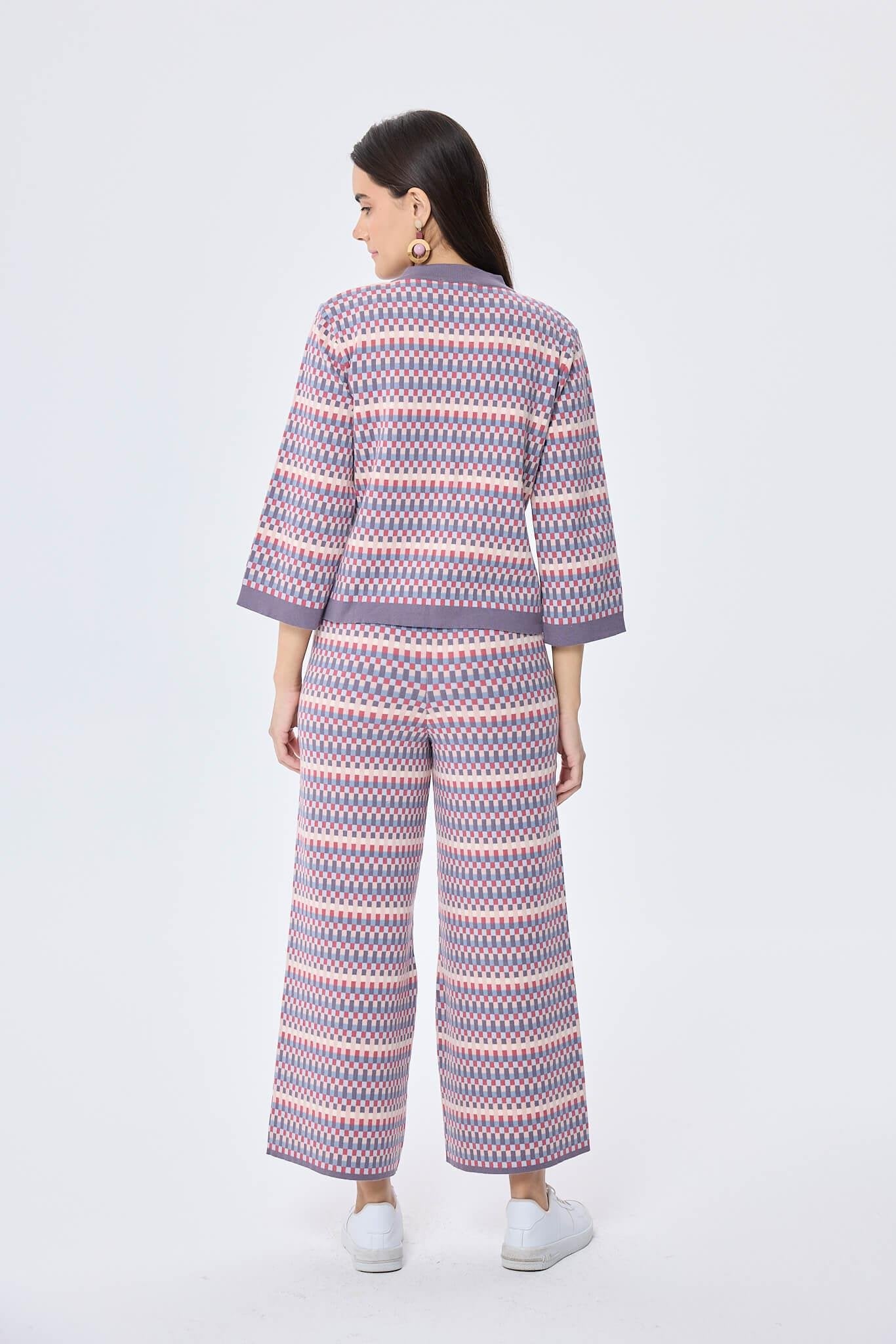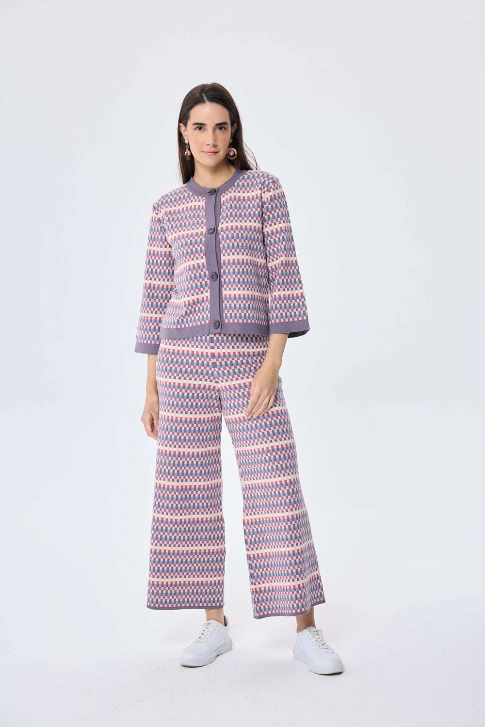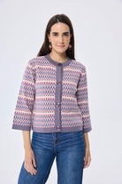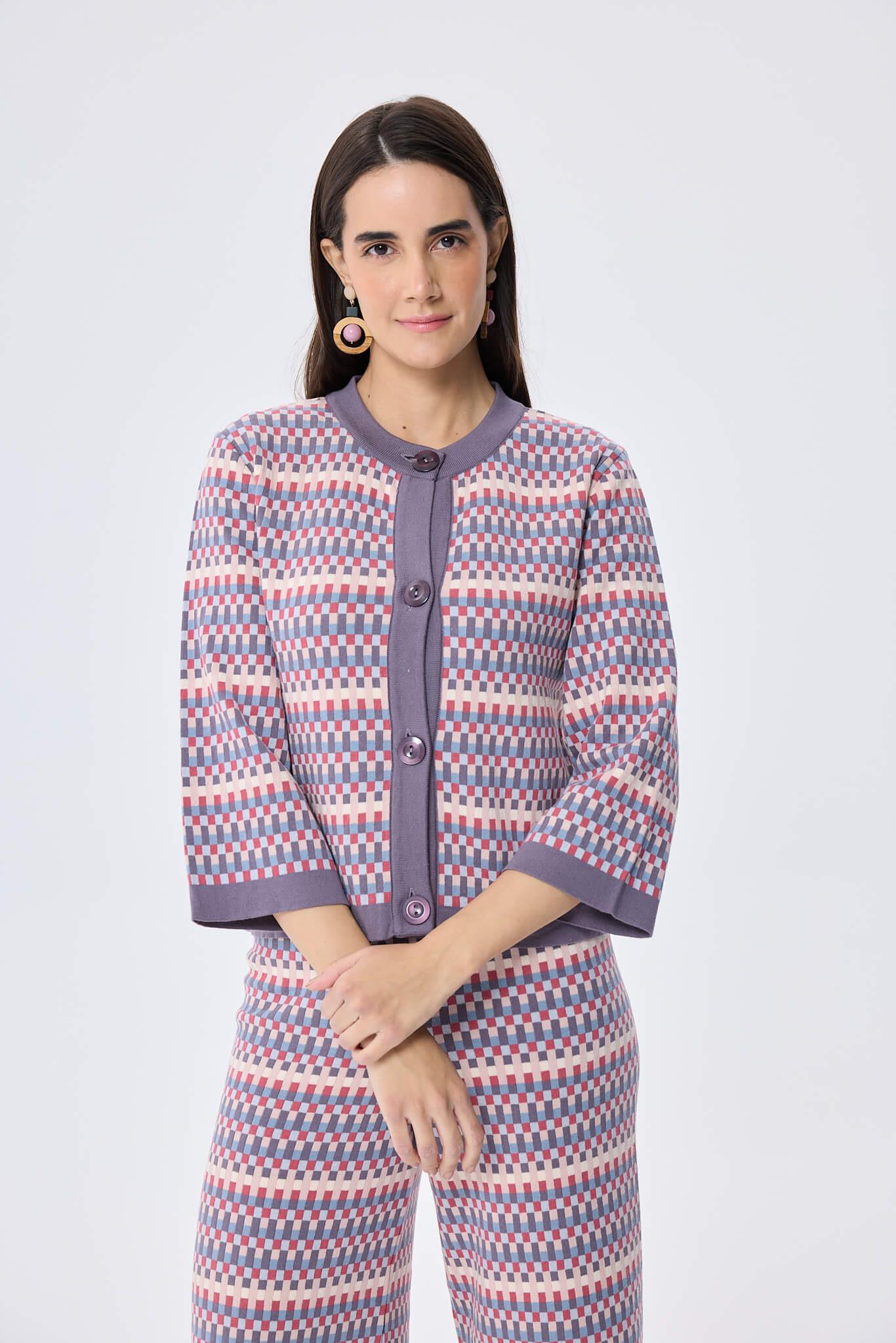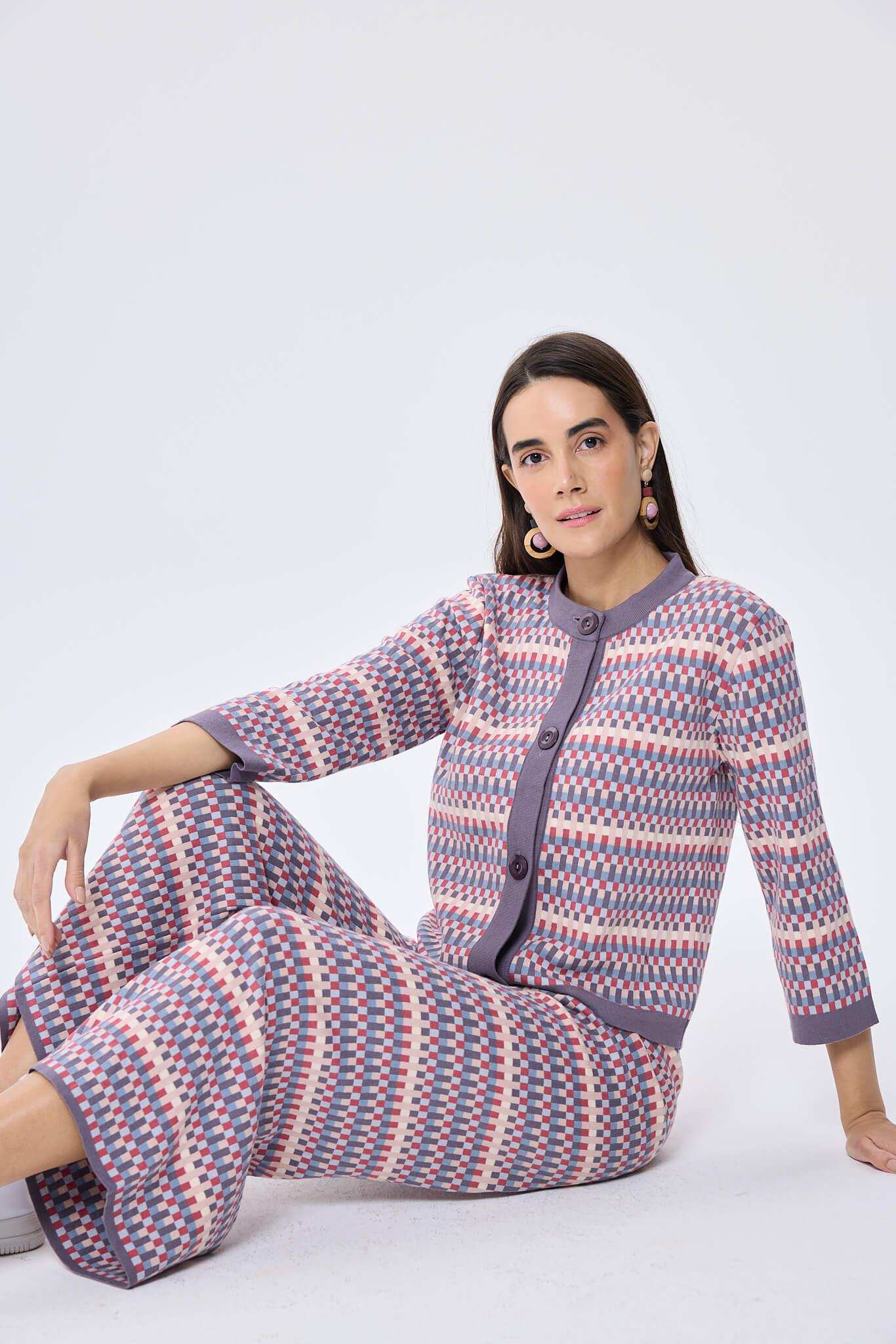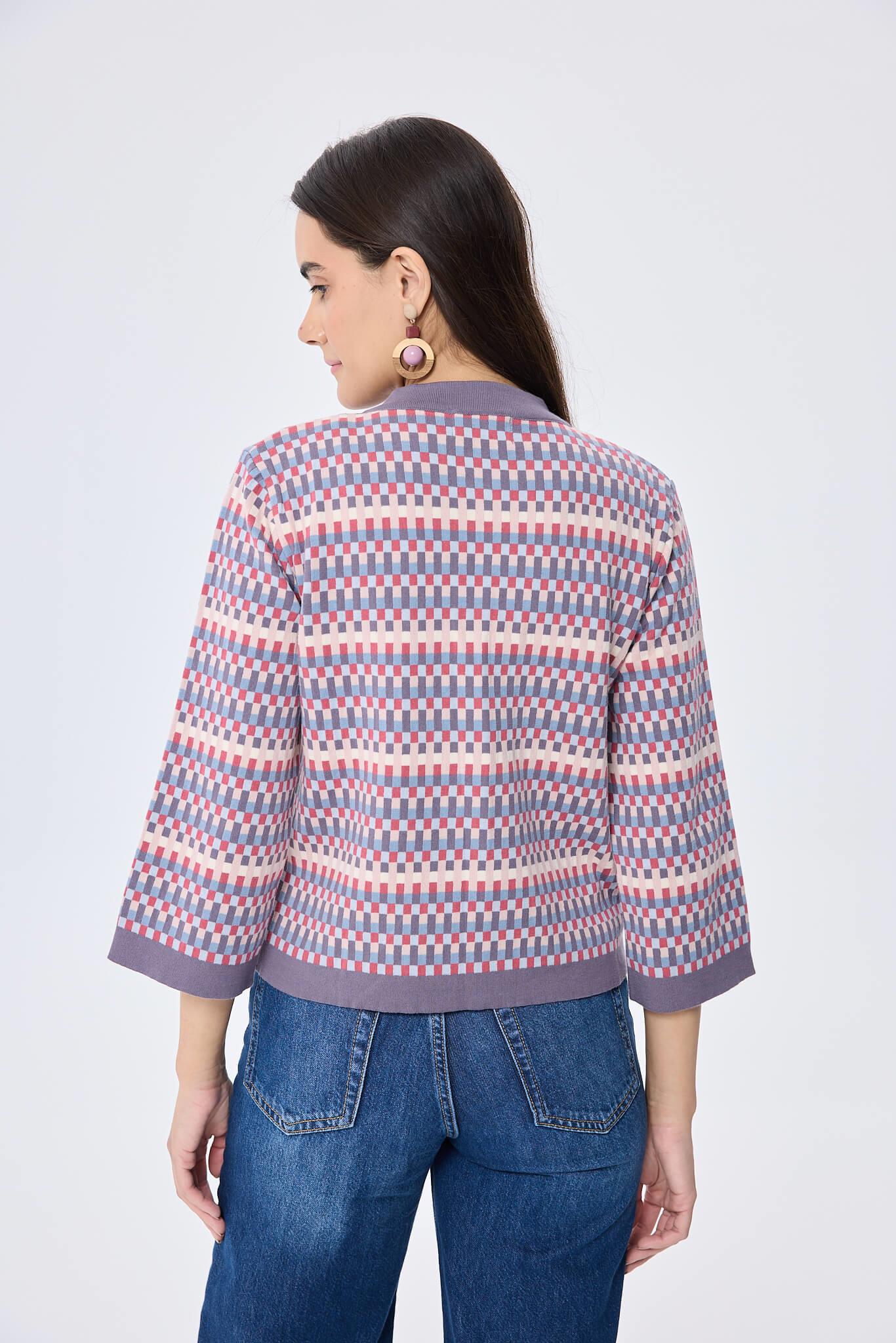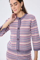 Geometrik Jakar Desenli, Rahat Kesim, O Yaka, Organik Pamuklu, Kadın Mevsimlik Triko Hırka