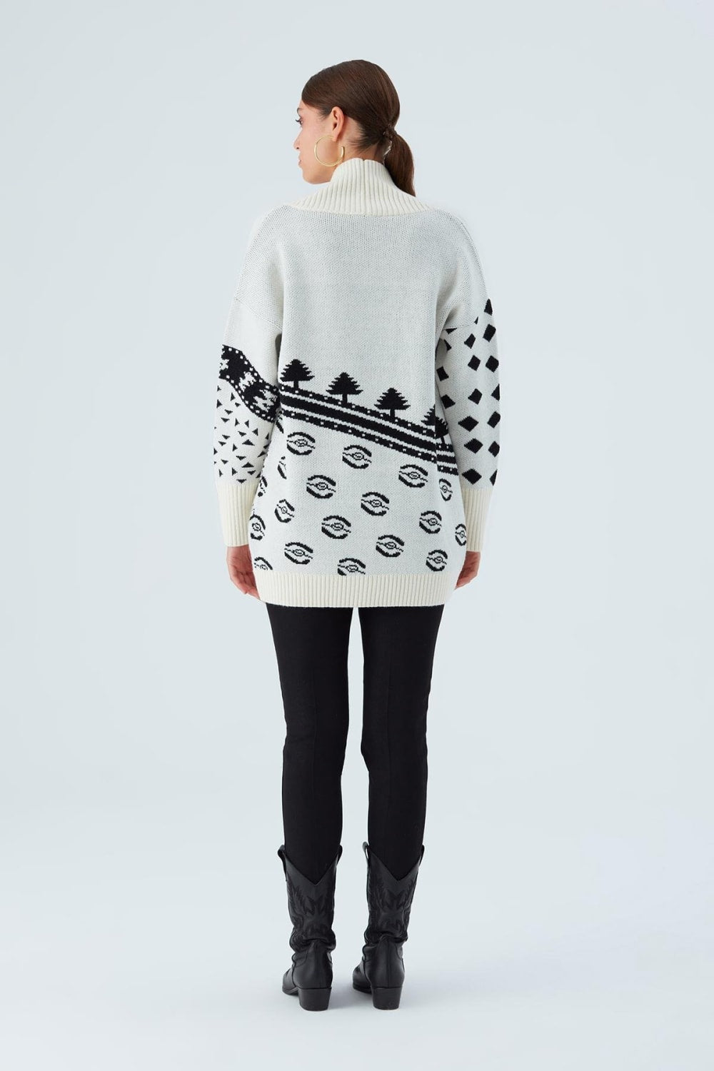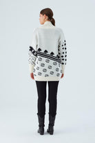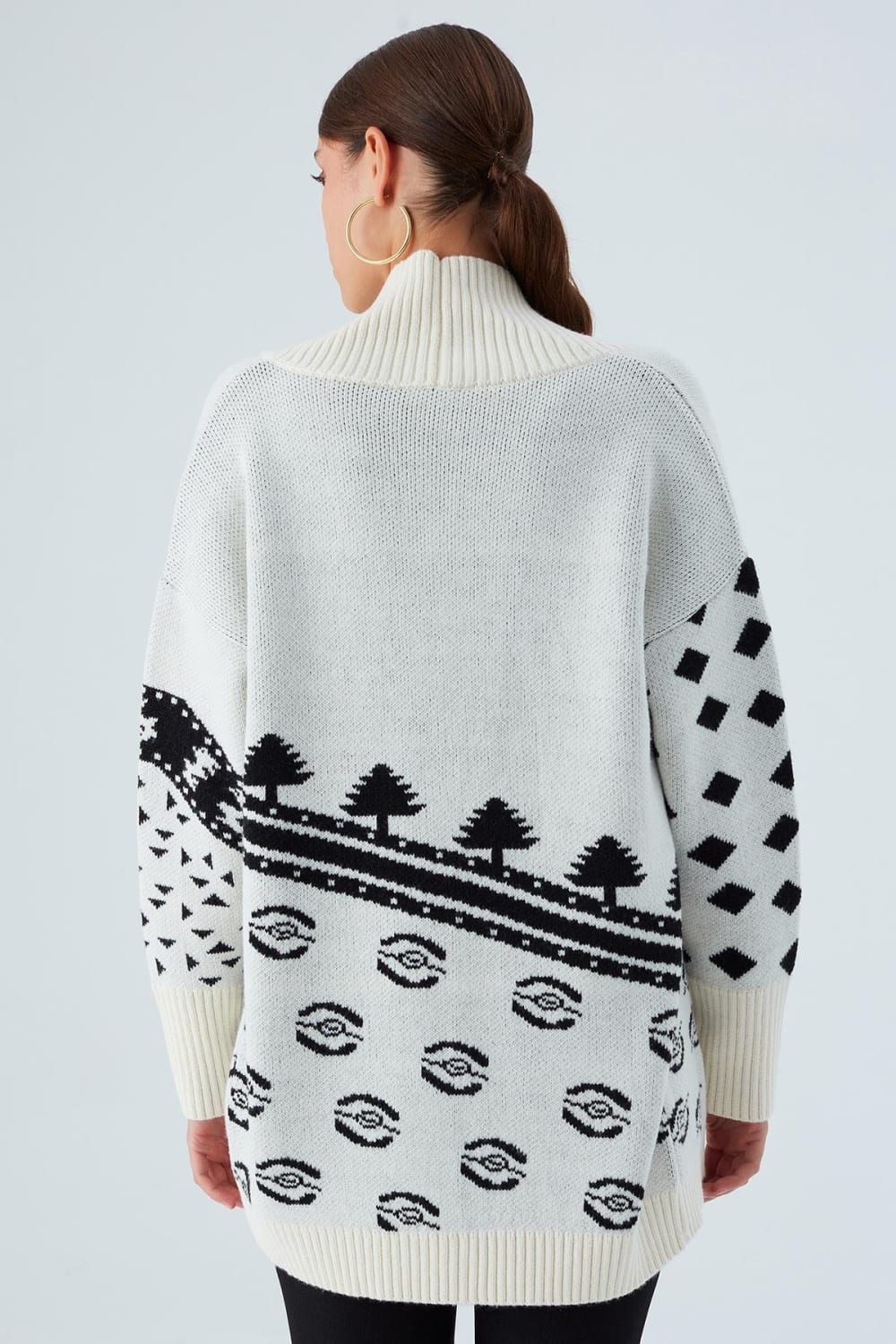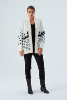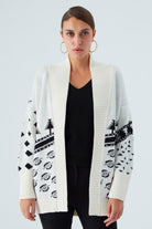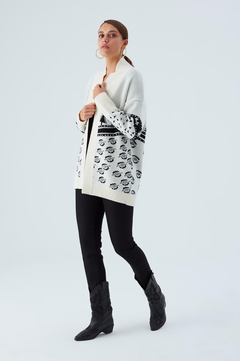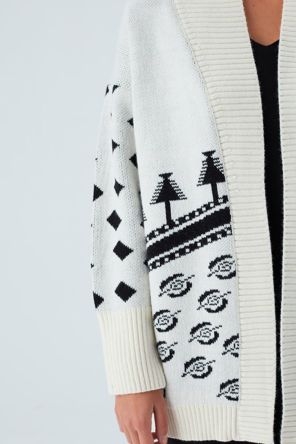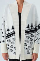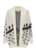 Moi Cardi̇gan Cárdigan De Punto Largo De Mujer Con Estampado De Pino Corte Informal Crudo/Negro