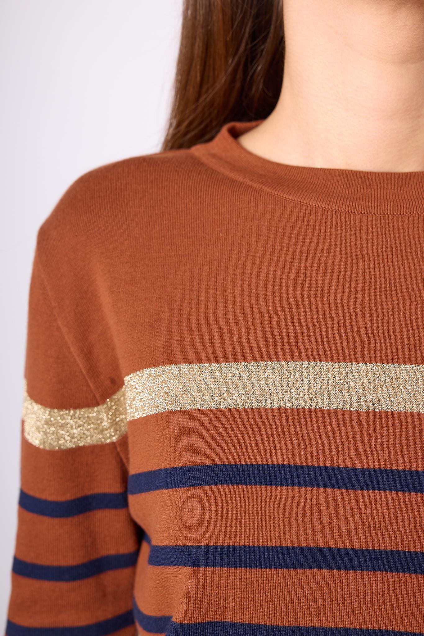 Monroe Çizgili Kadın Triko Kazak Kızıl Kahve