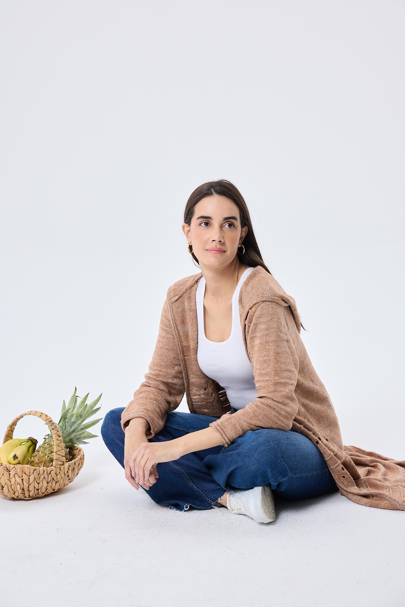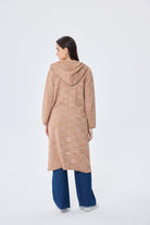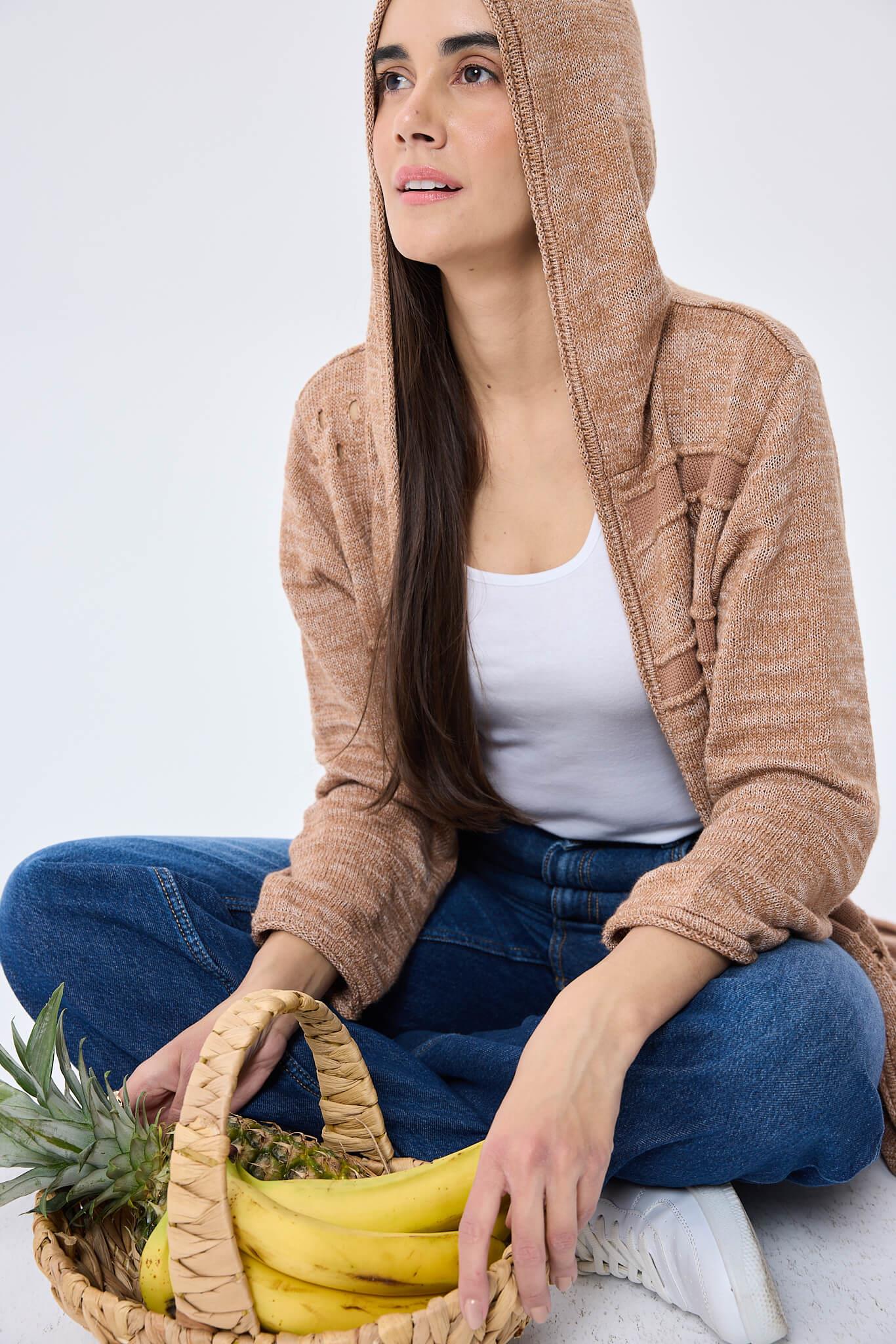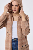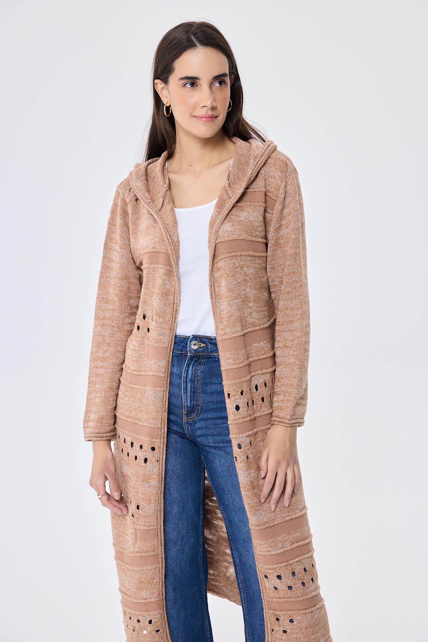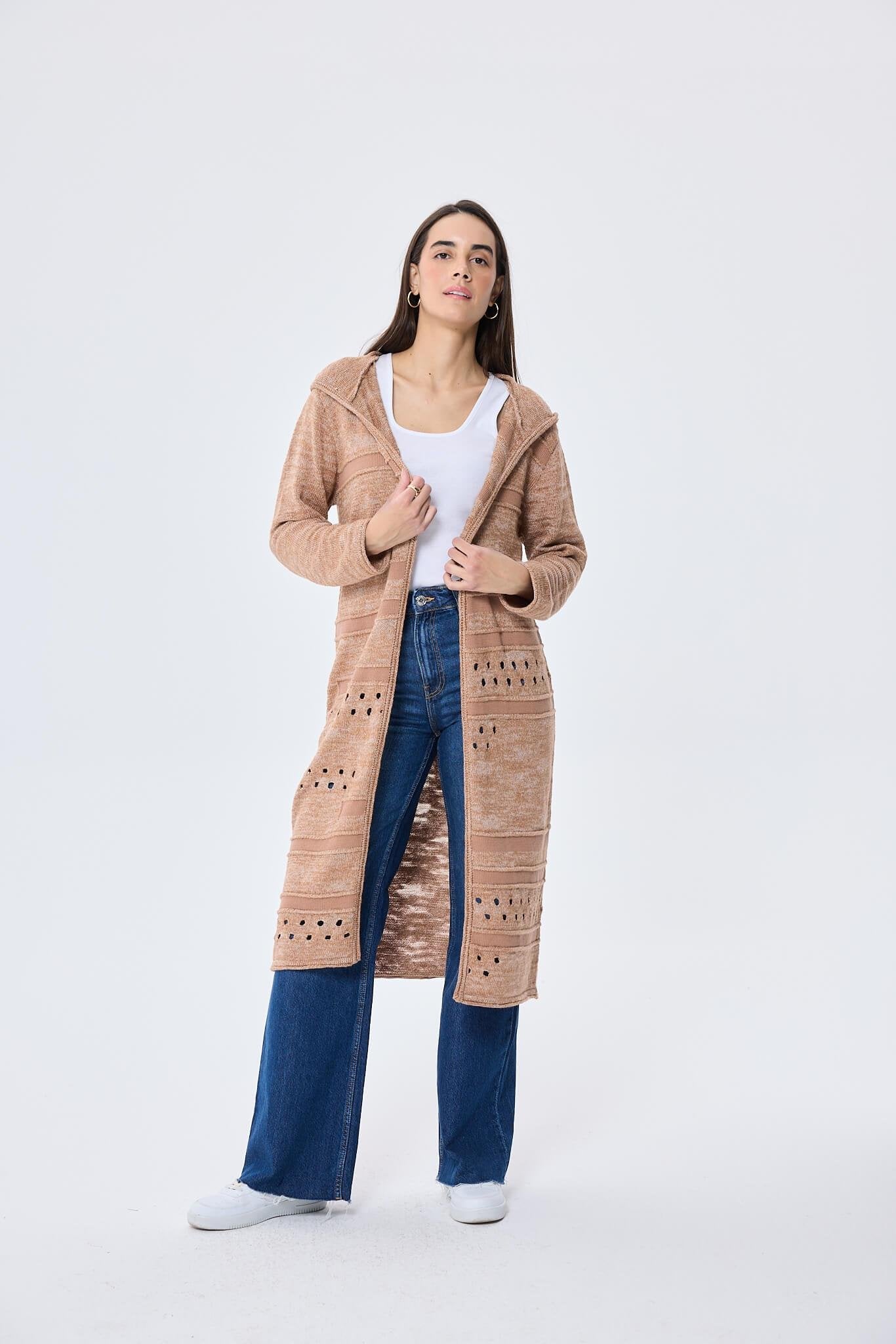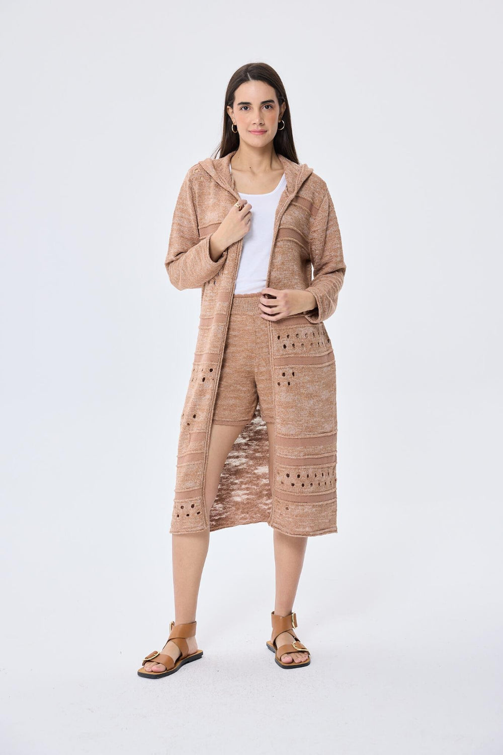 Skyler Ajurlu Kadın Kapüşonlu Yazlık Uzun Triko Hırka Sütlü Kahve Mix