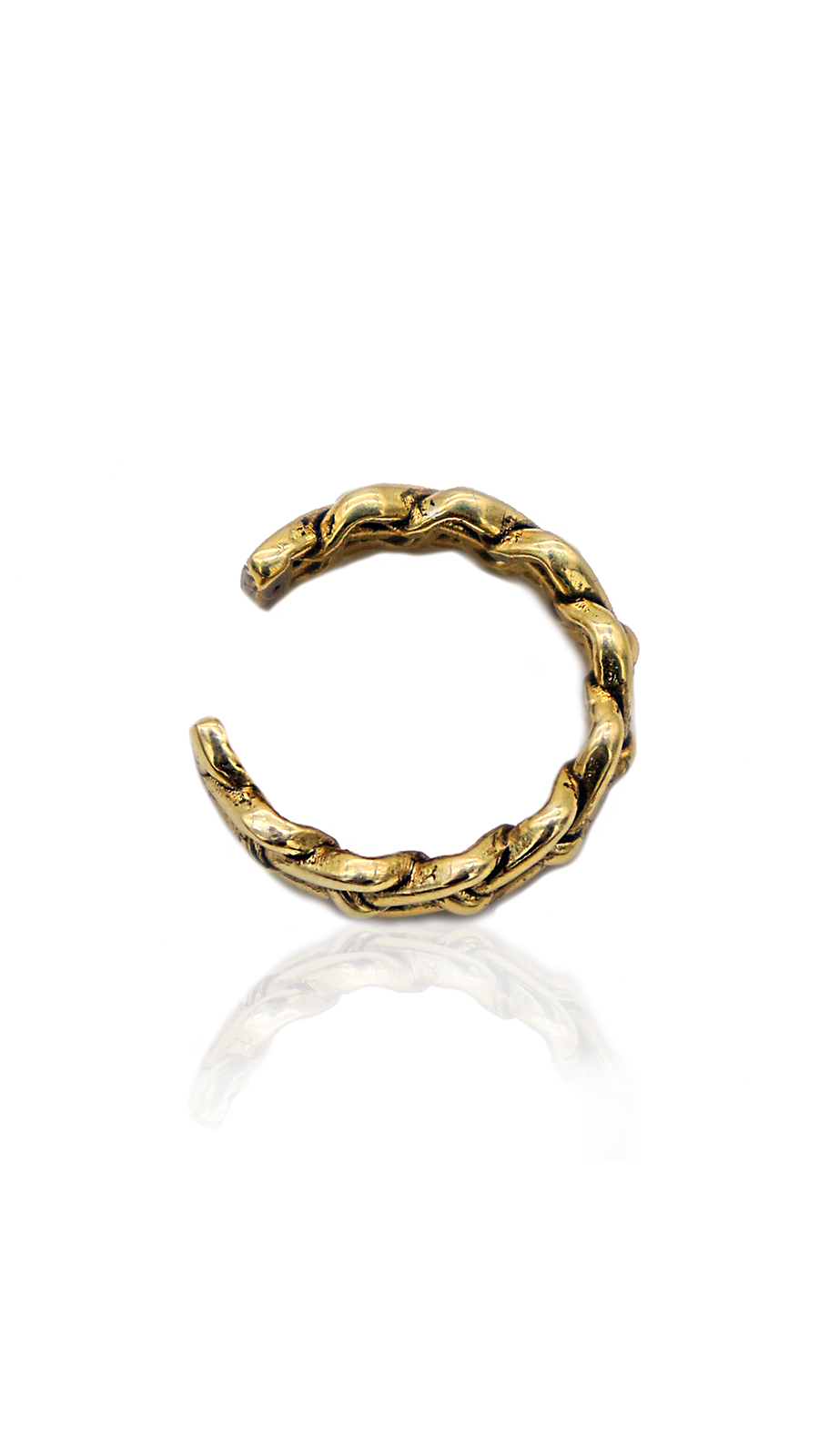 CIRCLE Kıkırdak Küpe, minimalist çizgilerin ve göz alıcı ışıltının özgün bir dansıdır. Bu zarif parça, 22 ayar altın kaplama pirinçten döküm tekniği ile üretilmiş, doğal kıvrımların ve yumuşak hatların halka formunda bir buluşmasıdır. Eğimli ve dalgalı yüzeyi ışığın her açısını yakalayarak yansıtırken, klasik halka küpe tasarımına modern bir yorum getirir. Direkt olarak kulağa sabitlenen CIRCLE Kıkırdak Küpe, sofistike bir günlük aksesuar olarak, zamansız bir şıklık sunar.
