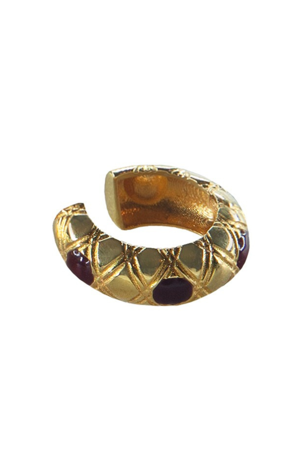 Halka formda, bordo veya pembe mine detaylı ear cuff