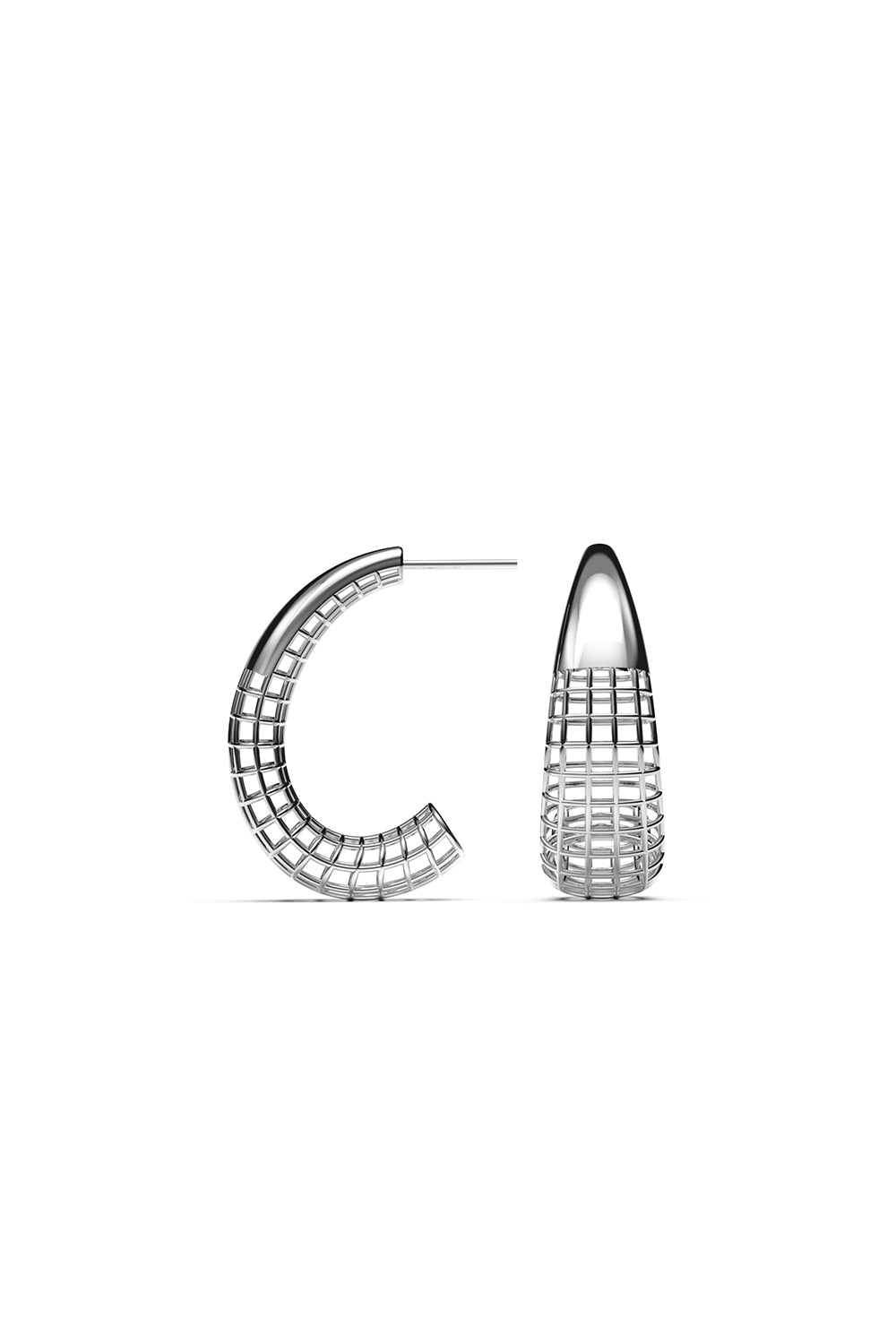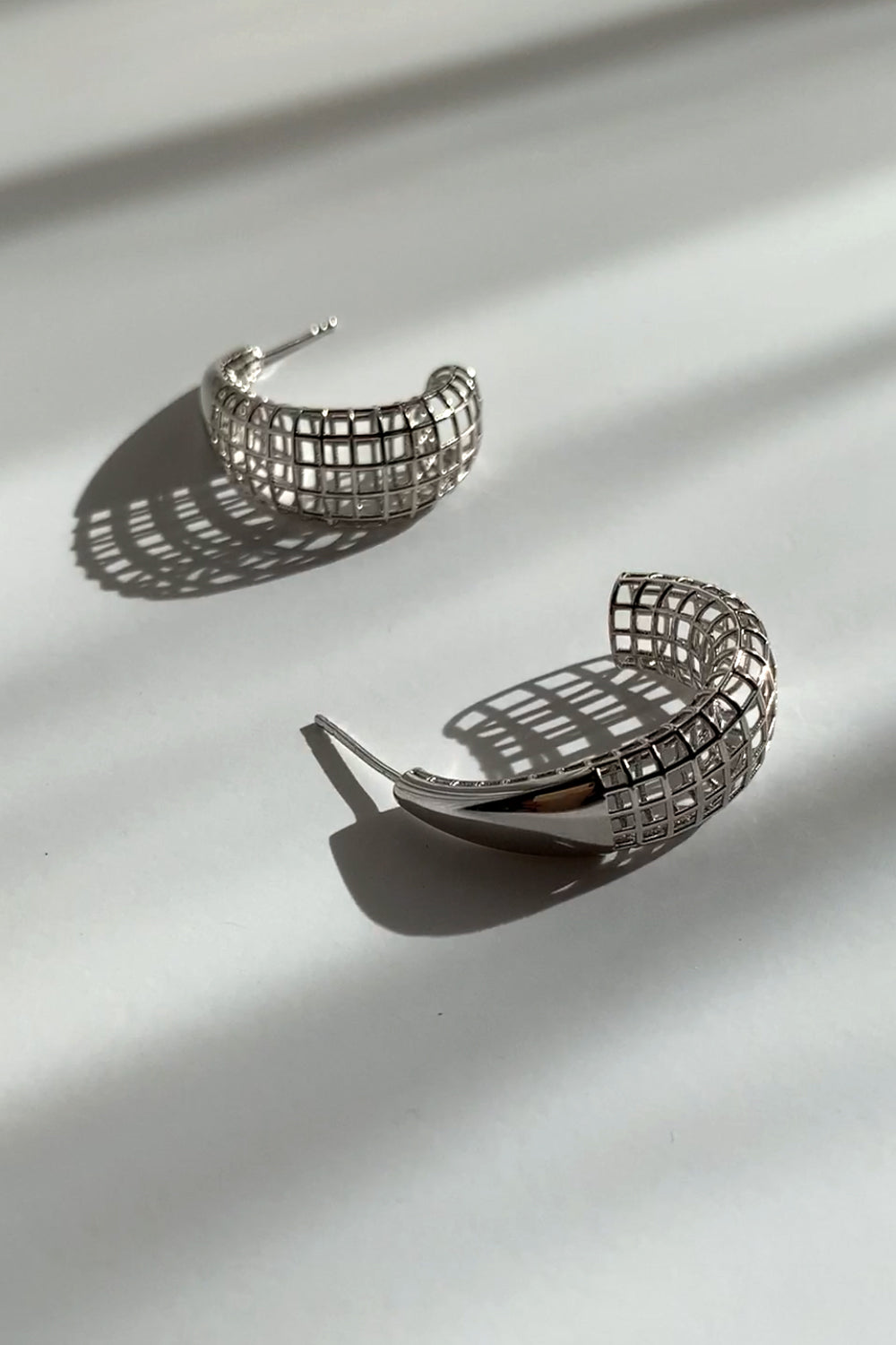¡Una interpretación moderna de los clásicos aros! Muestra una apariencia dinámica con su textura finamente elaborada y su forma asimétrica. La forma en que refleja la luz del día complementará tu estilo sofisticado.