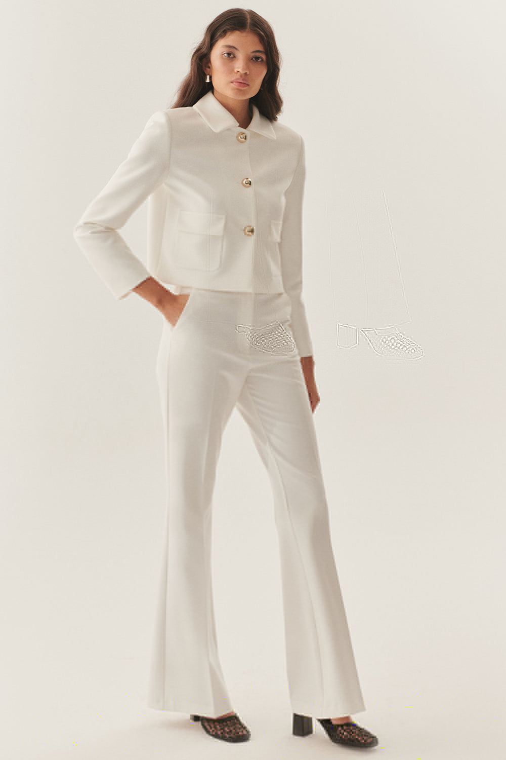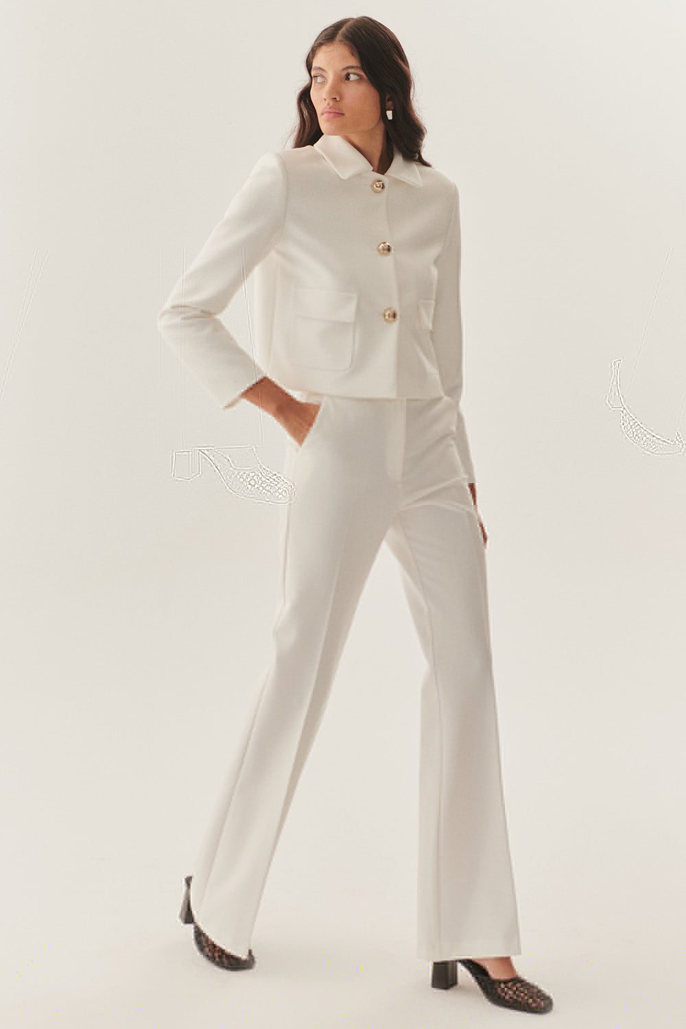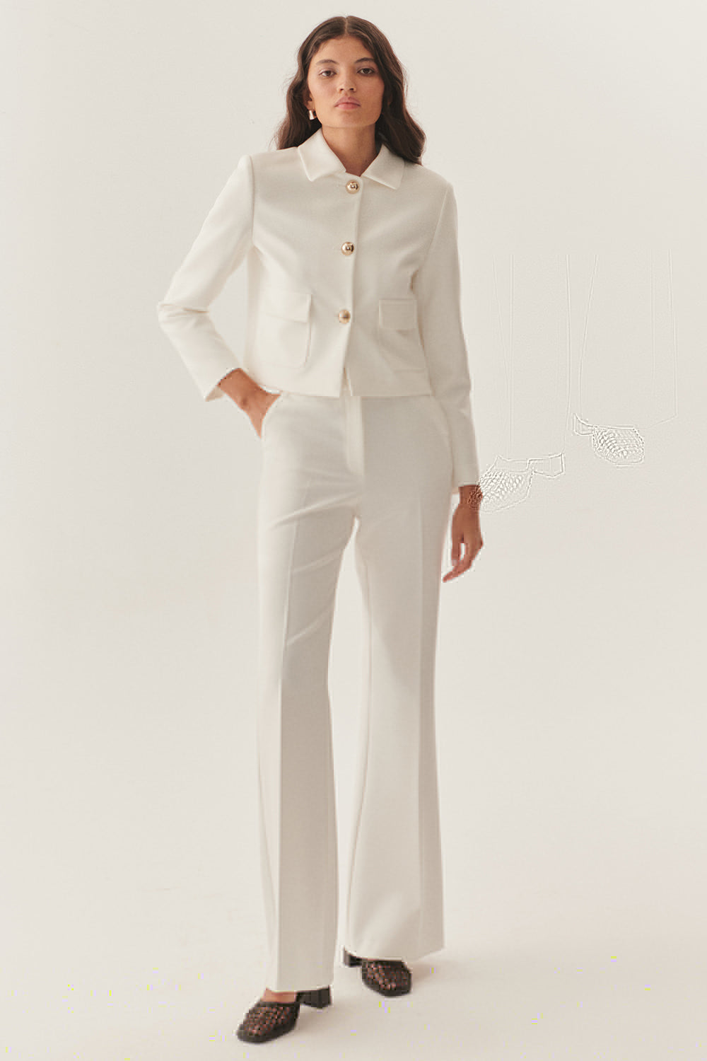 Modern çizgileriyle sofistike bir duruş sergileyen Yüksek Bel Geniş Paçalı Beyaz Pantolon, minimal ve şık bir stilin anahtar parçası. Yüksek bel tasarımı vücudu kusursuz bir şekilde sararken, geniş paçalarıyla zarif ve akışkan bir siluet oluşturuyor.Hafif ve konforlu kumaşı sayesinde gün boyu rahat bir kullanım sunan bu pantolon, hem klasik hem de modern kombinlere kolayca uyarlanabilir. İster şık bir blazer ile ofis şıklığını tamamlayın, ister zarif bir bluz ve topuklu ayakkabılarla özel günlerde göz kamaştırın.