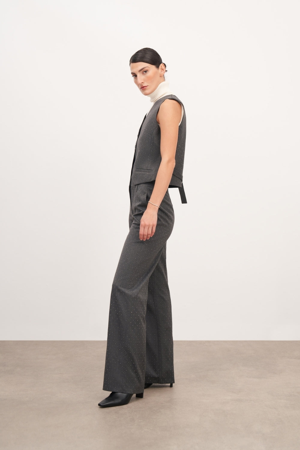 WINGCOTT Füme Pileli Geniş Kesim Pantolon