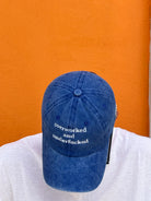 "overworked and underfucked" embroidered cap. One size. Size can be adjusted with the clasp at the back. Made of cotton fabric.
