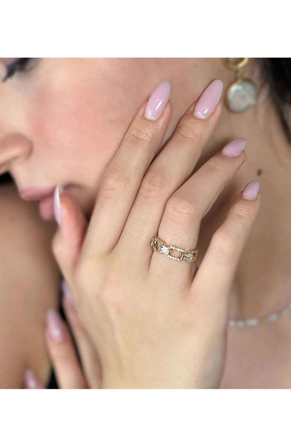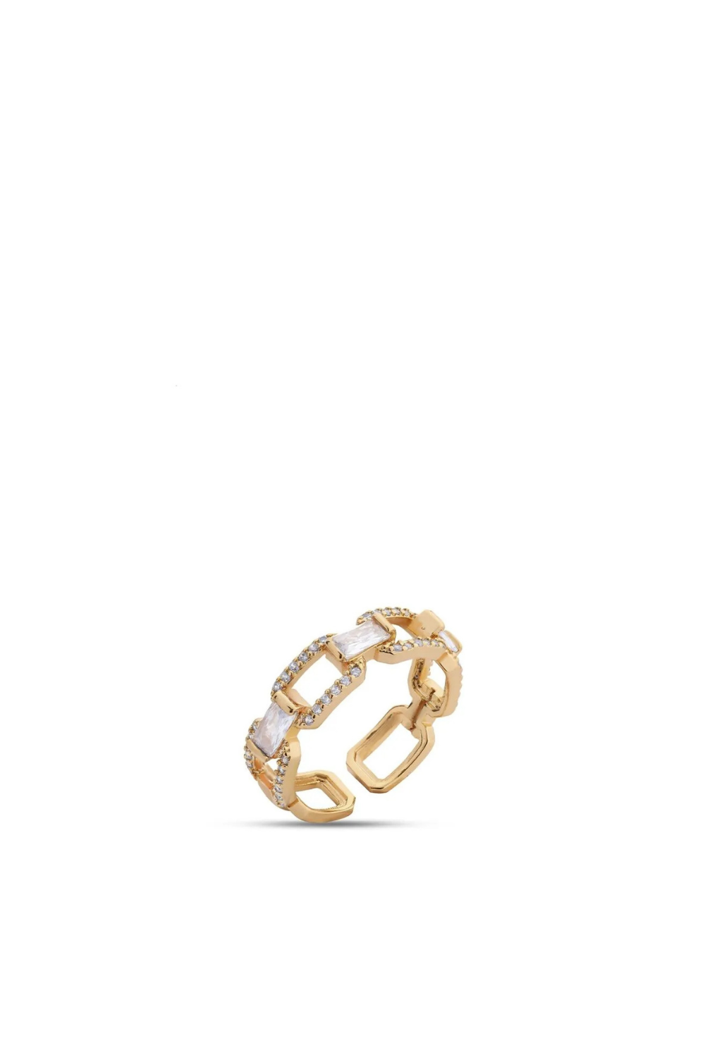 Taşlı Zincir Altın Kaplama Kadın Yüzük