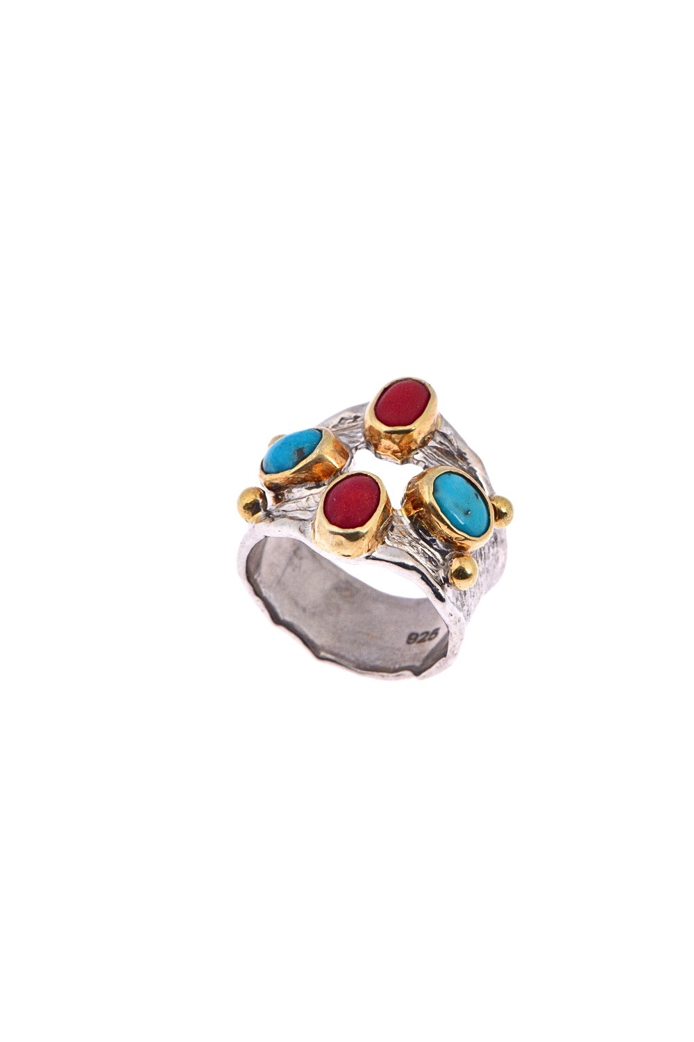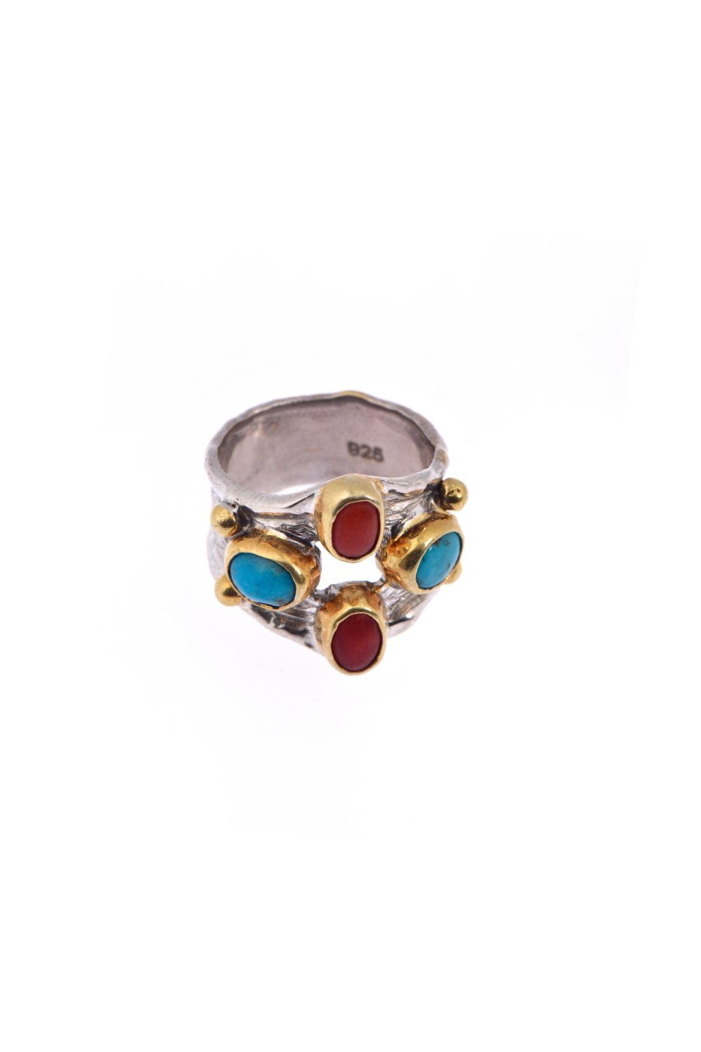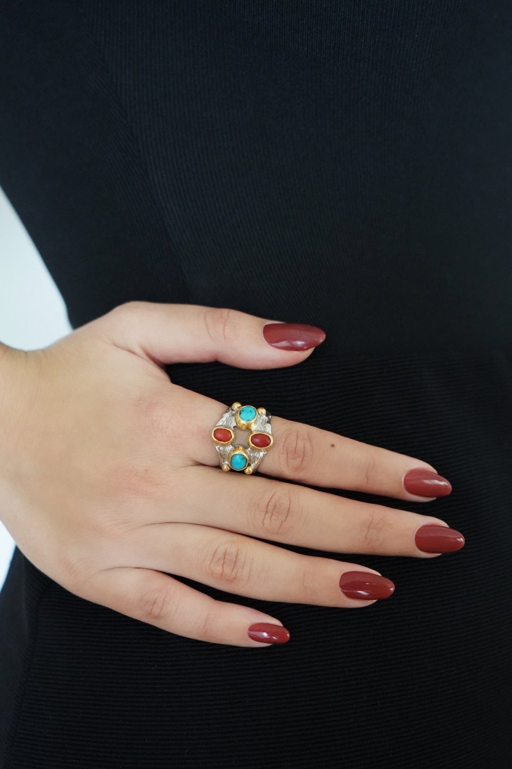 Gümüş Yüzük | Mercan & Turkuaz Taşı