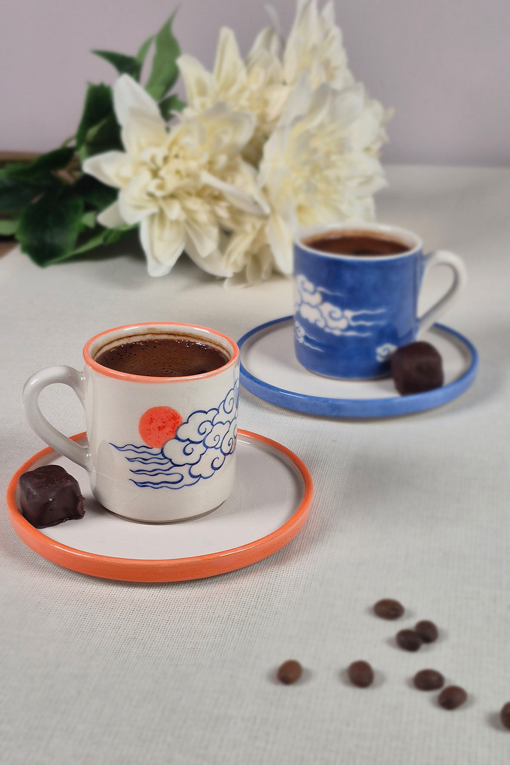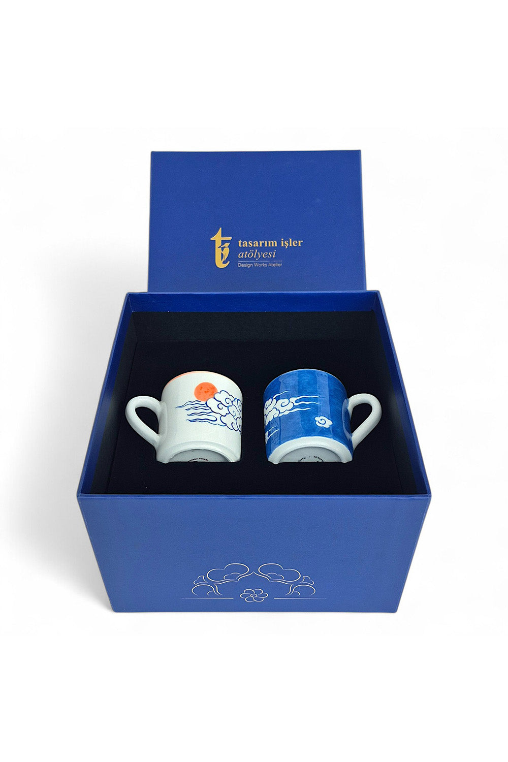 El Yapımı Gece Gündüz İkili Fincan Seti - Özel Hediye Kutulu