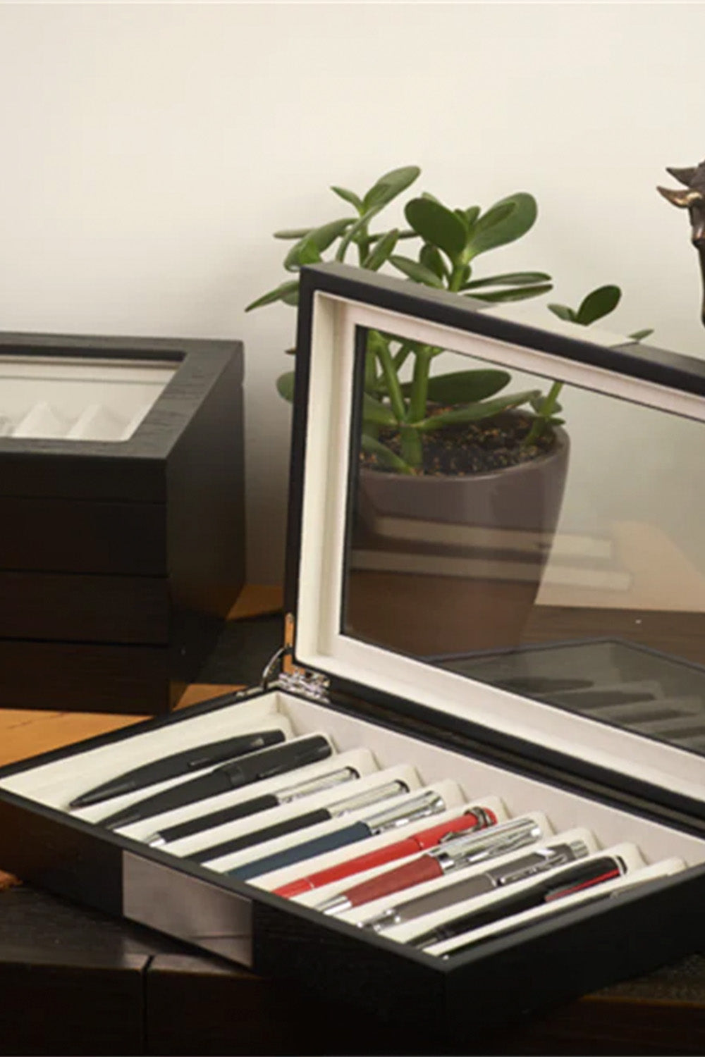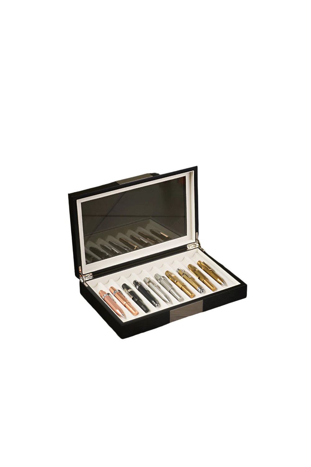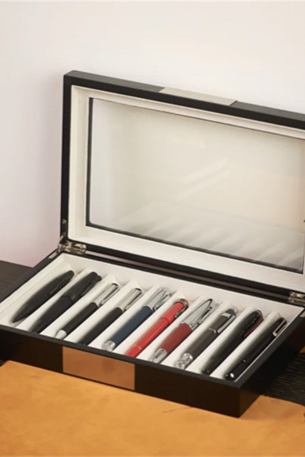 AHŞAP CAM KAPAKLI -10 (Venge) tasarımının ana fikri, kalemlerinize verdiğiniz değere eşlik edebilecek bir saklama alanı oluşturmaktır.