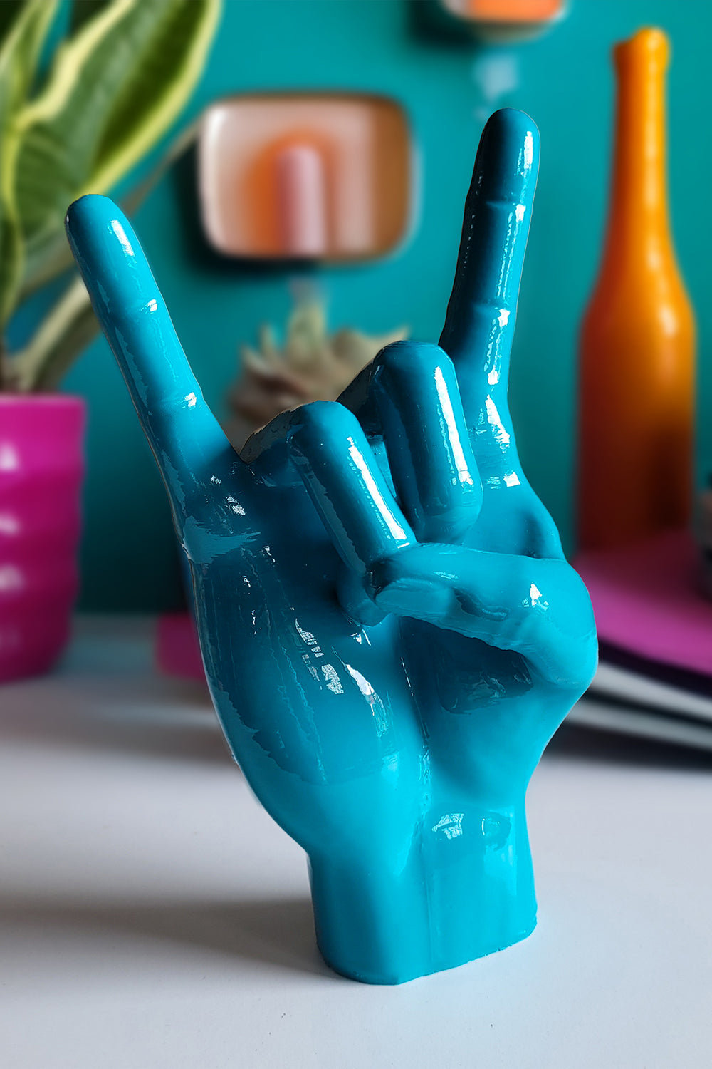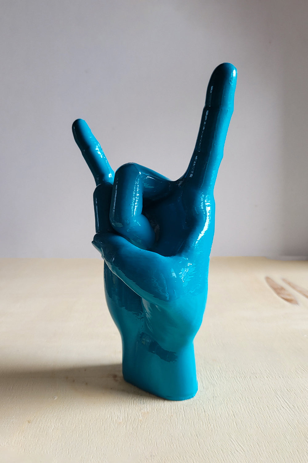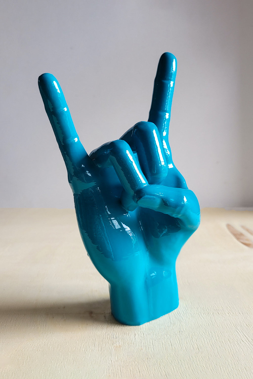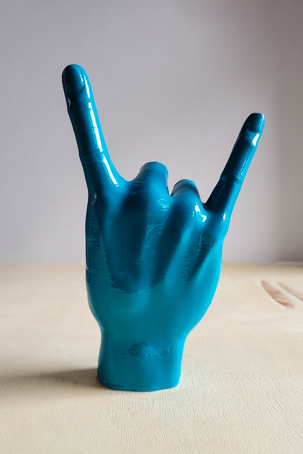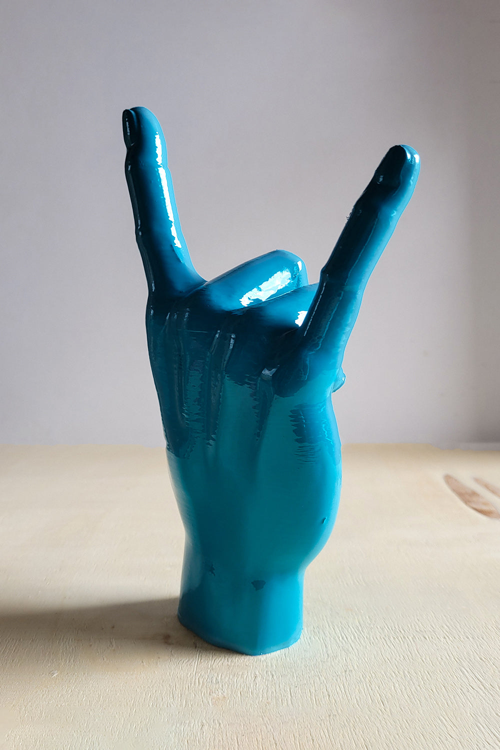 Enerjiyi yükseltmeye hazır mısınız?"Rock On" el heykeli, güçlü duruşuyla her ortamda dikkat çeker. PLA biyopolimer malzemeden 3D baskı tekniğiyle üretilmiş, ardından özenli el işçiliğiyle son hali verilmiştir.