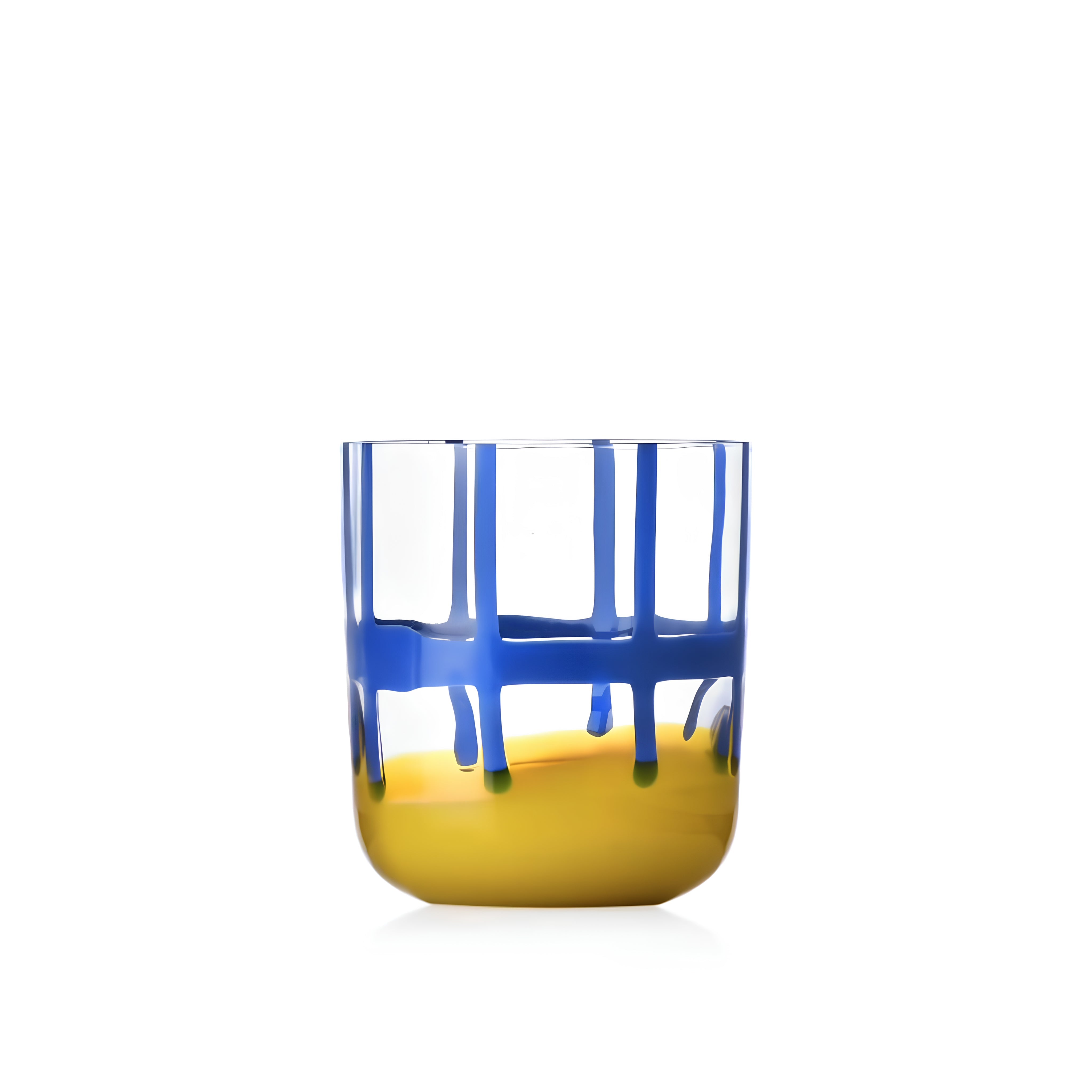 Gesti koleksiyonundan renkli cam içerisine macun boya uygulanmış bardak.