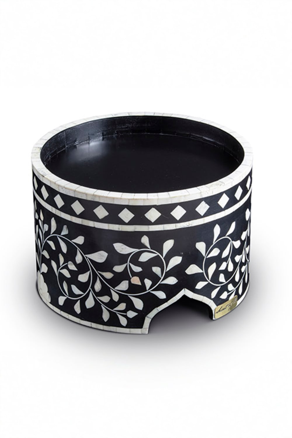 Black Floral-Patterned Mother-Of-Pearl Inlay Cake Stand