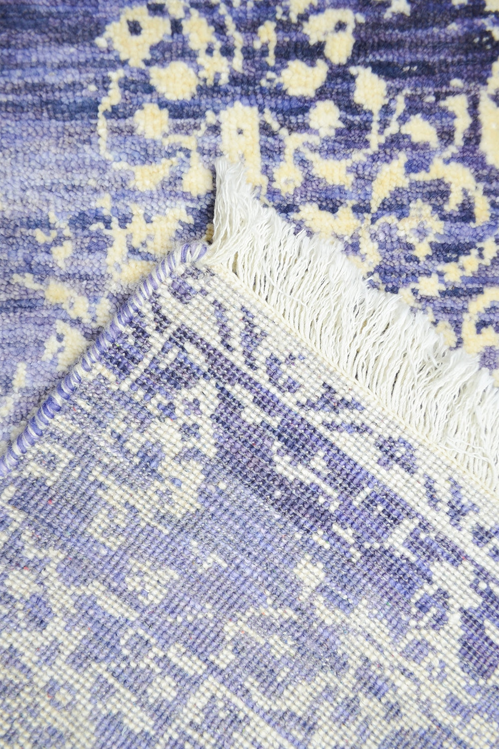 Colour Me Halısı, 9×9 düğüm sıklığında kaliteli el dokuma tekniğiyle hazırlanmıştır. Bu 87x151 cm (1.32 m²) ölçüsündeki halı, pamuk saçak üzerine bambu ipliği kullanılarak dokunmuş olup mavi rengi ile mekânlara doğal ve ferah bir görünüm kazandırır.