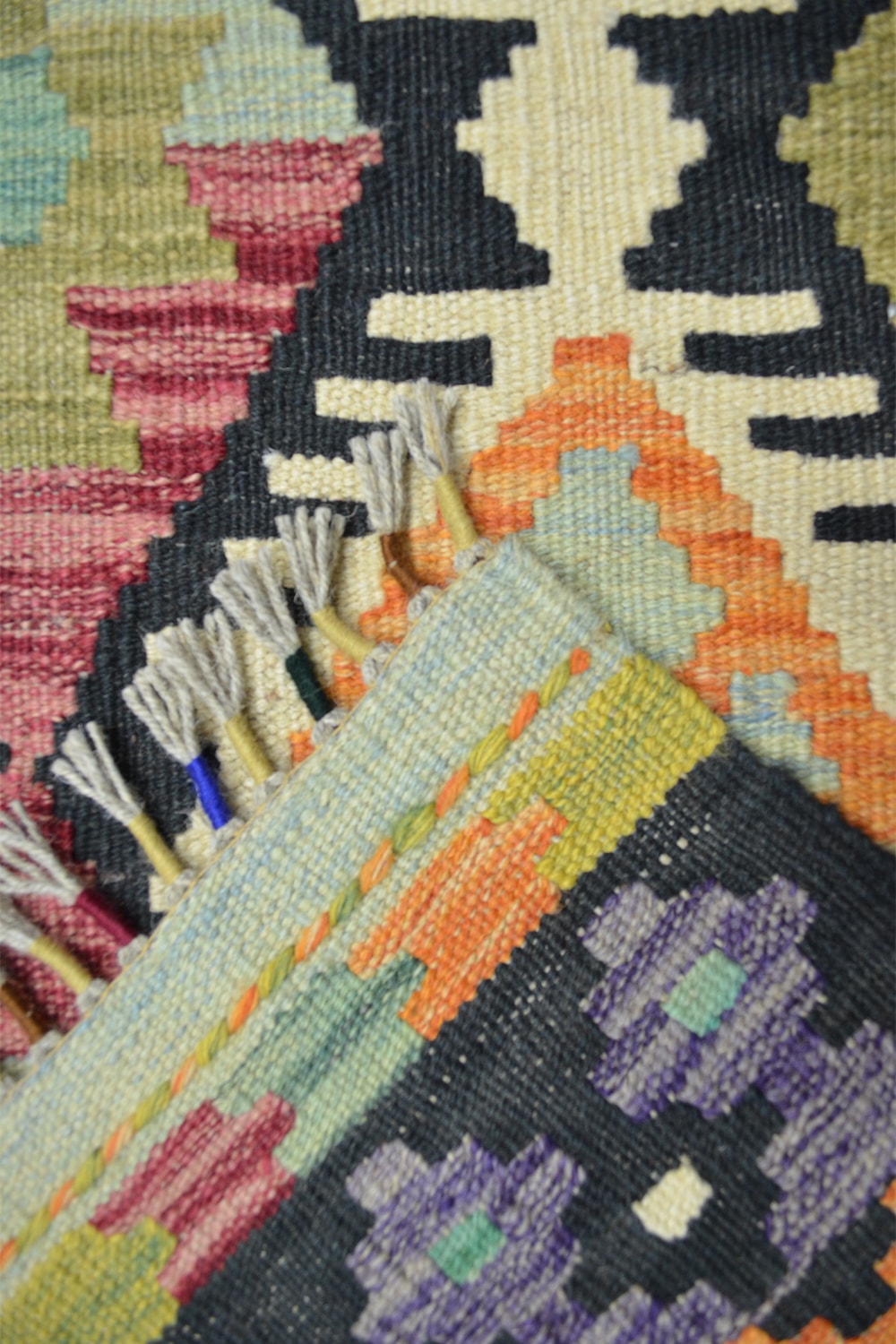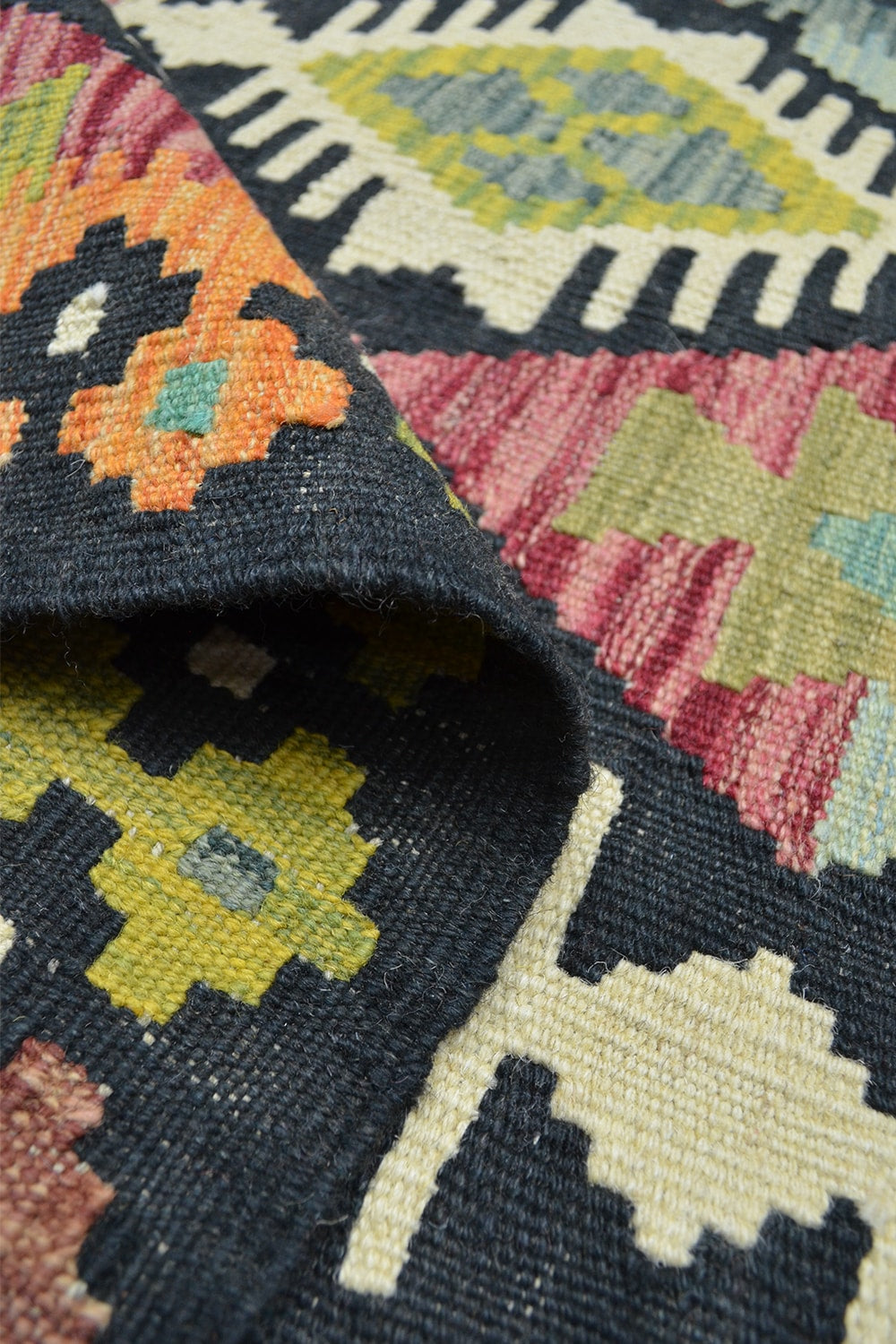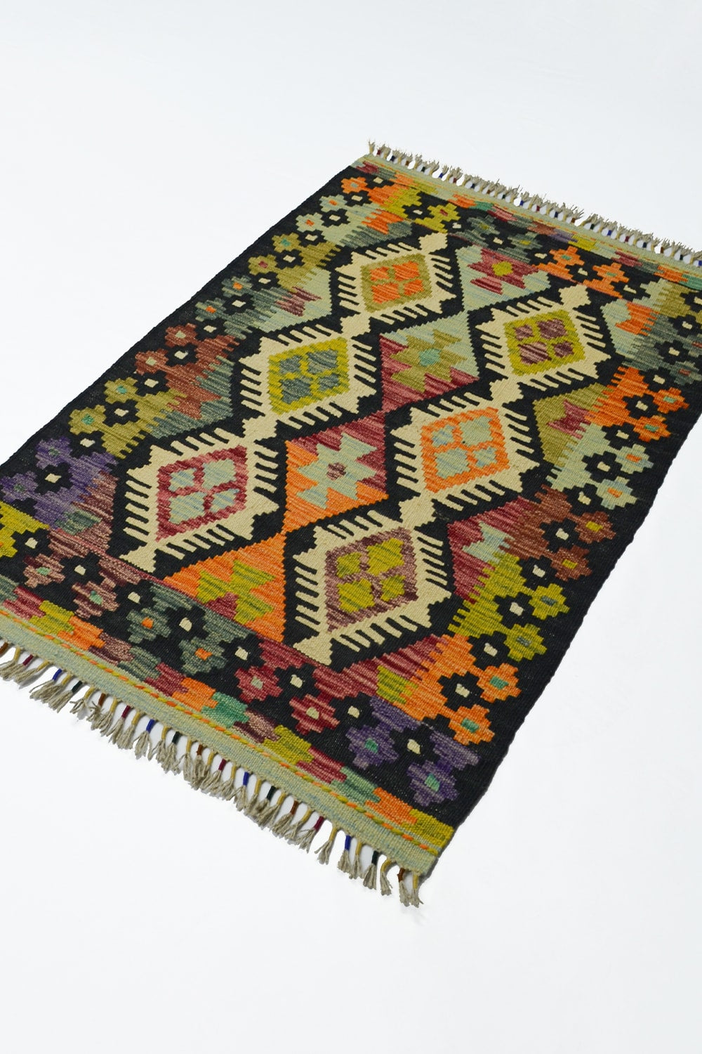 Afgan kilimleri, düz dokuma teknikleri ve geometrik desenleriyle bilinir. Renklerin cesur kullanımı, hem otantik hem de modern dekorasyonlarda dikkat çekici bir vurgu yaratır. El işçiliğinin doğal izlerini taşıyan bu kilim, her ilmeğinde ustalarının emeğini yansıtır.