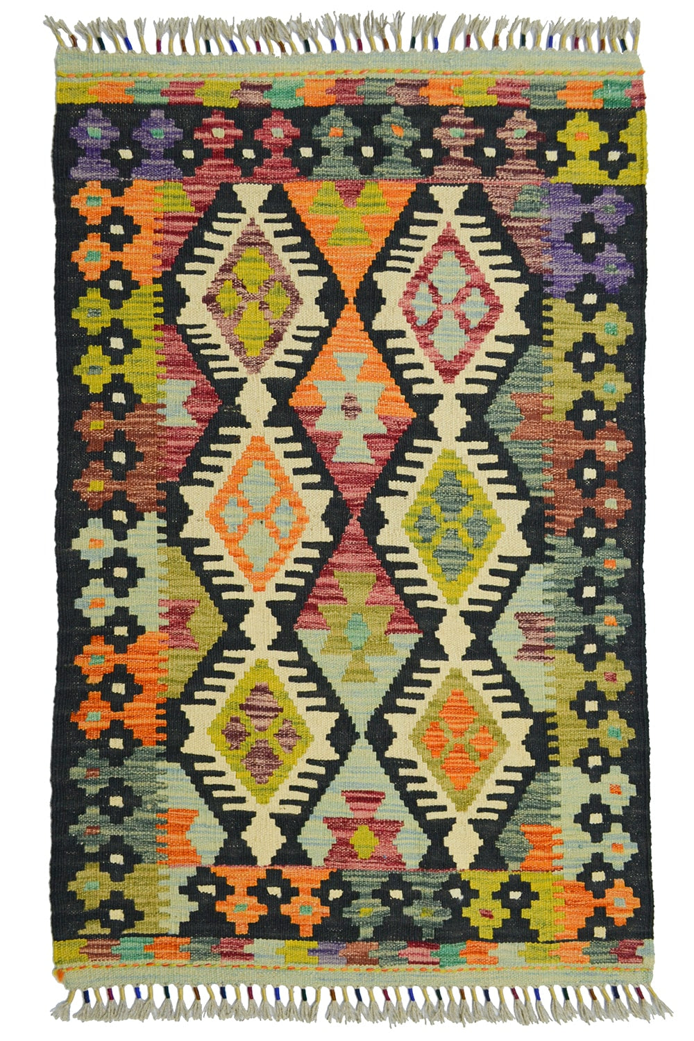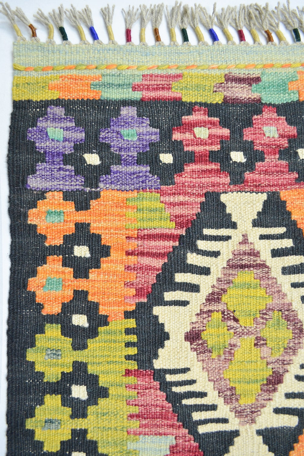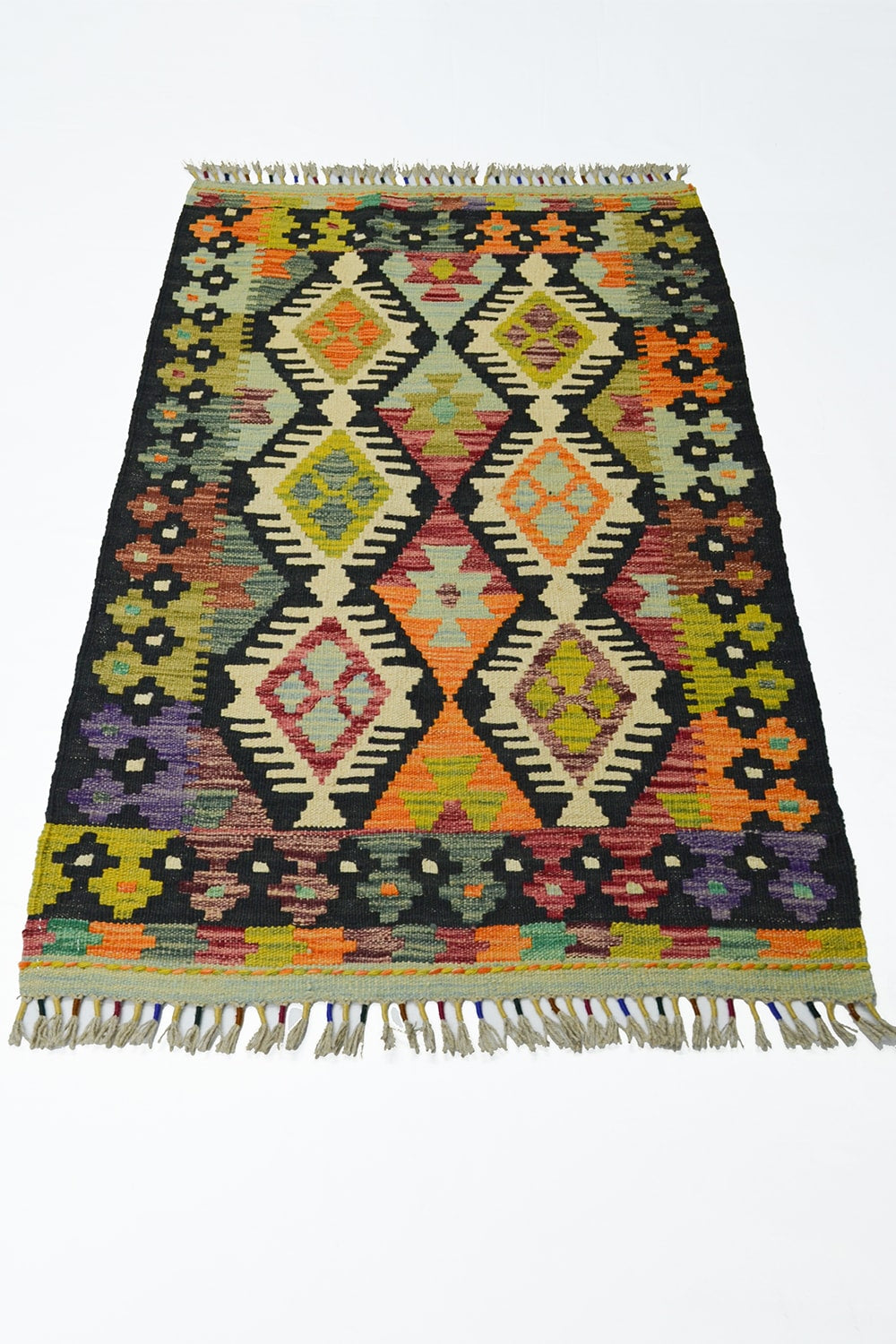 Afgan kilimleri, düz dokuma teknikleri ve geometrik desenleriyle bilinir. Renklerin cesur kullanımı, hem otantik hem de modern dekorasyonlarda dikkat çekici bir vurgu yaratır. El işçiliğinin doğal izlerini taşıyan bu kilim, her ilmeğinde ustalarının emeğini yansıtır.